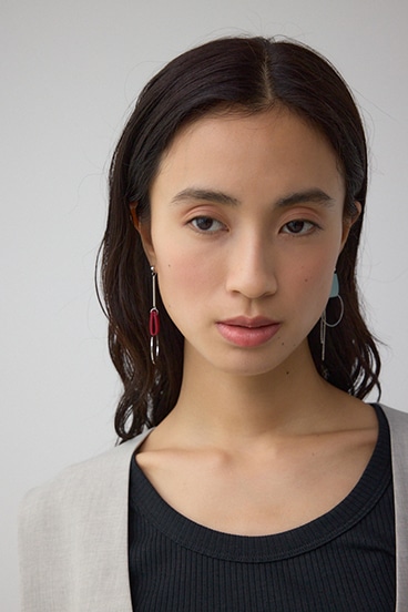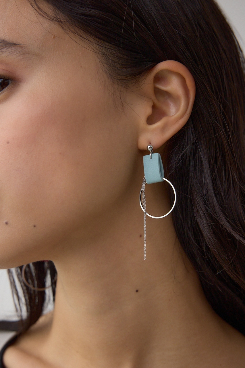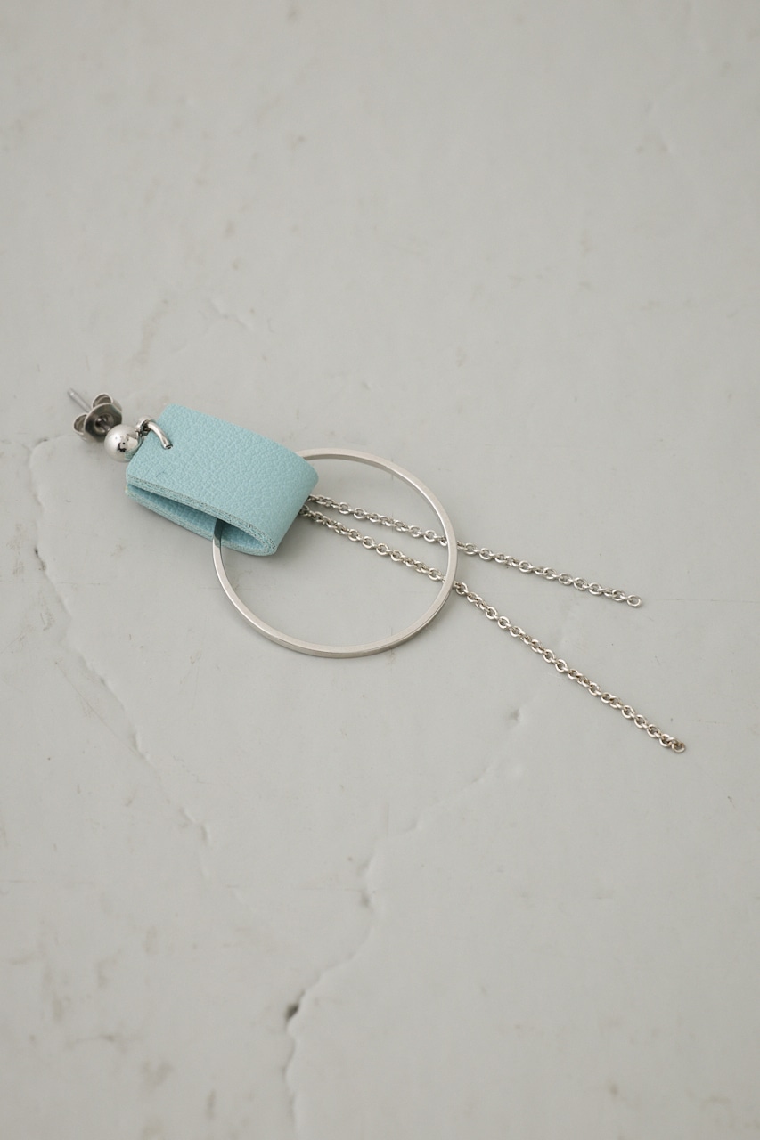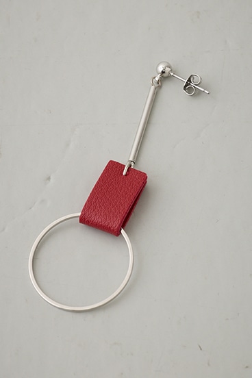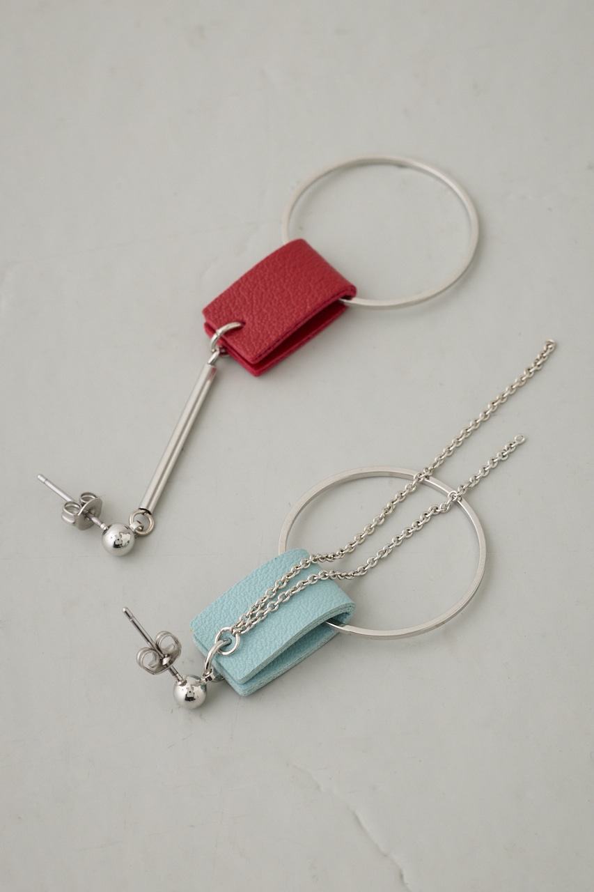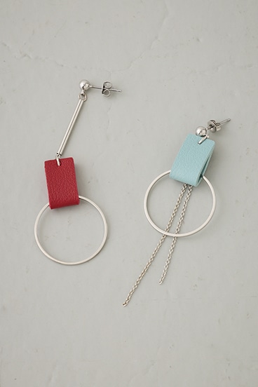 コントラストの効いたカラー使いのレザーにメタルパーツの組み合わせがポイントのピアス。