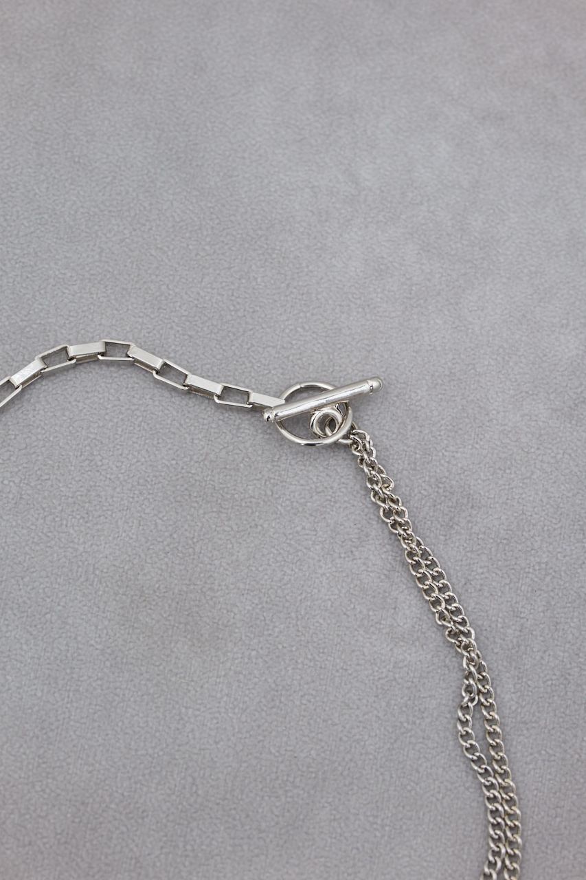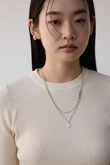 マンテルをサイドに持ってくると異なる印象を楽しむことができるため、1つのネックレスで多様なスタイルを演出できます。