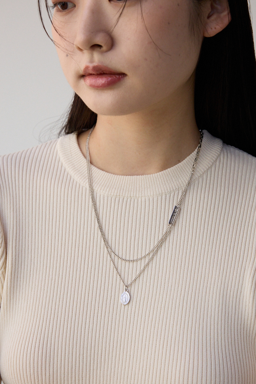 マンテル部分を後ろに配置して2連デザインのネックレスとして使うことができます。