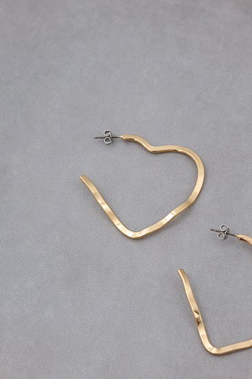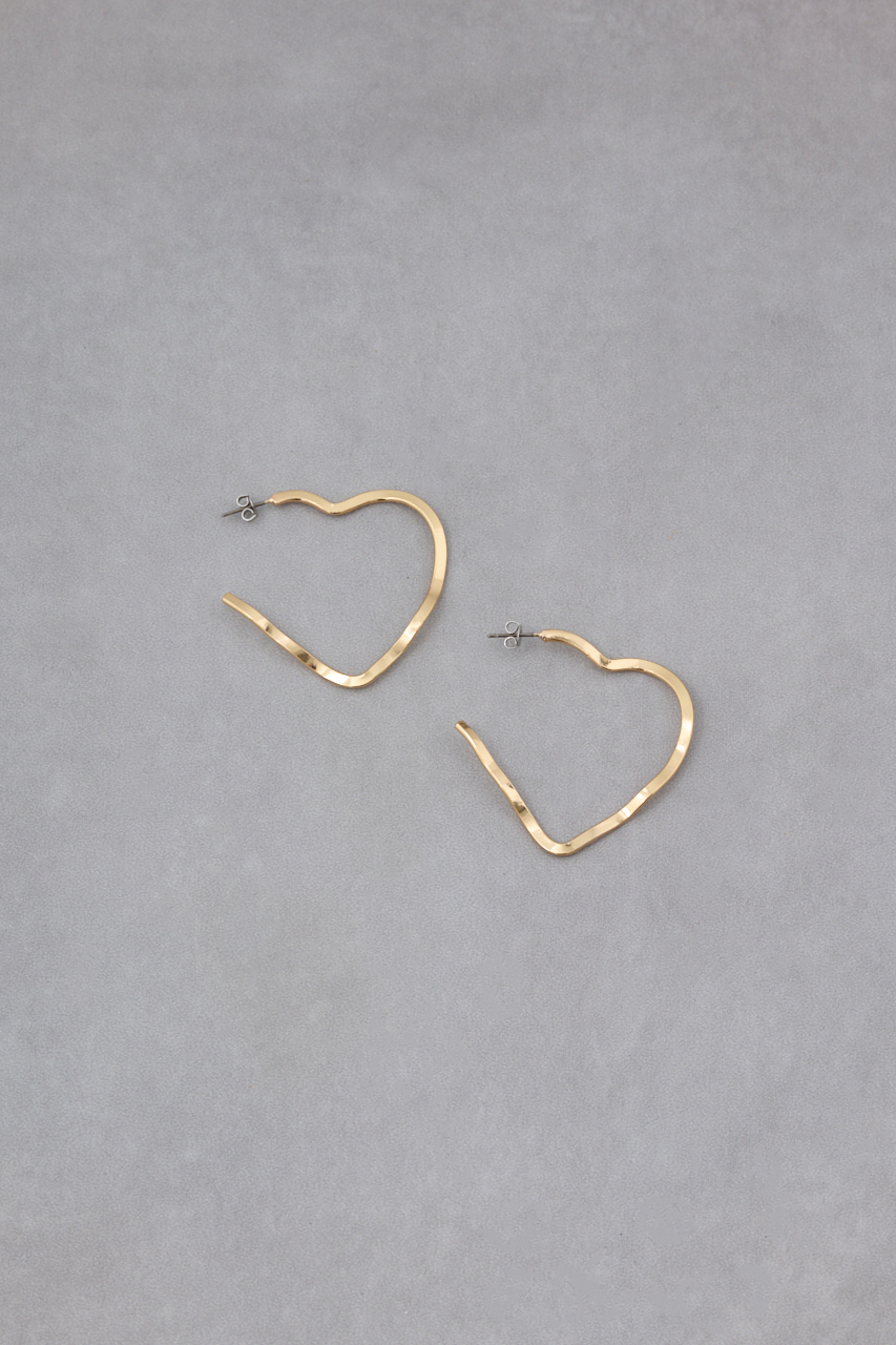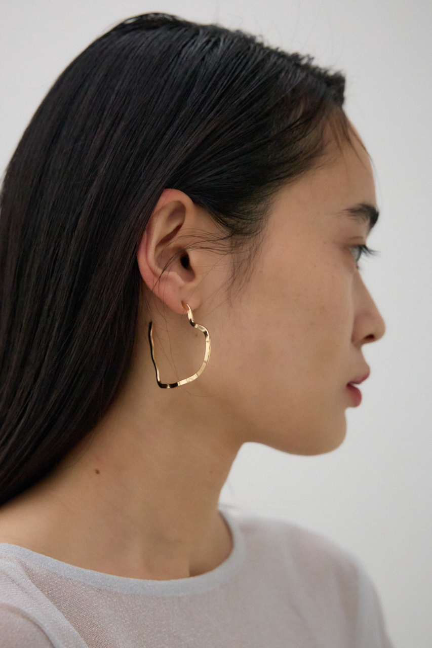 大きめのフープデザインに柔らかなハートモチーフがあしらわれた、存在感抜群のアクセサリーです。