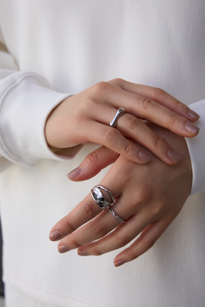 それぞれのリングは単体でも美しく、重ね付けすると可愛いバランス感を生み出します。