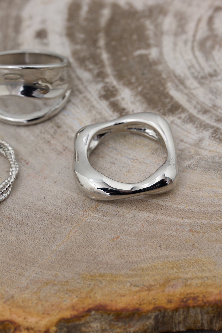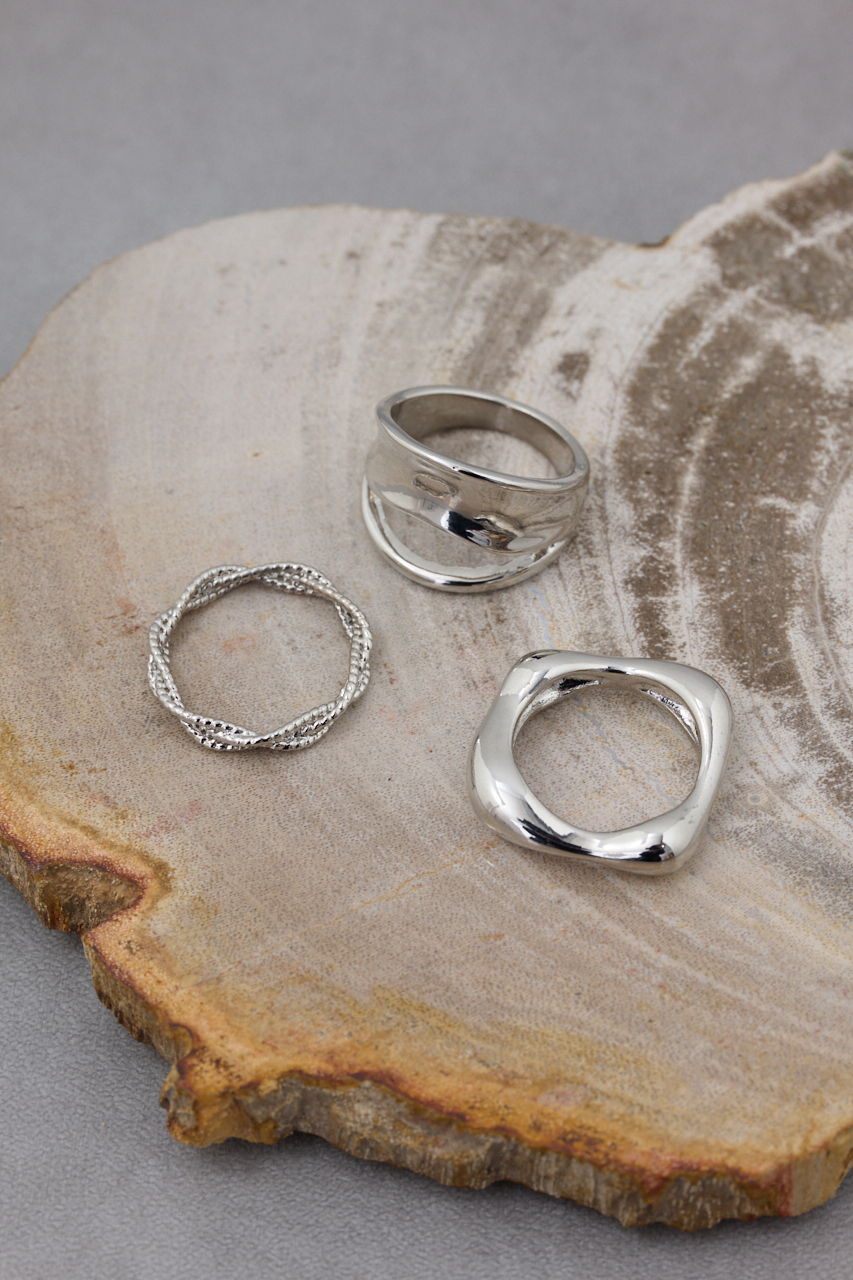 さまざまなボリューム、デザイン、カラーが楽しめる3連リングセット。