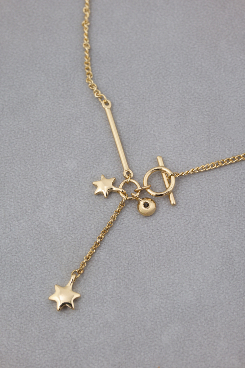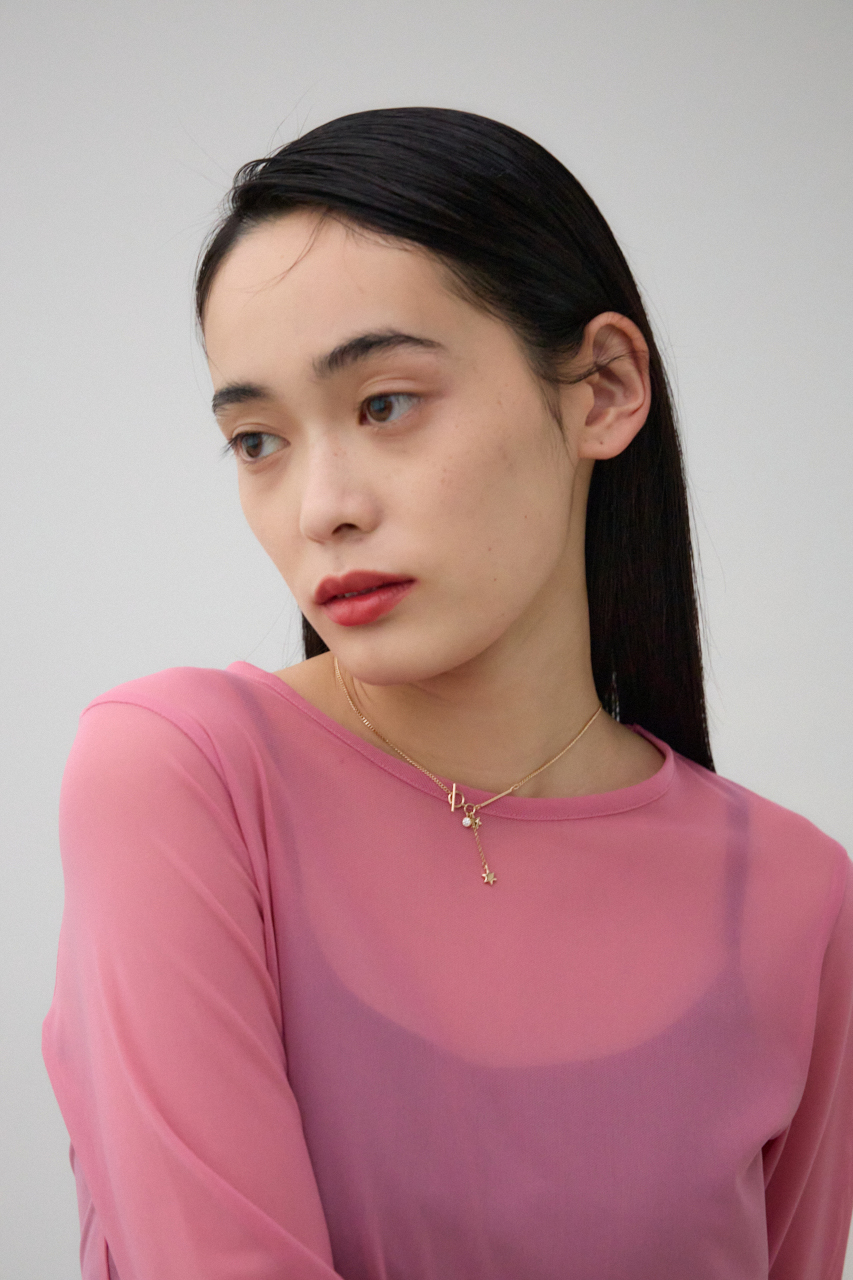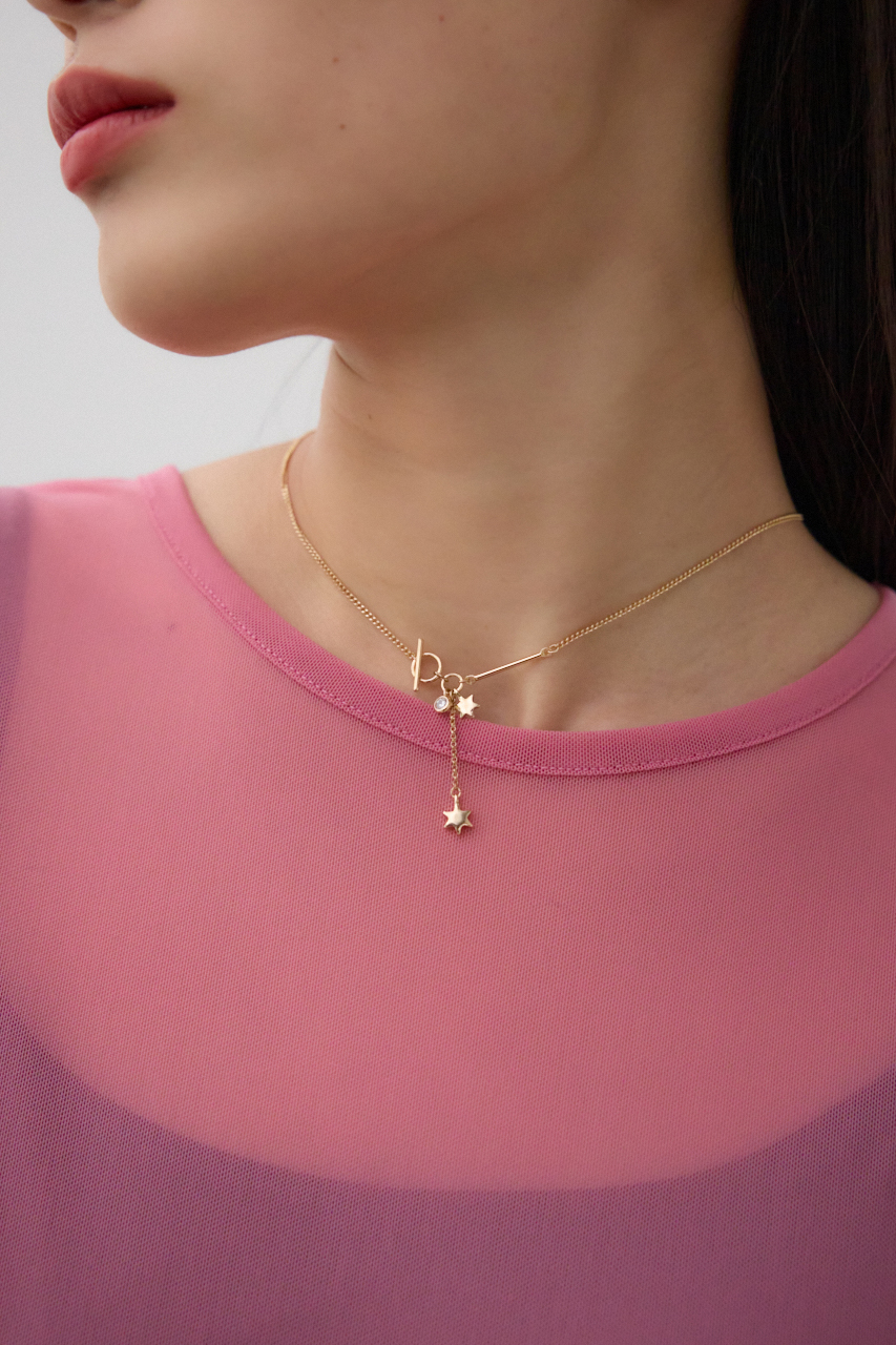 華奢なチェーンにアスタリスクやマンテルモチーフを組み合わせた、シンプルでトレンド感のあるデザイン。