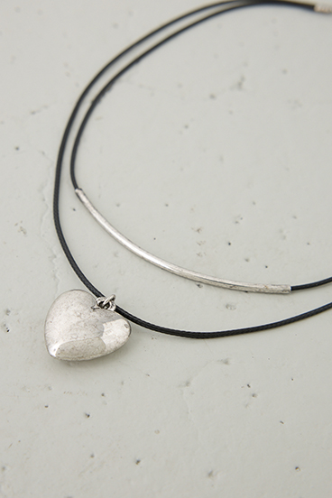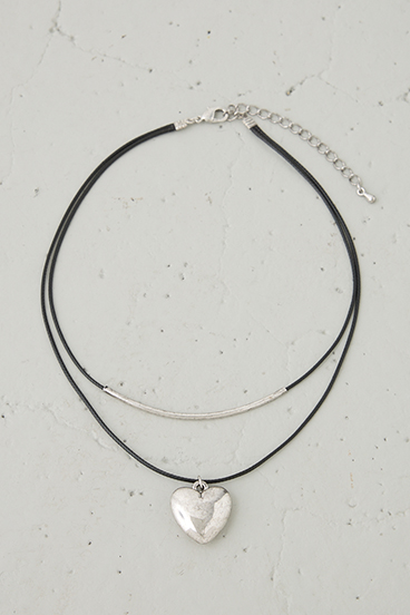 ぷっくりとした立体感のあるハートトップが目を惹く、トレンドのチョーカーデザインを取り入れた2連ネックレス。