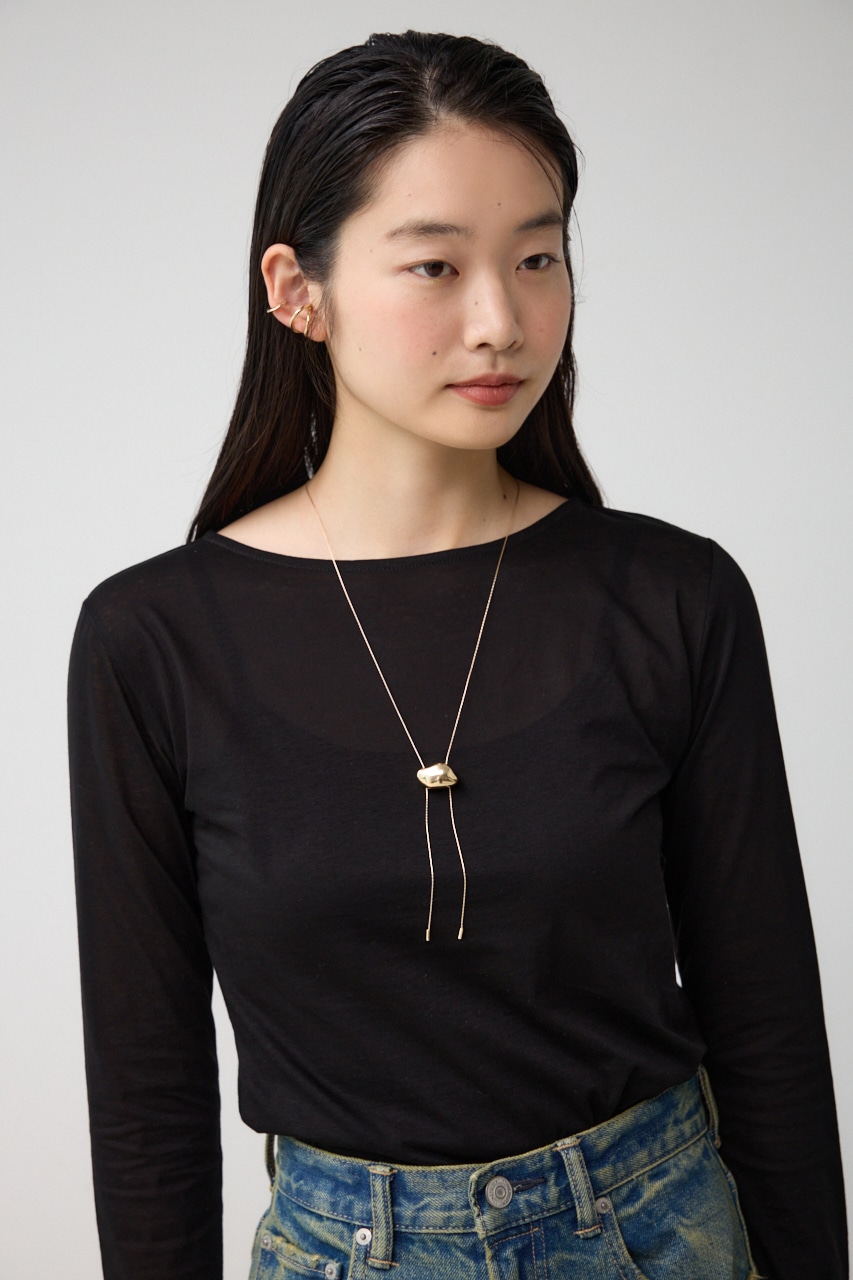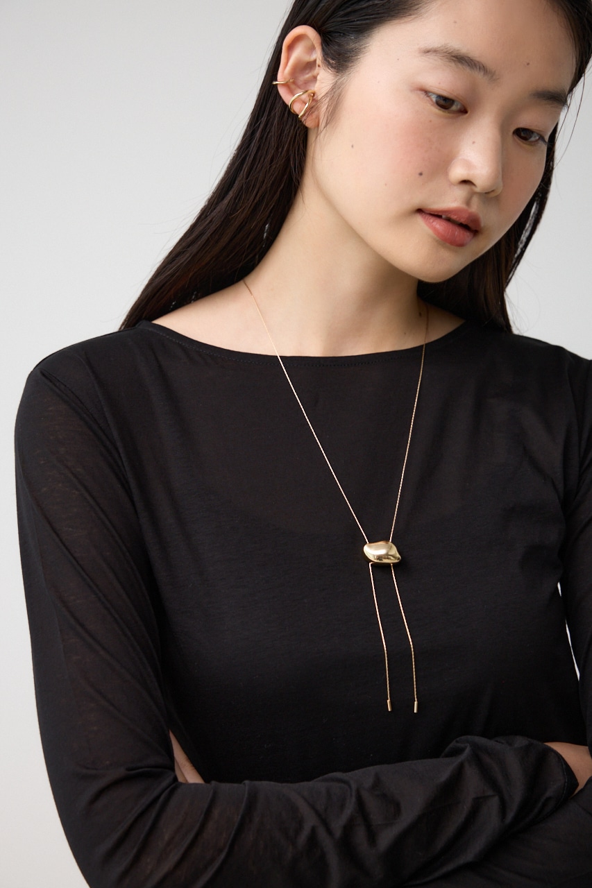 トップ部分で長さが調整できる仕様になっているためトップ部分を一番下まで落としてロングネックレスとして。