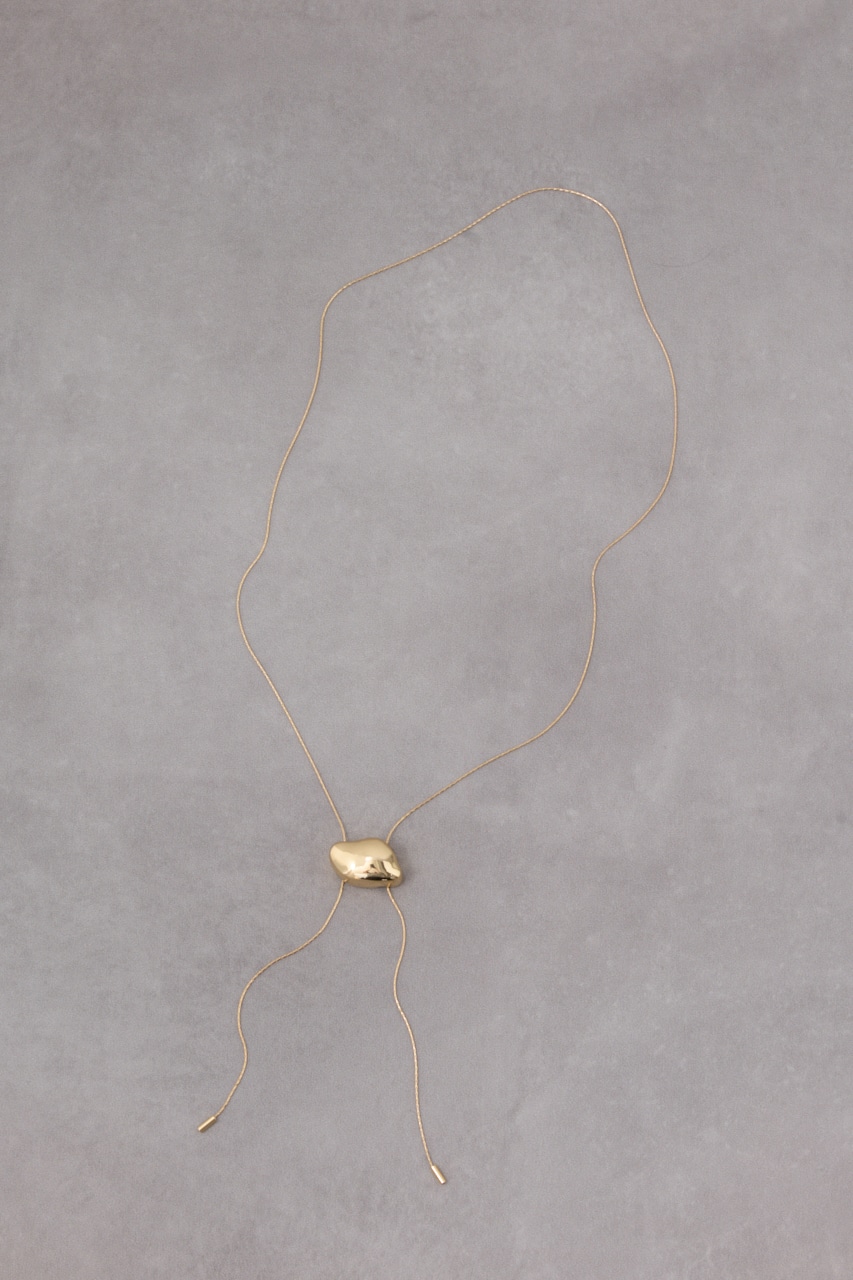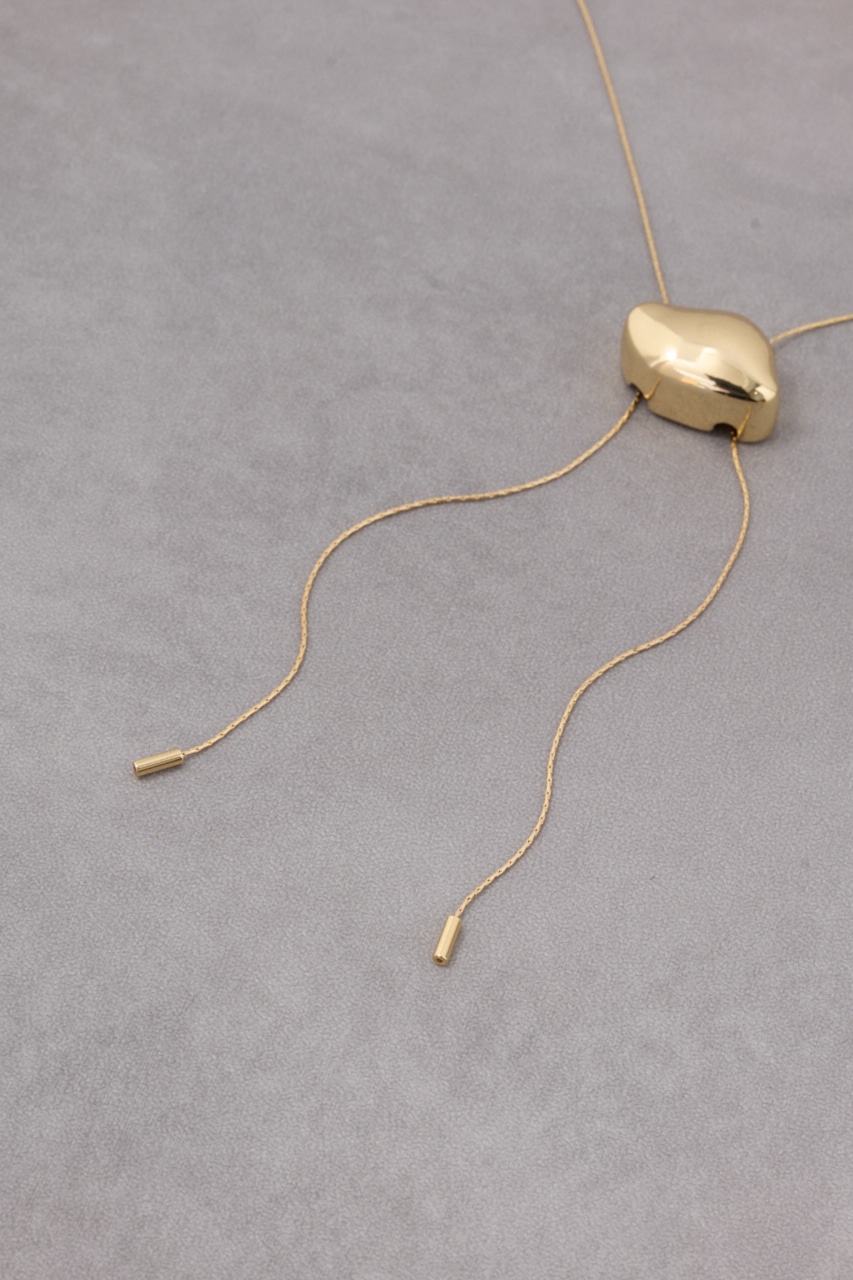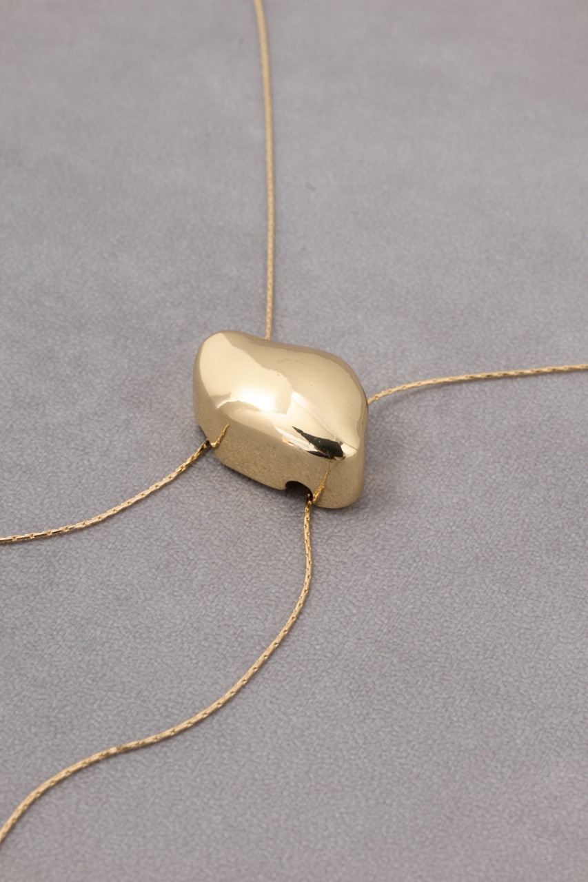 変形デザインのモチーフと繊細なチェーンの組み合わせが目を惹くマルチウェイネックレス。