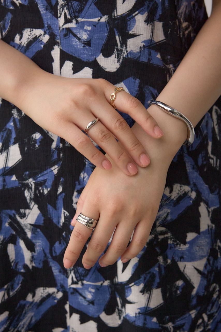 ひとつひとつのデザインが洗練されているので、単品でつけても存在感があり、3つすべてを重ねれば手元が一気にこなれた印象に仕上がります。