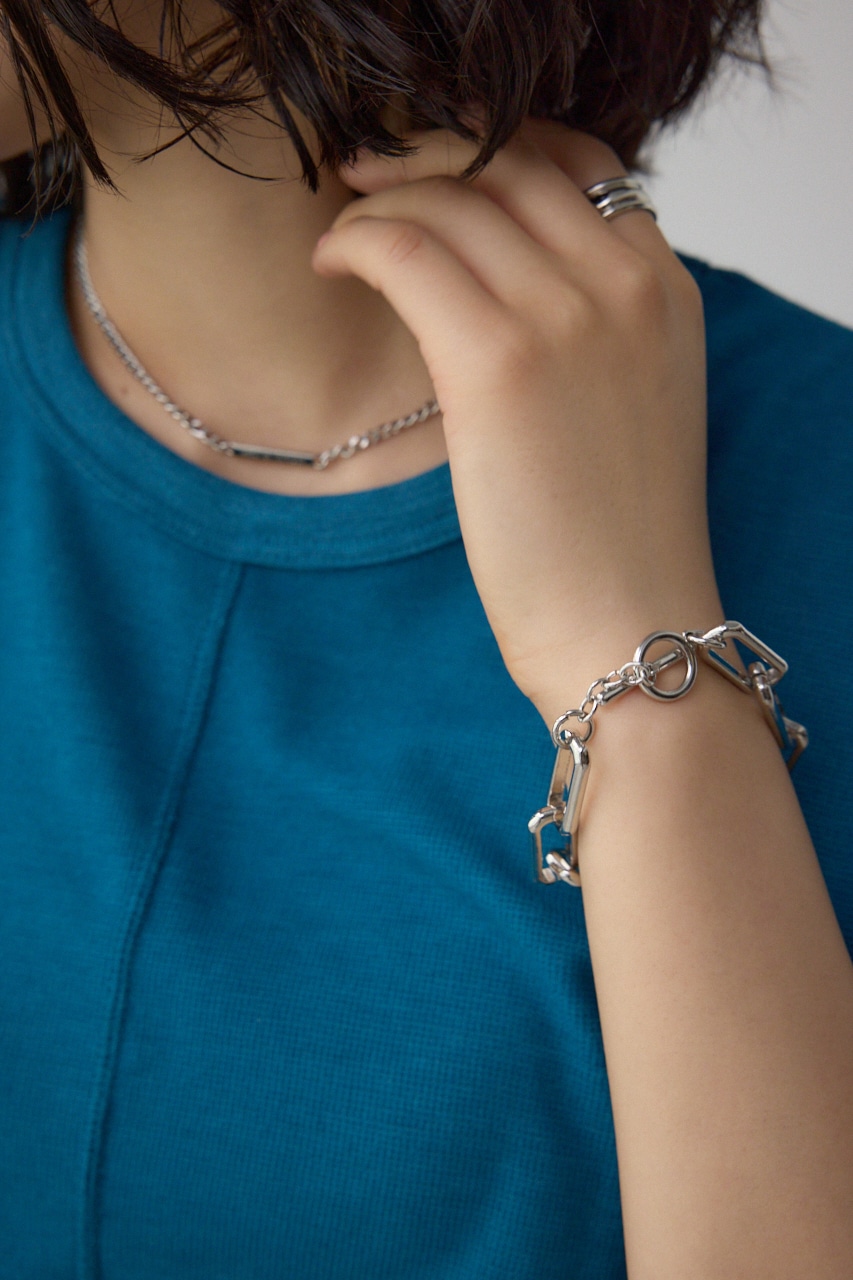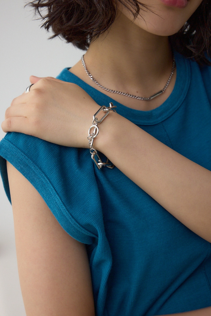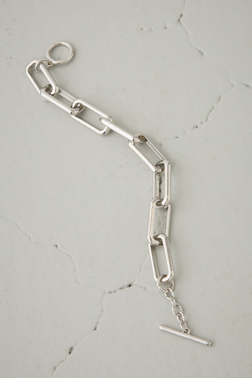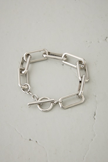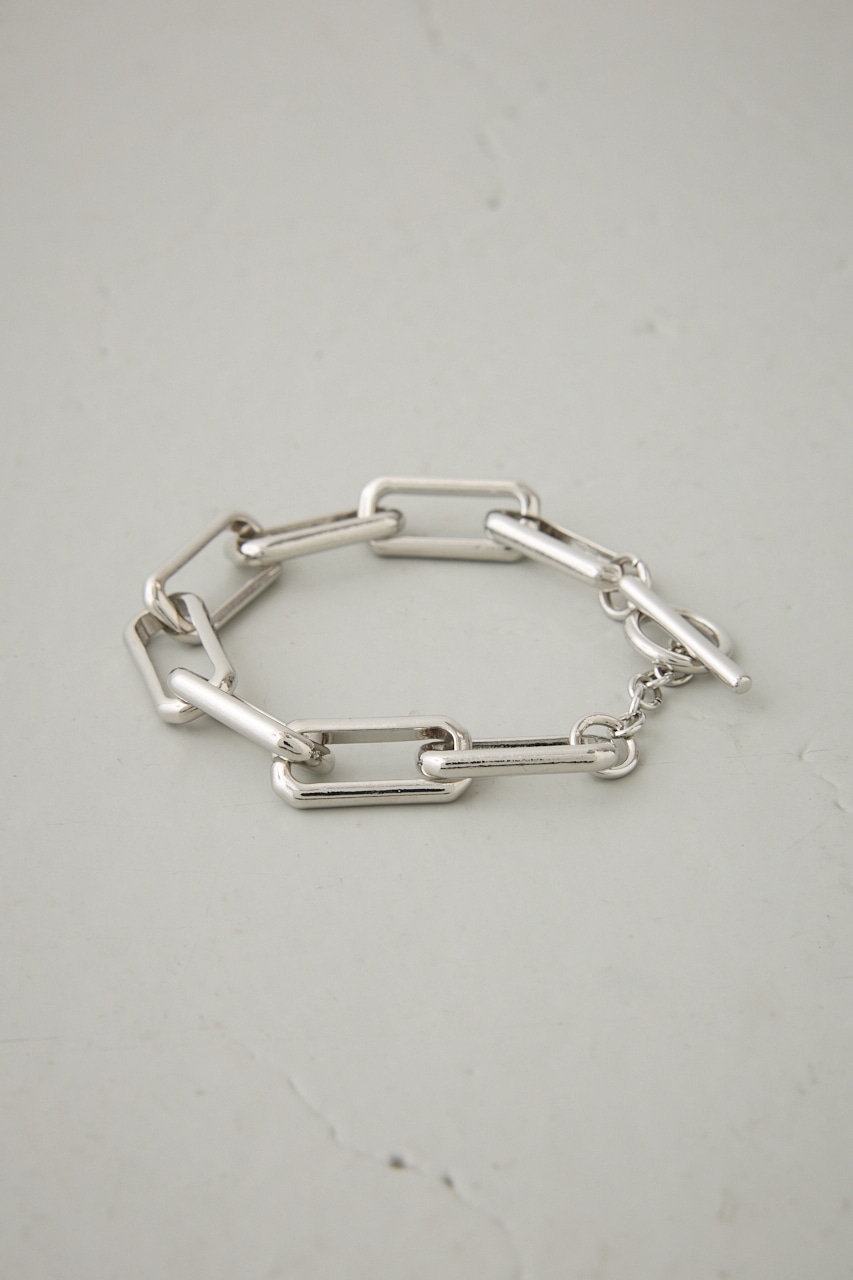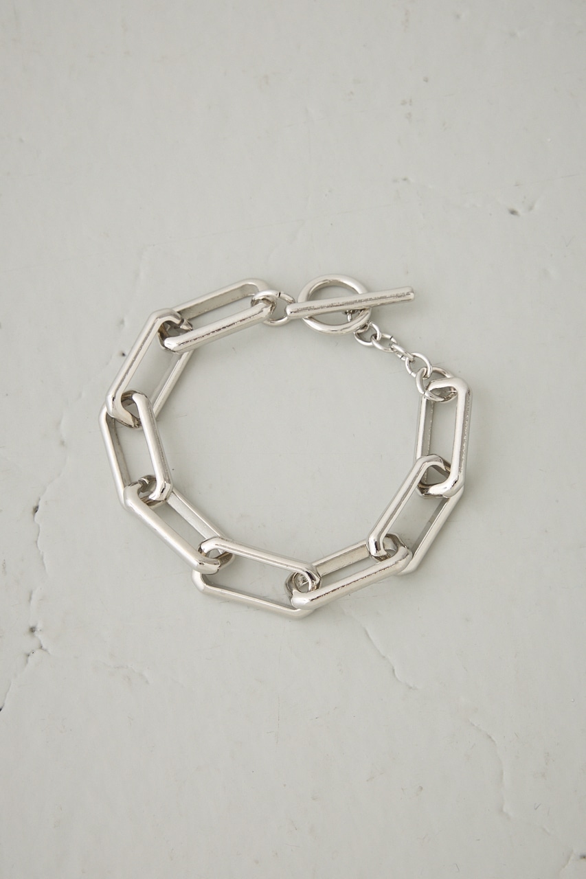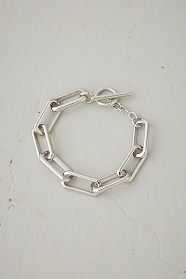 程よい太さのチェーンを連ねたブレスレットは、無駄を削がれたミニマルなデザインながら、しっかりとした存在感を放つアイテム。