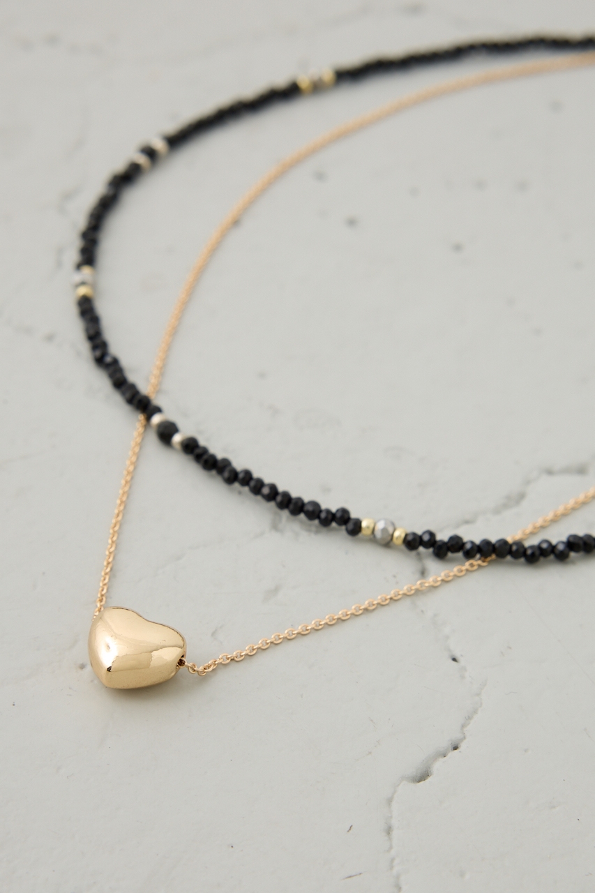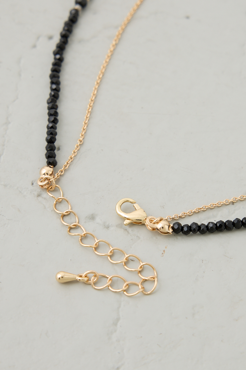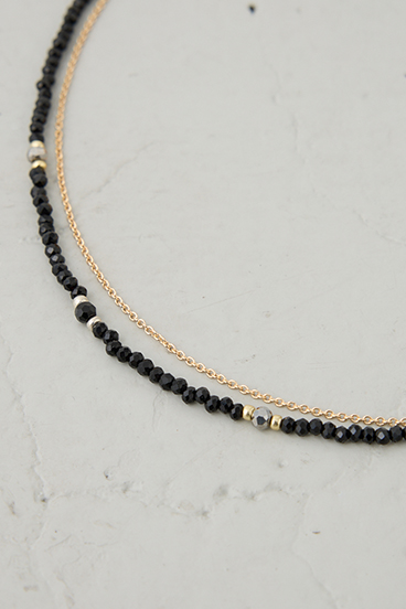 夏らしいビーズと繊細なチェーンを組み合わせた、カジュアルすぎず上品に楽しめる2連ネックレスは、夏の装いにぴったりのアクセント。