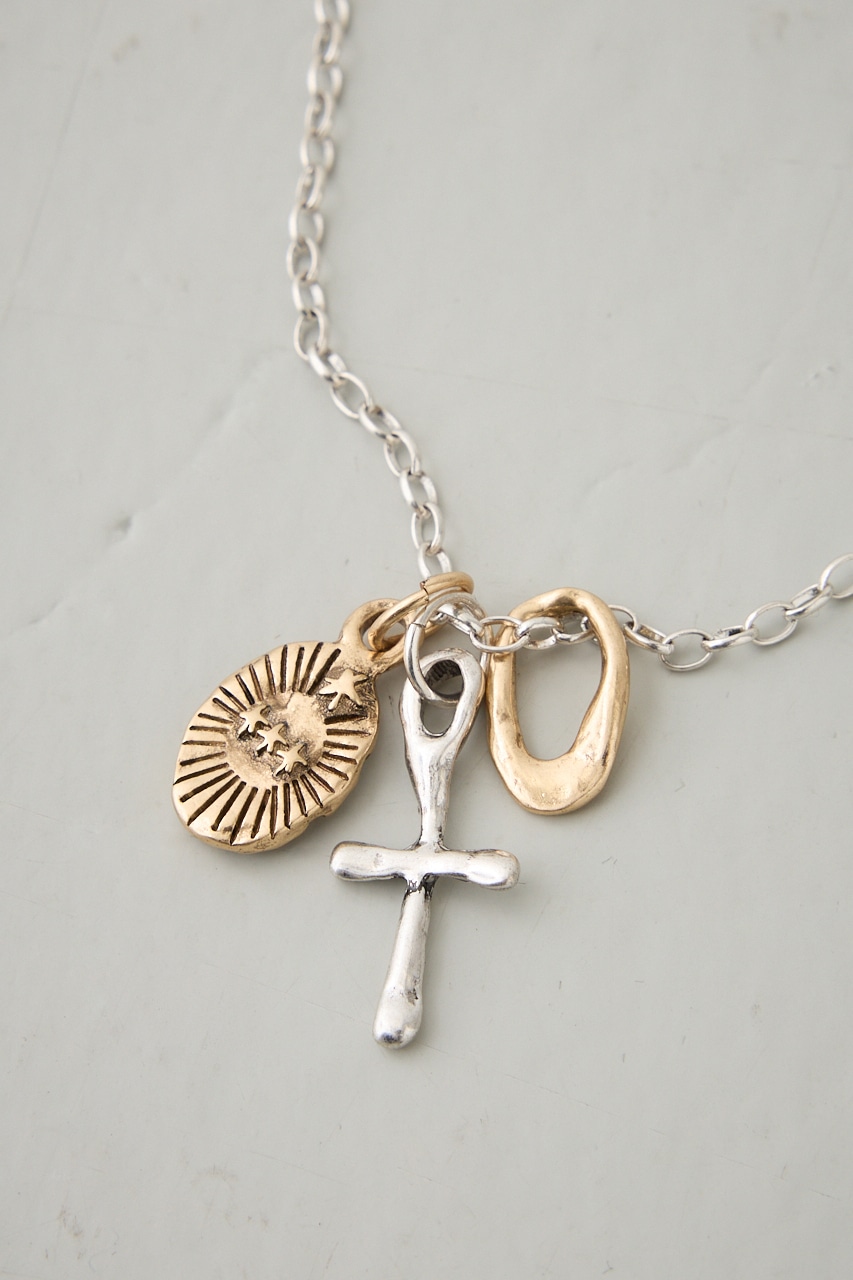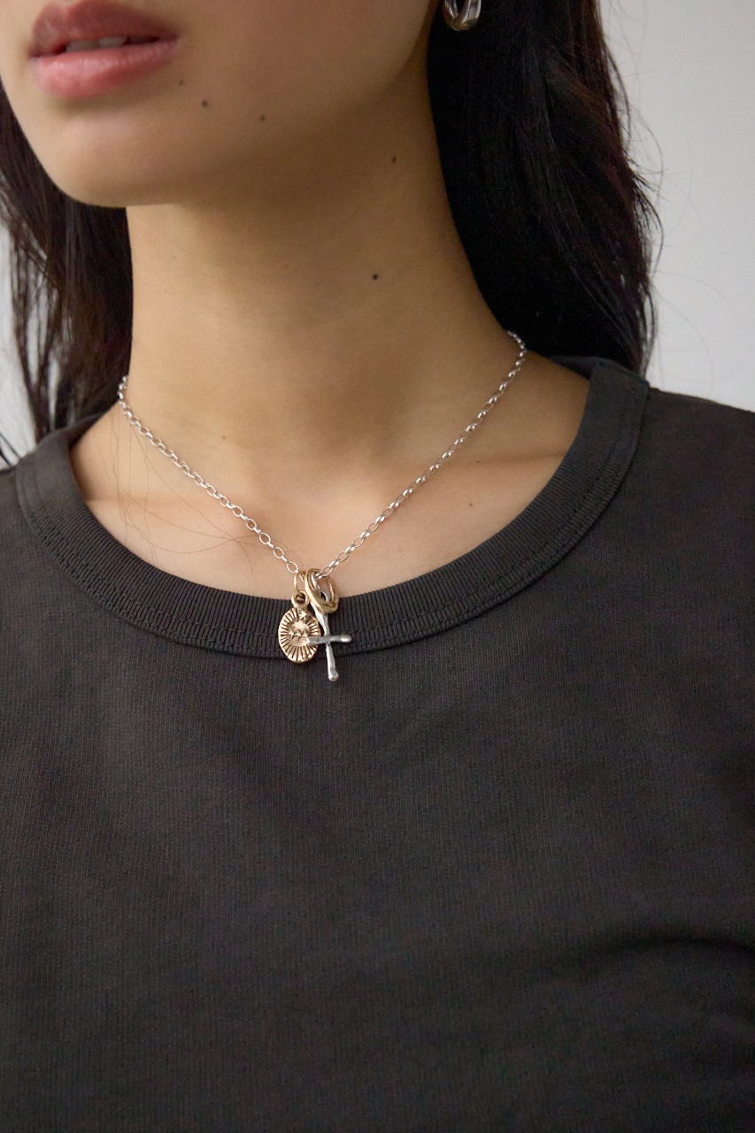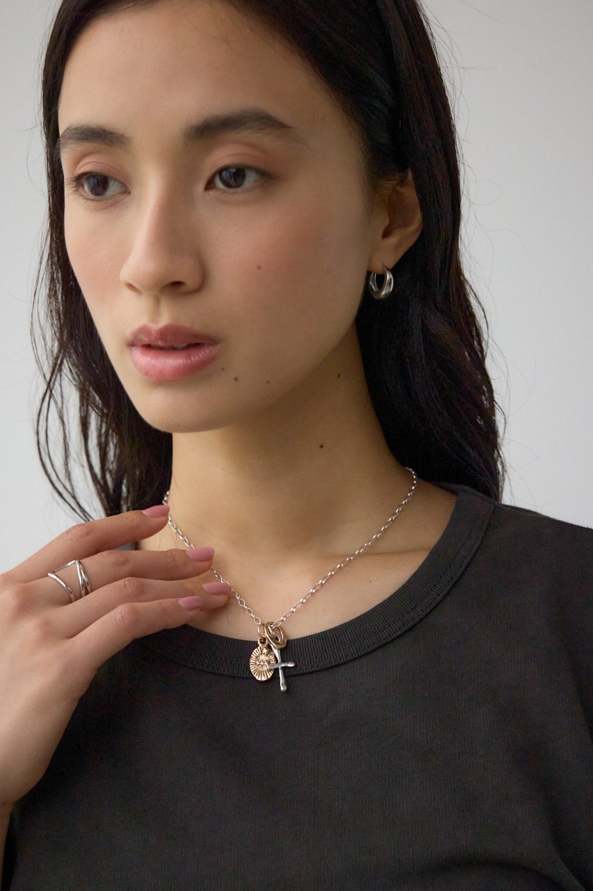 クロスやサークルなど、存在感のあるチャームを組み合わせたヴィンテージ風のデザインが魅力。