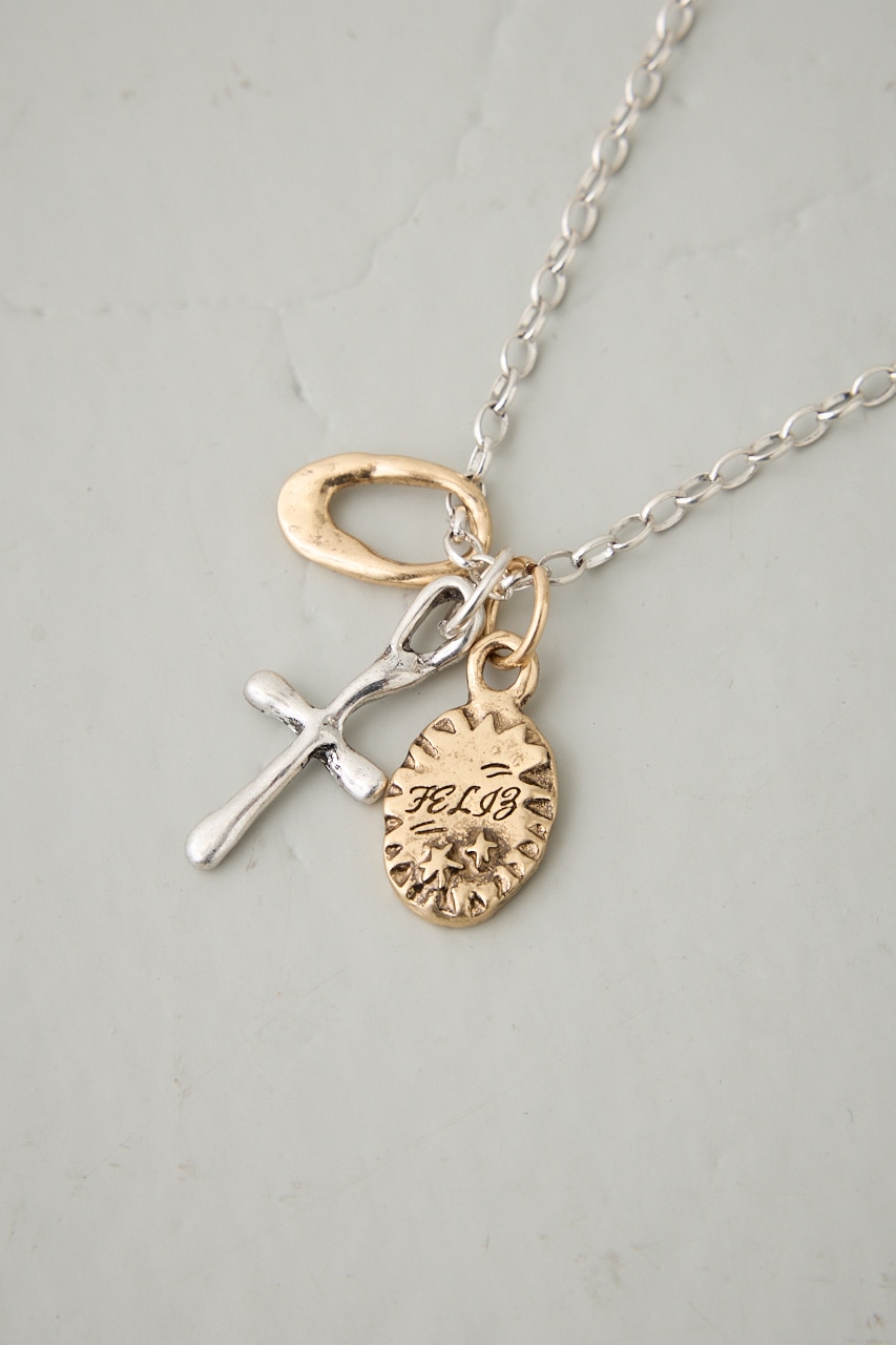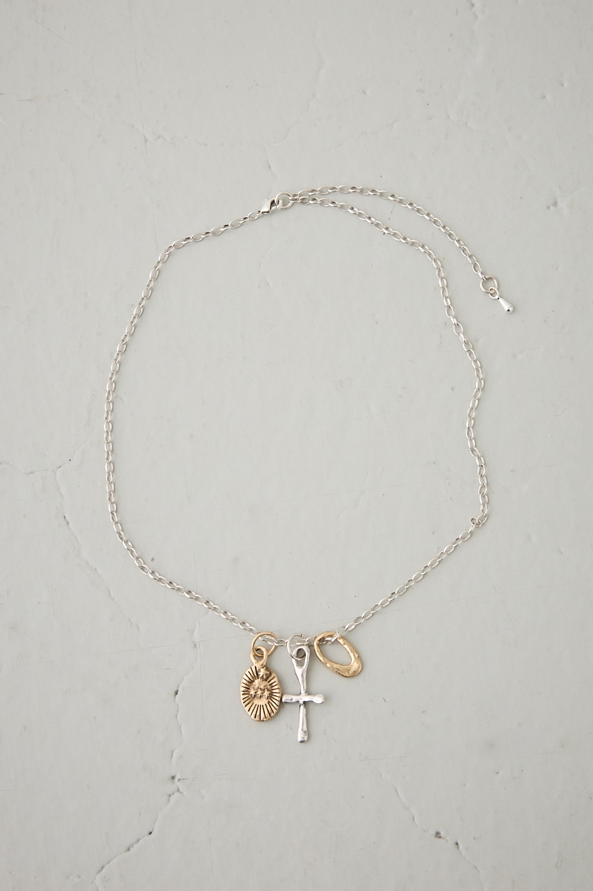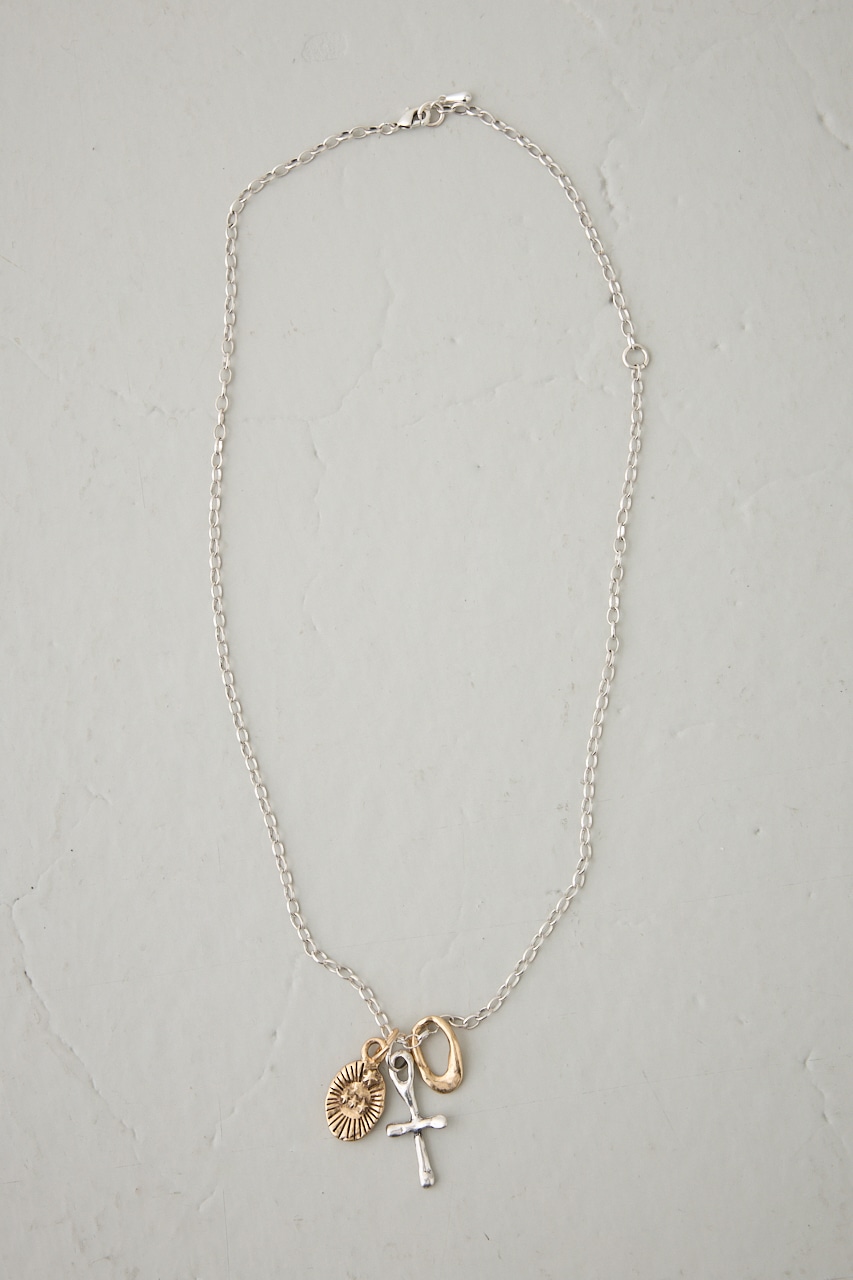 クロスやサークルなど、存在感のあるチャームを組み合わせたヴィンテージ風のデザインが魅力。