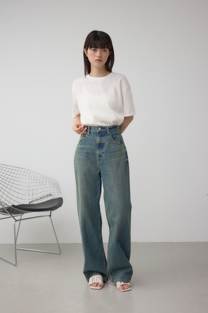 ハイウエストデニムやボリュームのあるボトムとあわせてカジュアルに着こなしていただくのがおすすめです。