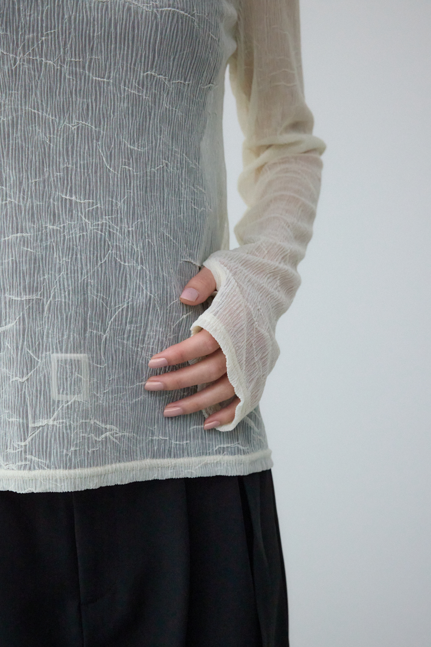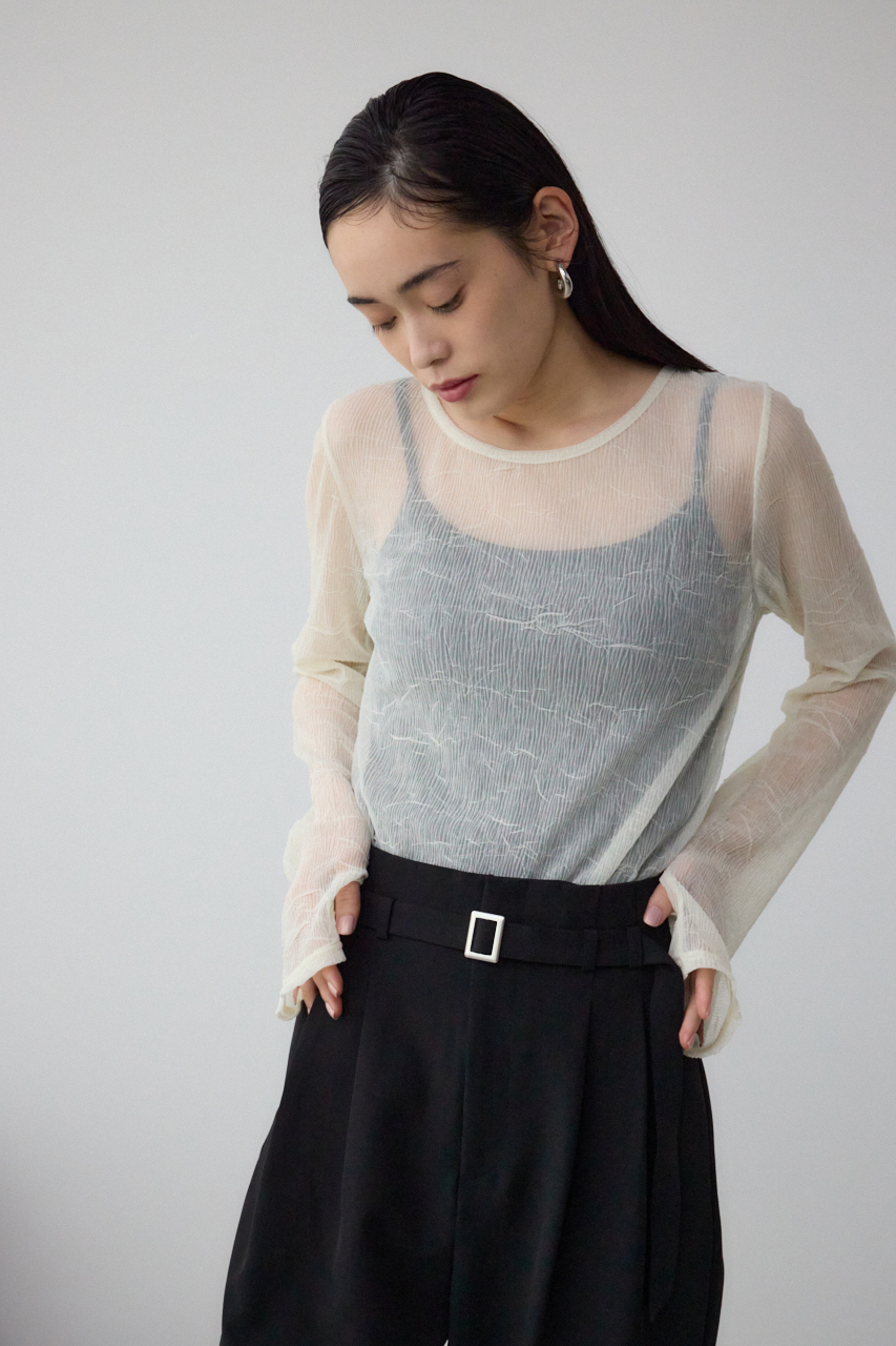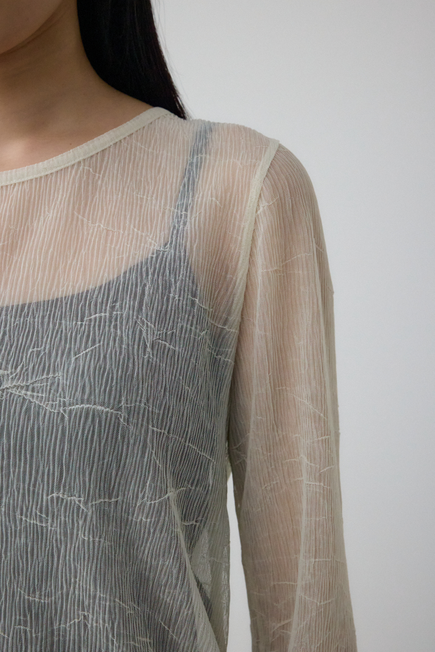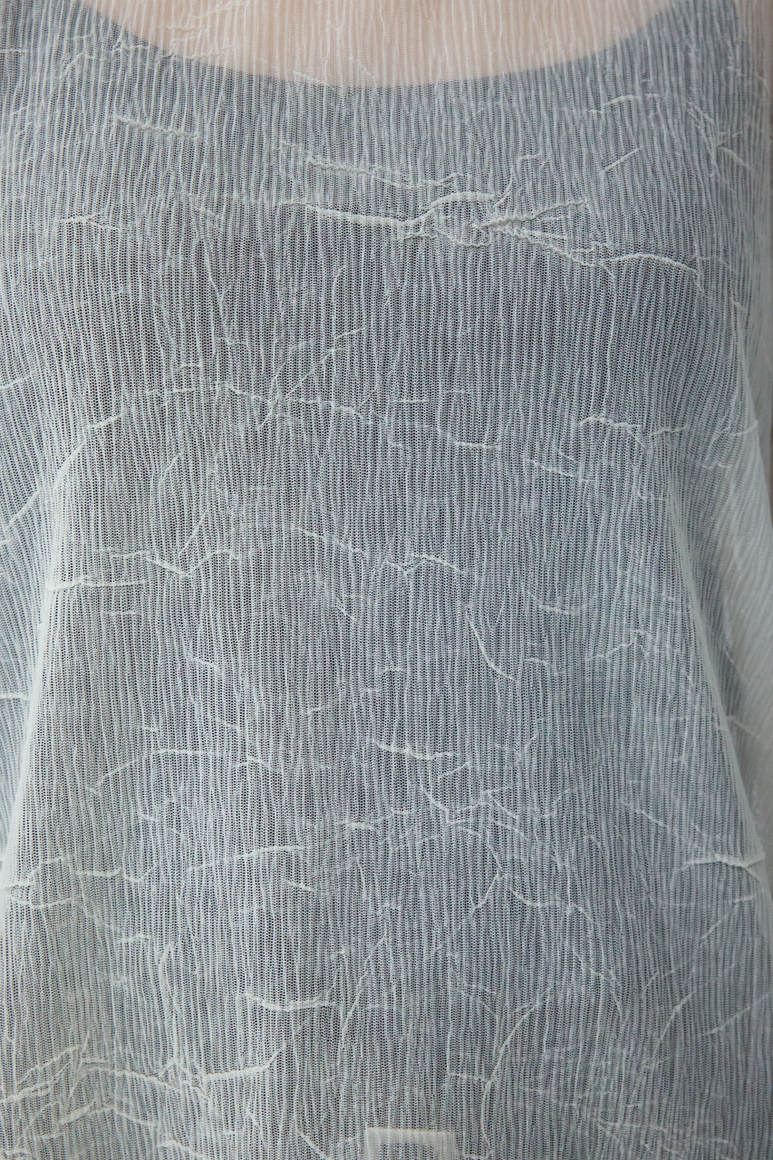 シアー感のある繊細なチュールに、ランダムなプリーツ加工を施しました。