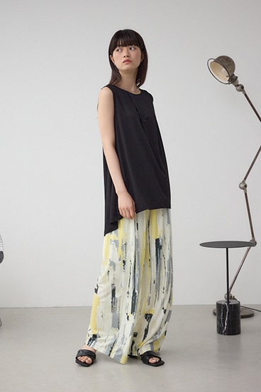 同素材の250ISB80-498E C/Tシャーベットフレアスリーブトップス、250ISB80-497E C/Tシャーベットノースリーブトップスとセットアップで着用していただけます。