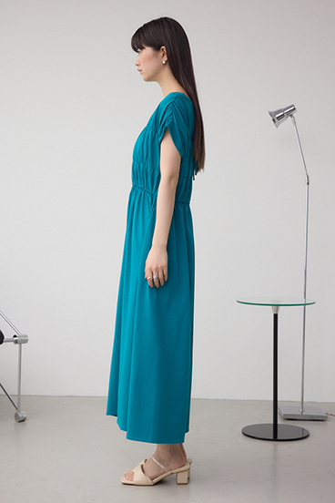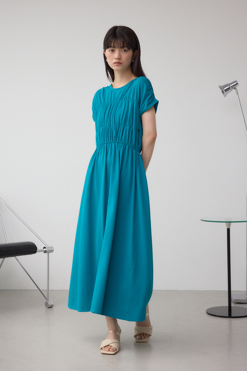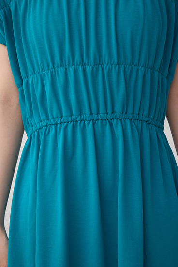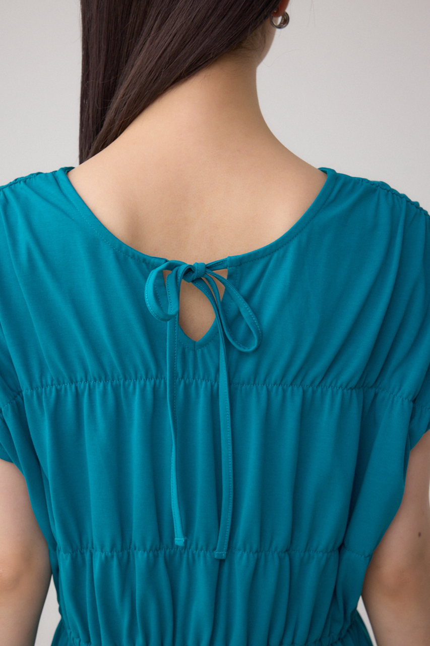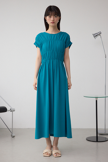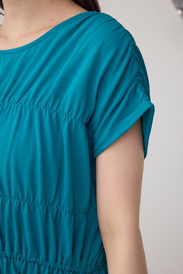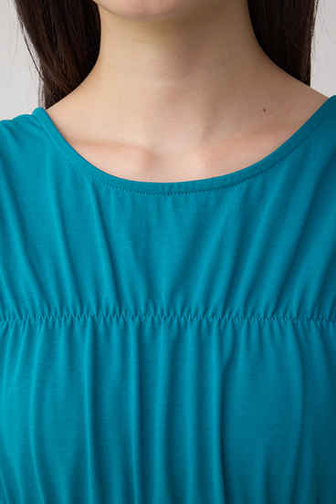 シンプルでありながら、タックのデザインが立体感を生み、女性らしいシルエットを演出します。