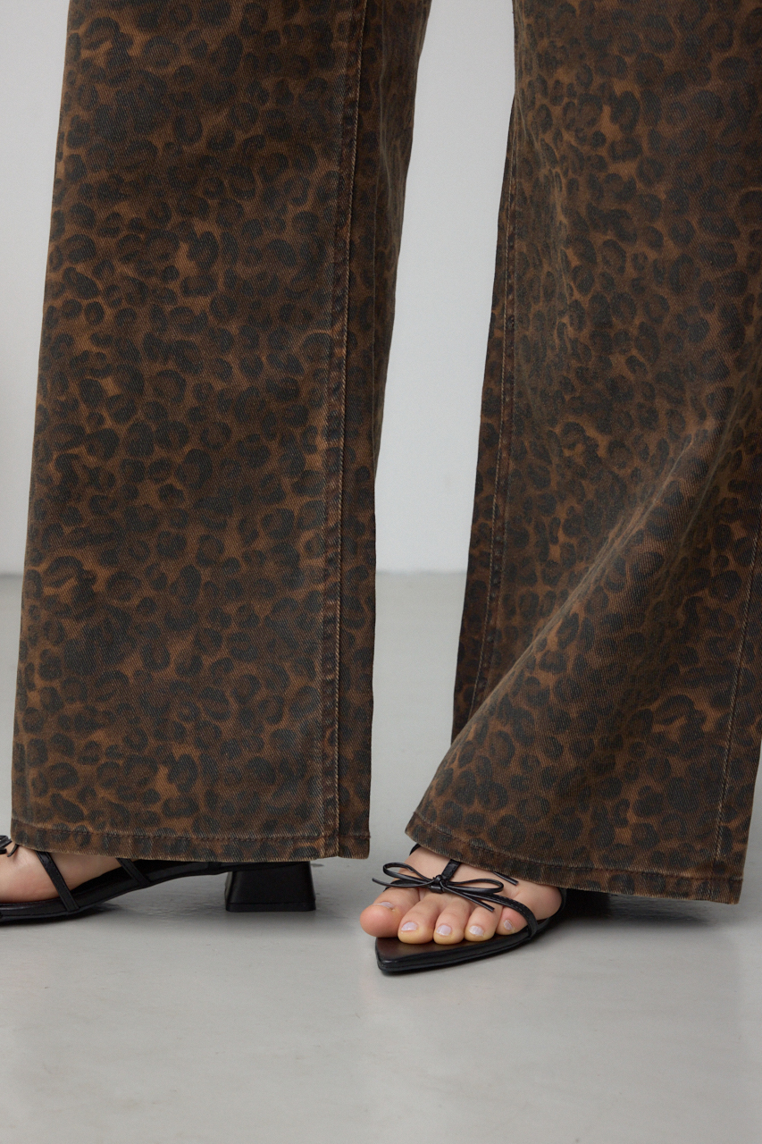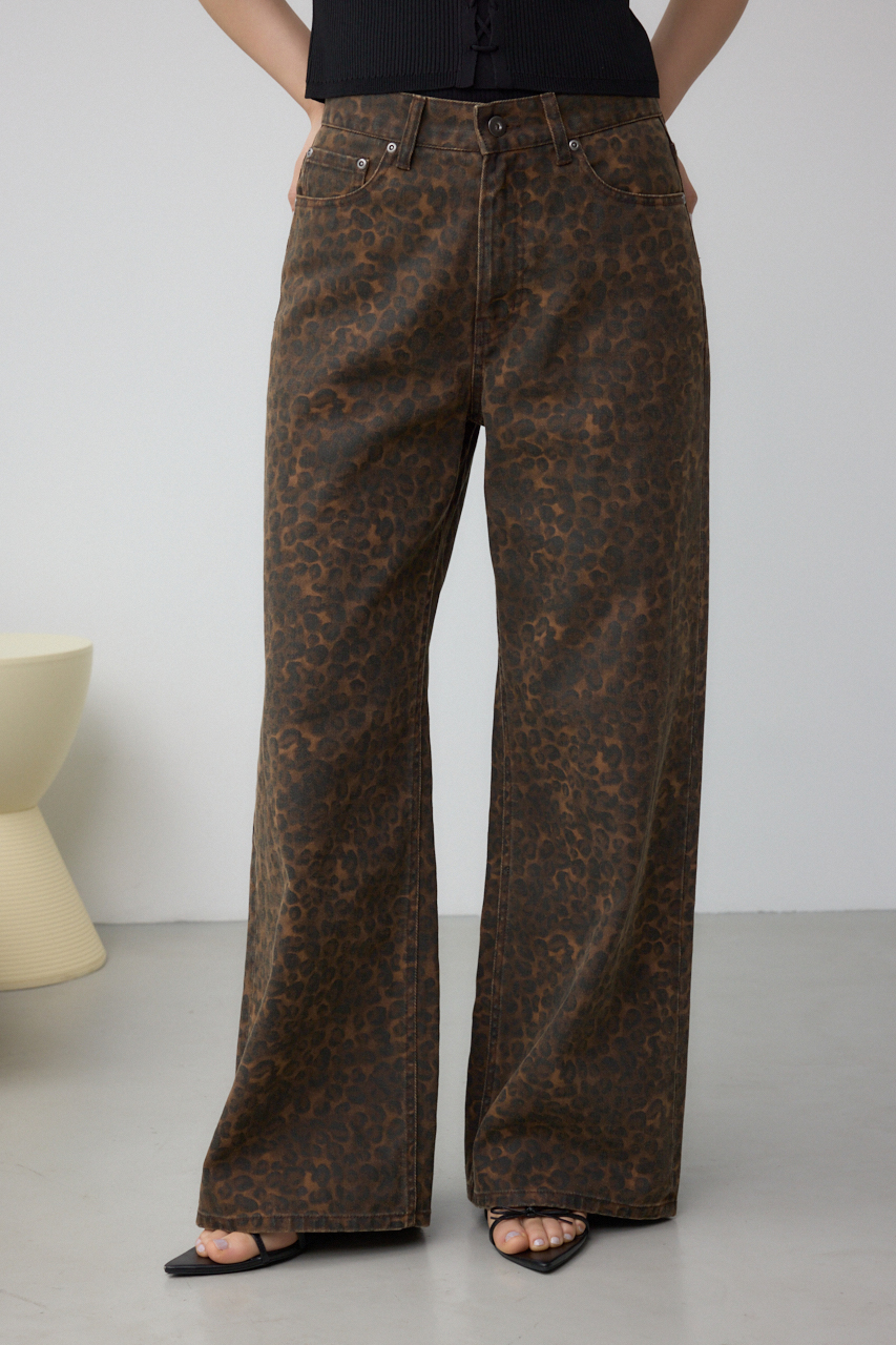オリジナルのレオパード柄を施したジャストウエストで着用して頂くワイドデニムです。