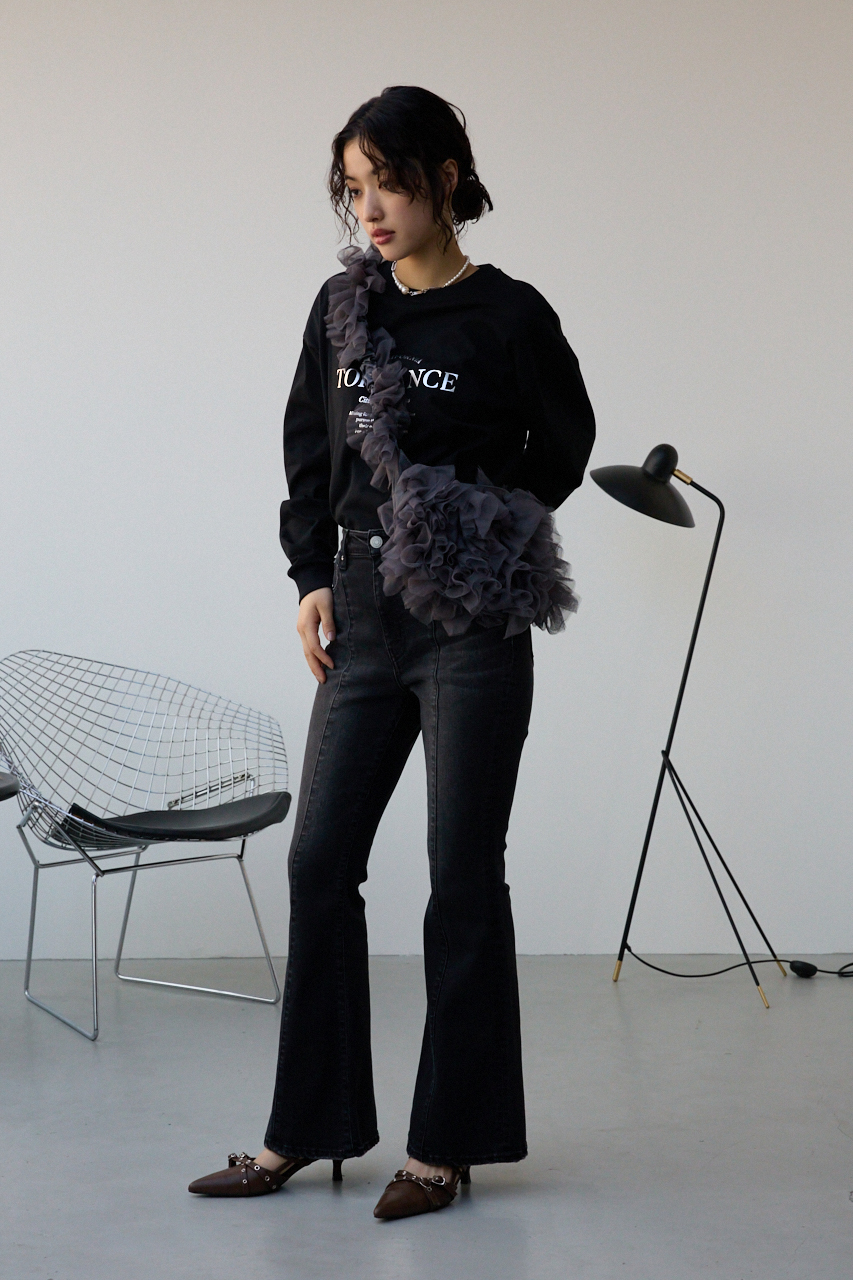 縦にフリルを使用することでかわいすぎずモードな印象に。