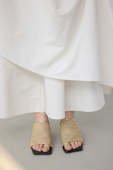 ベーシックなトップスと合わせるだけでも、ボトムが主役となり華やかでモードなスタイリングに仕上がります。