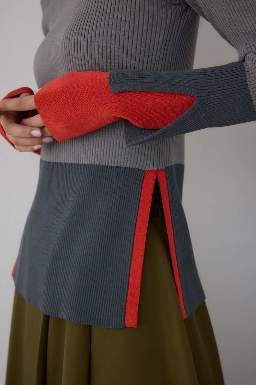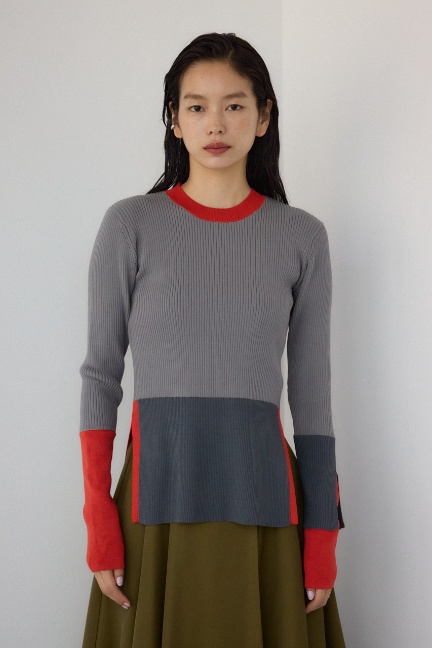 ■PLUSカラーブロッキングリブニット
