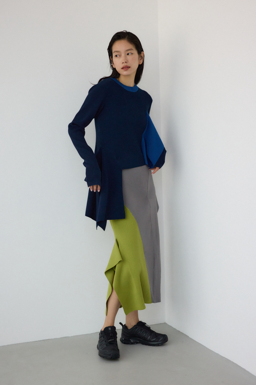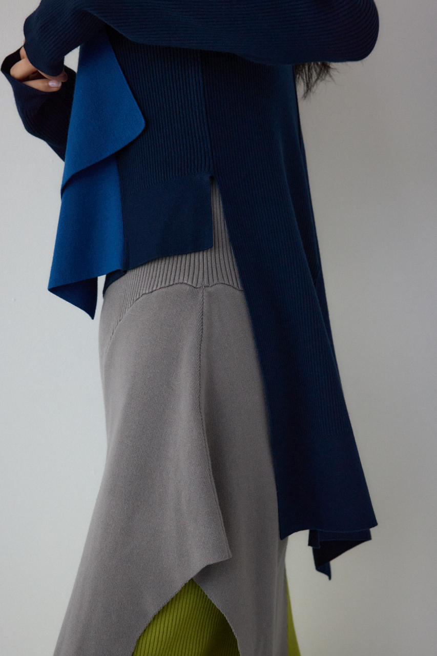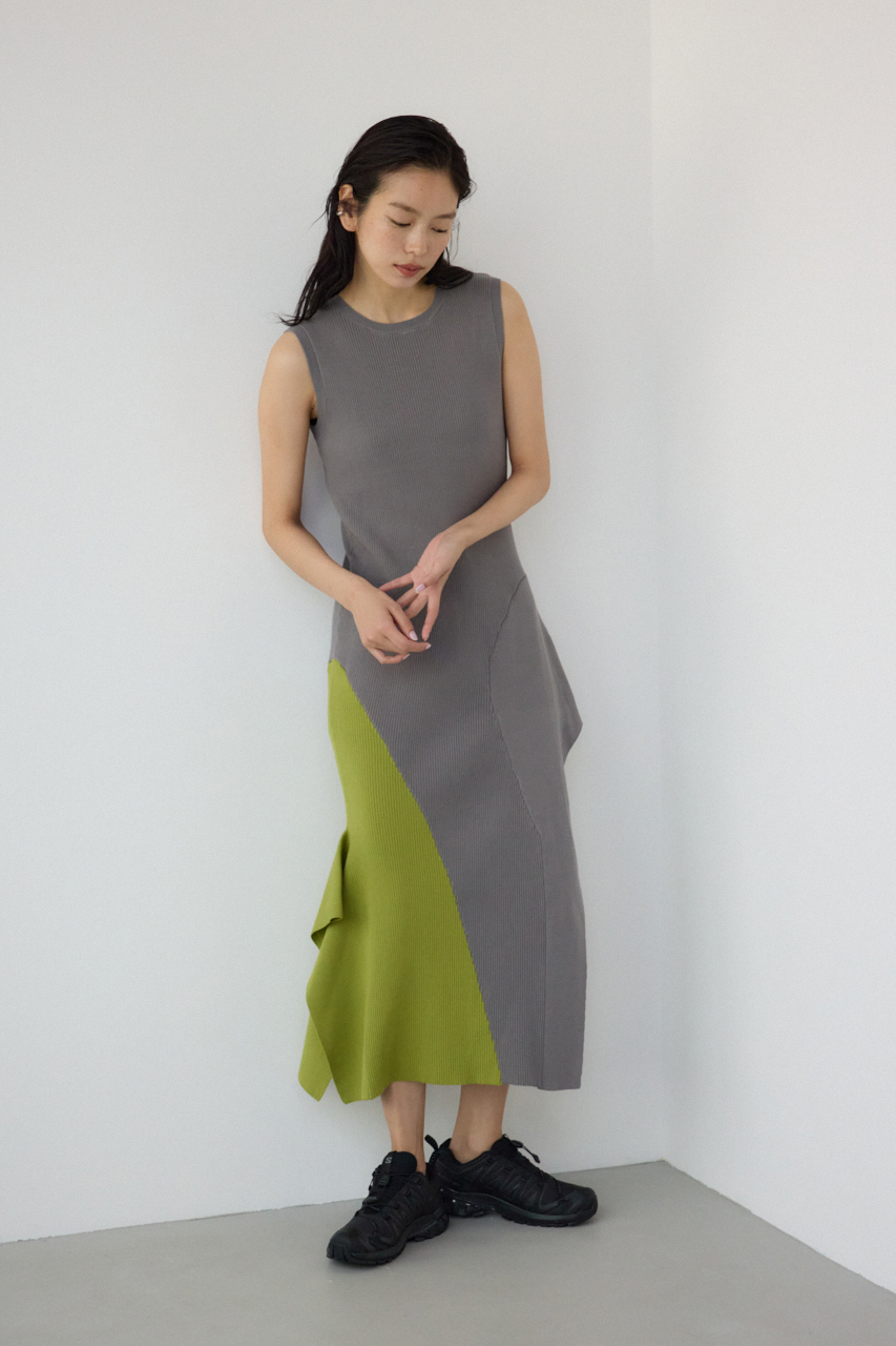 【PLUS】アシンメトリーレイヤードニットワンピース
