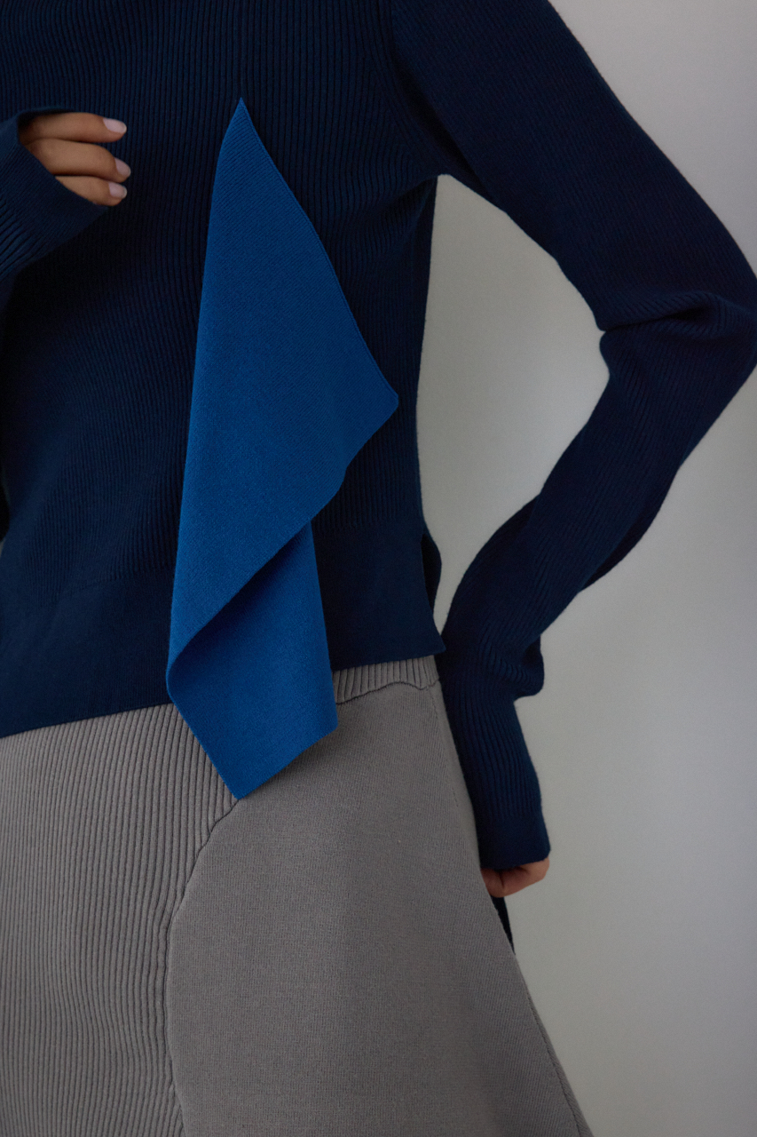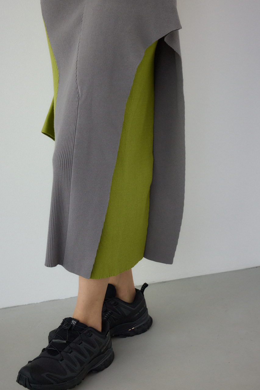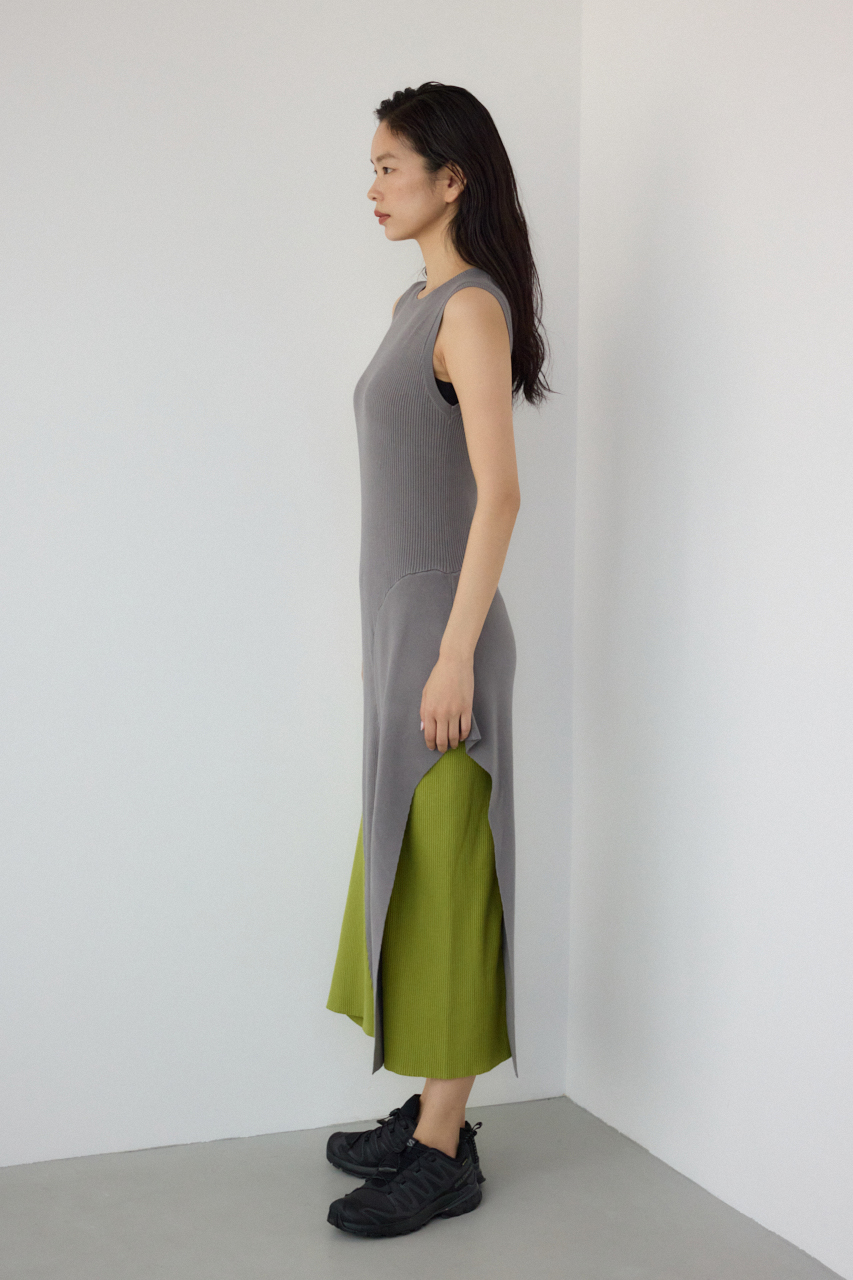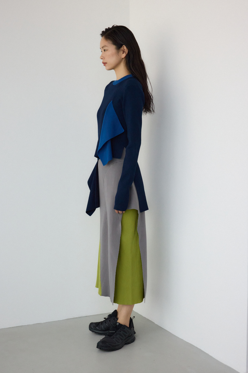 【PLUS】アシンメトリーレイヤードニットワンピース