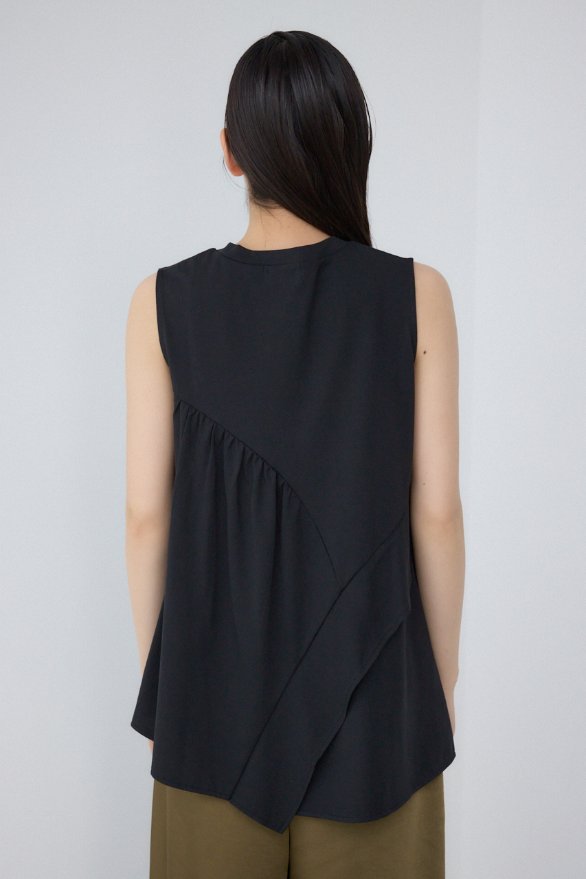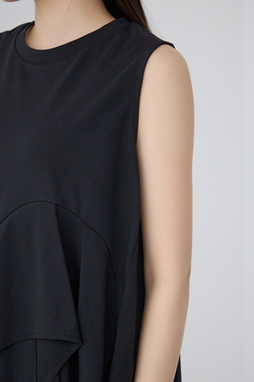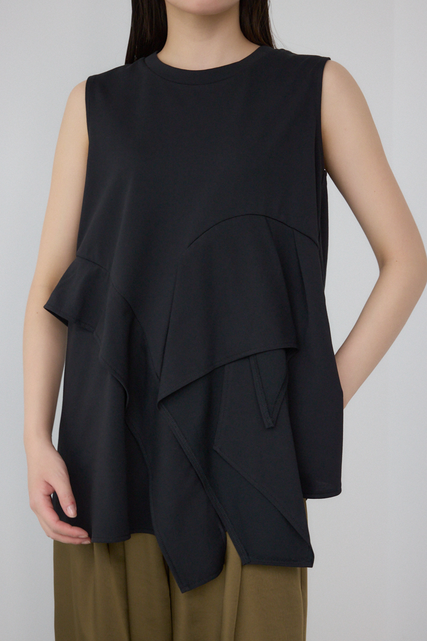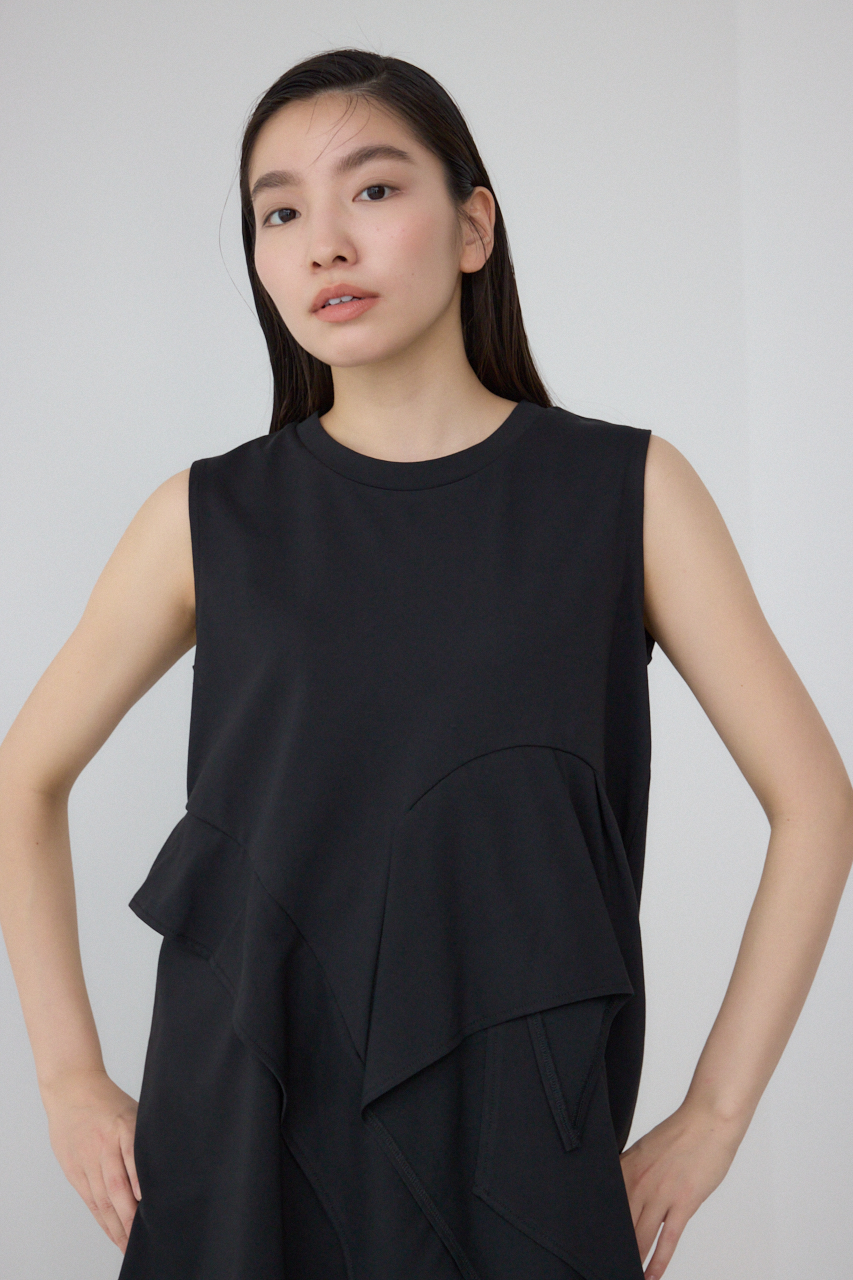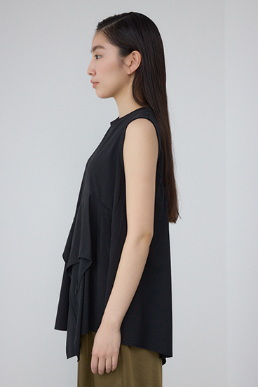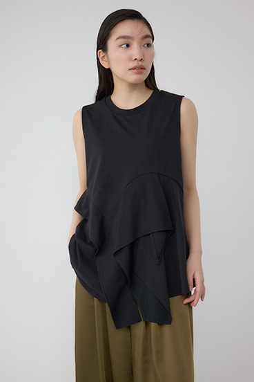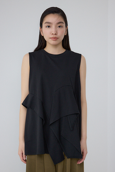 パーツをランダムにドッキングさせ、タックを施した動きのあるデザインカットソーに仕上げています。