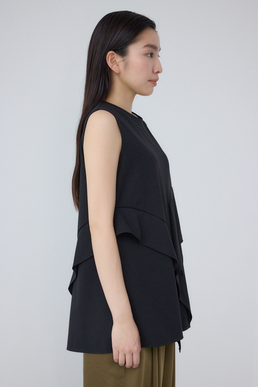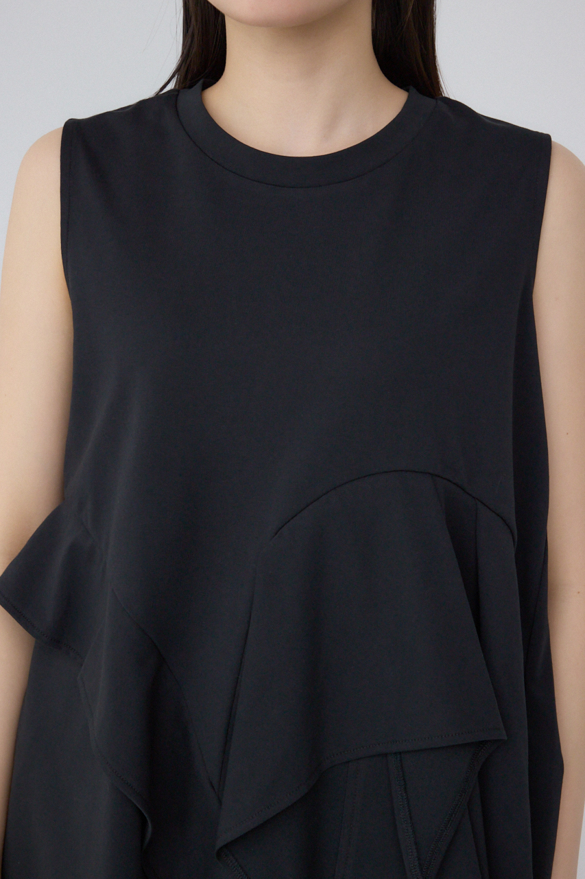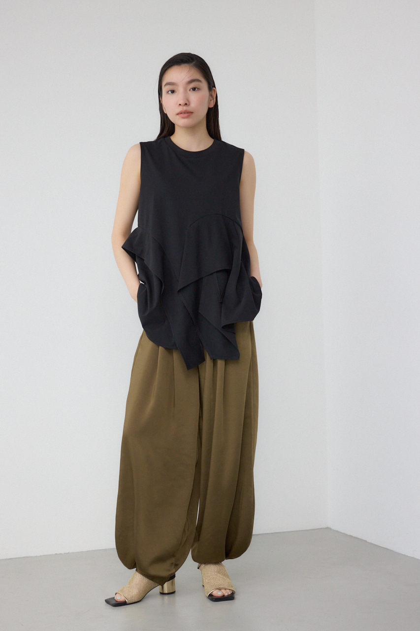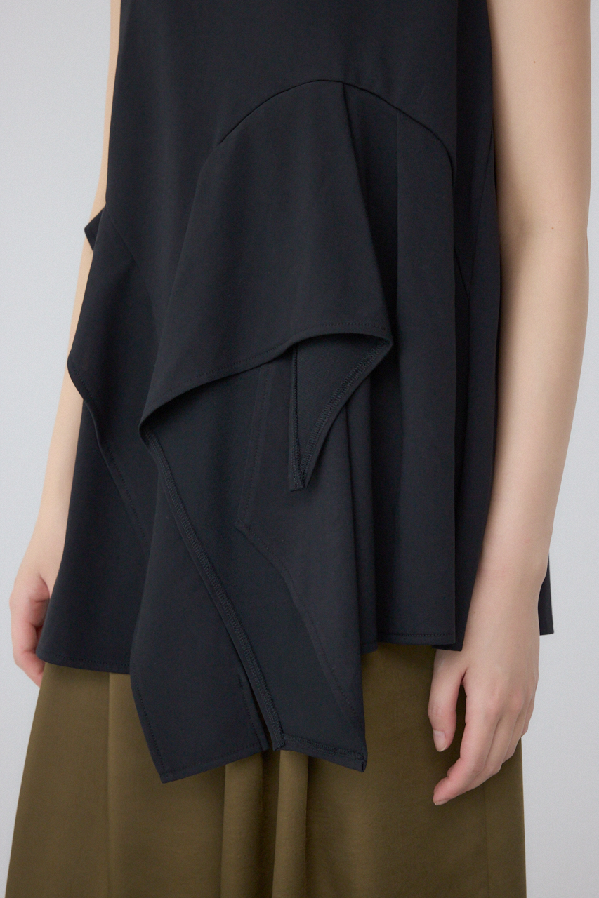 パーツをランダムにドッキングさせ、タックを施した動きのあるデザインカットソーに仕上げています。