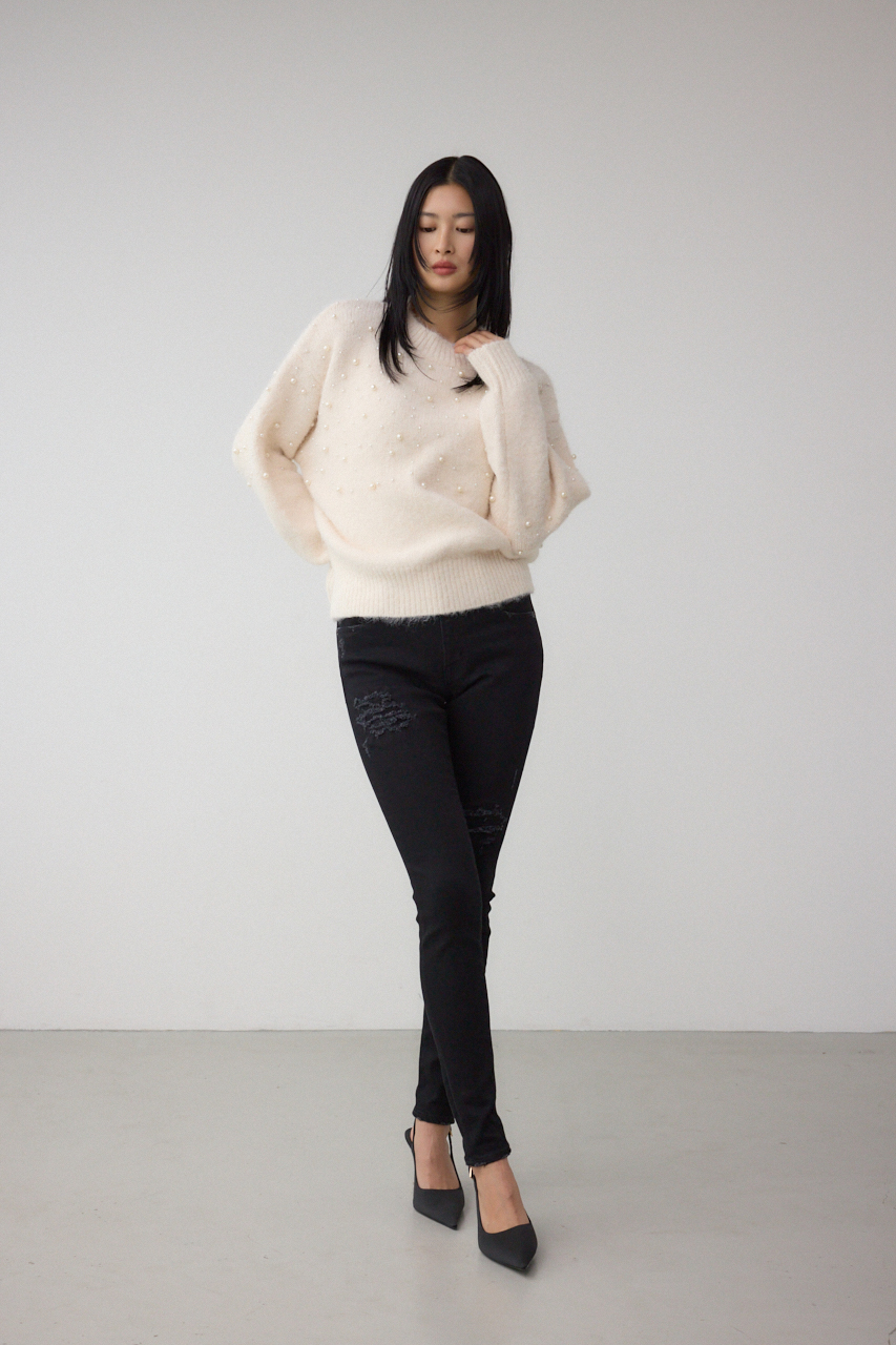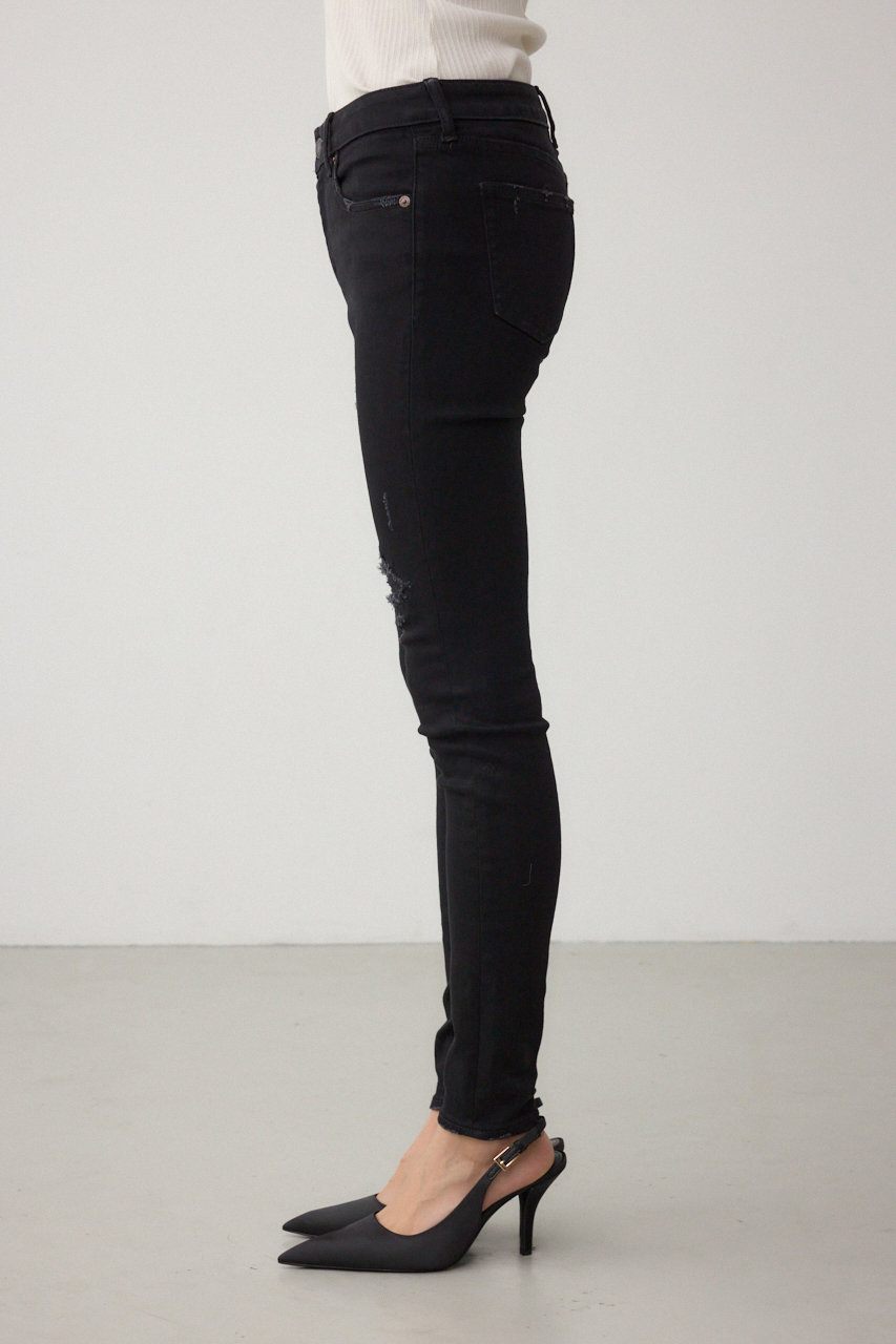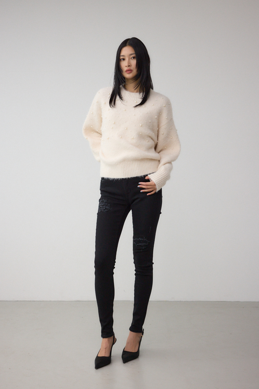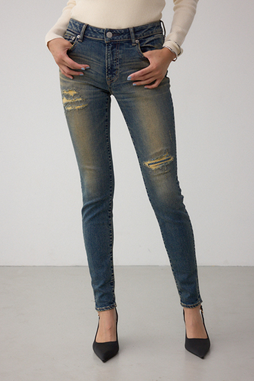 リアルなリペア加工と美しいシルエットが魅力の、大人カジュアルに映えるスキニーデニム。