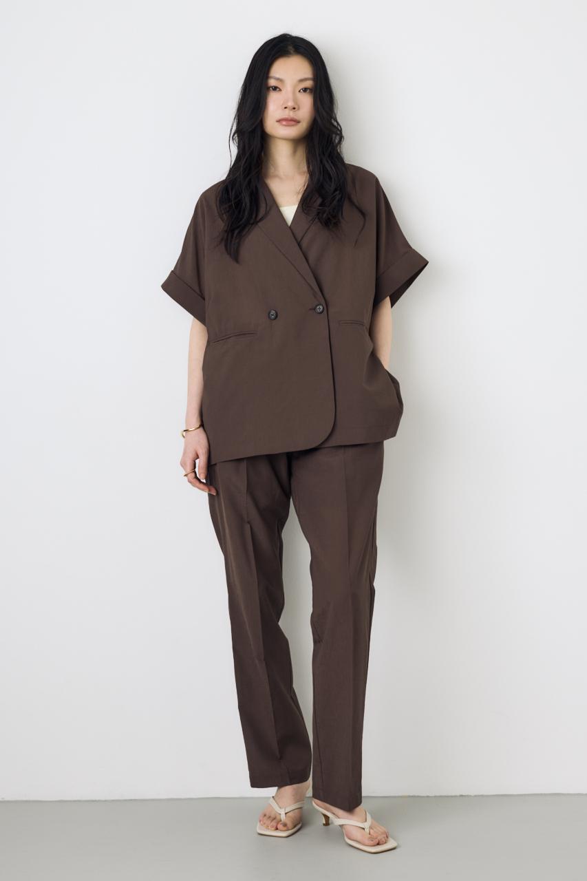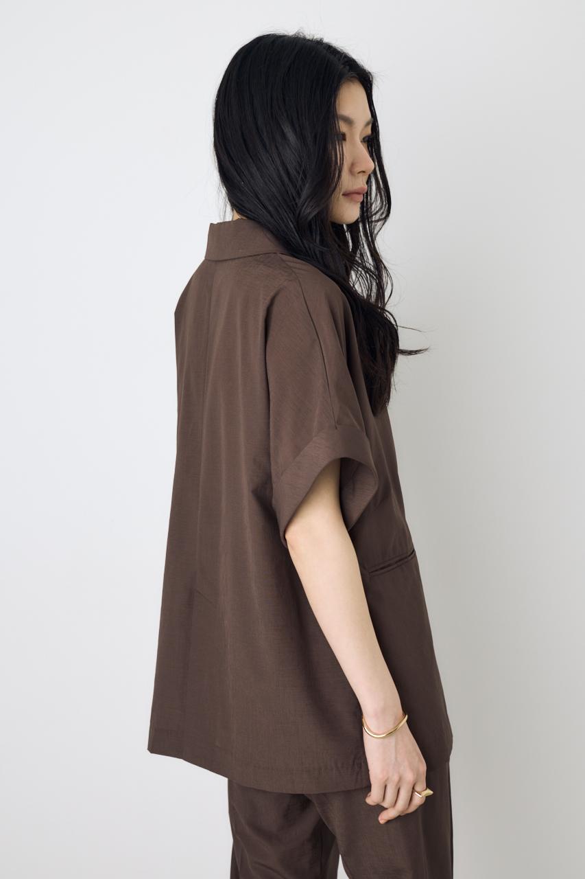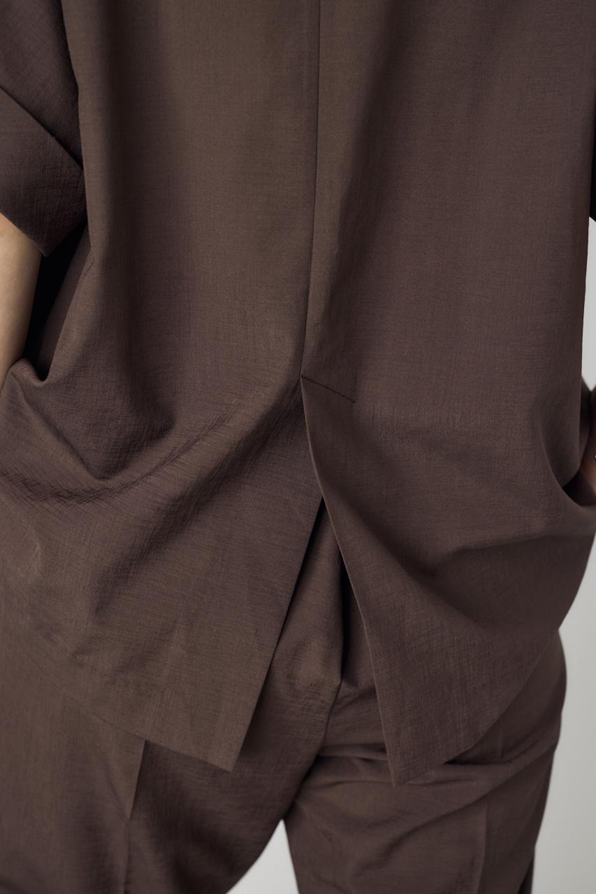 同素材のボトム(250JSH31-6821 COMFORA AIRピンタックテーパードパンツ)と合わせて、夏でも快適なセットアップスタイルに。