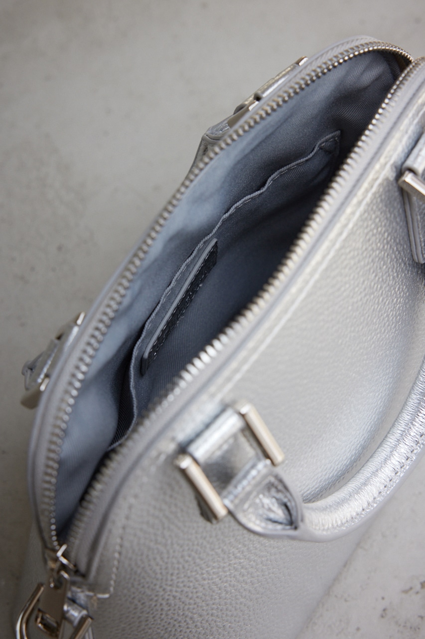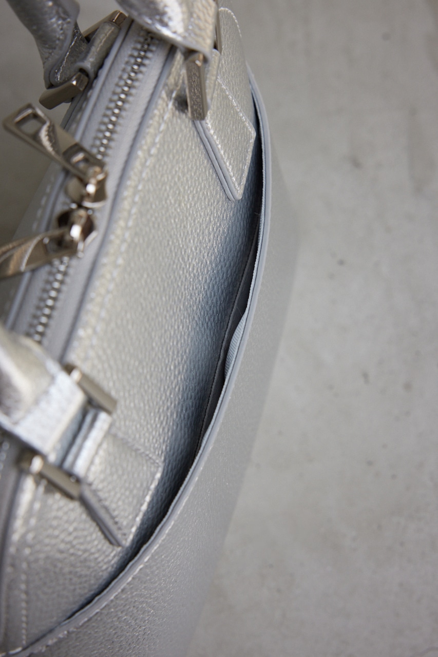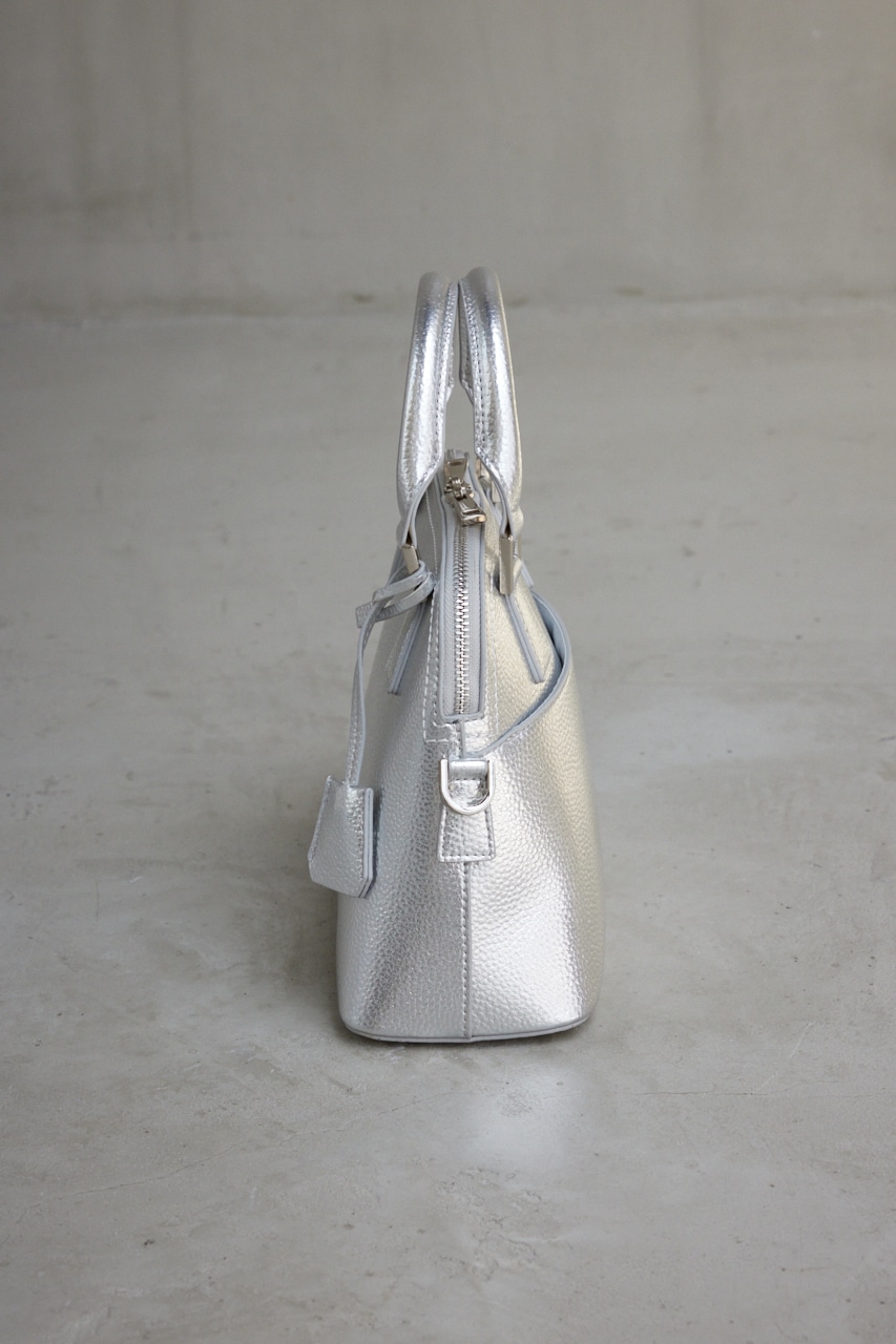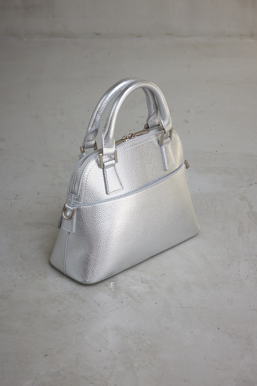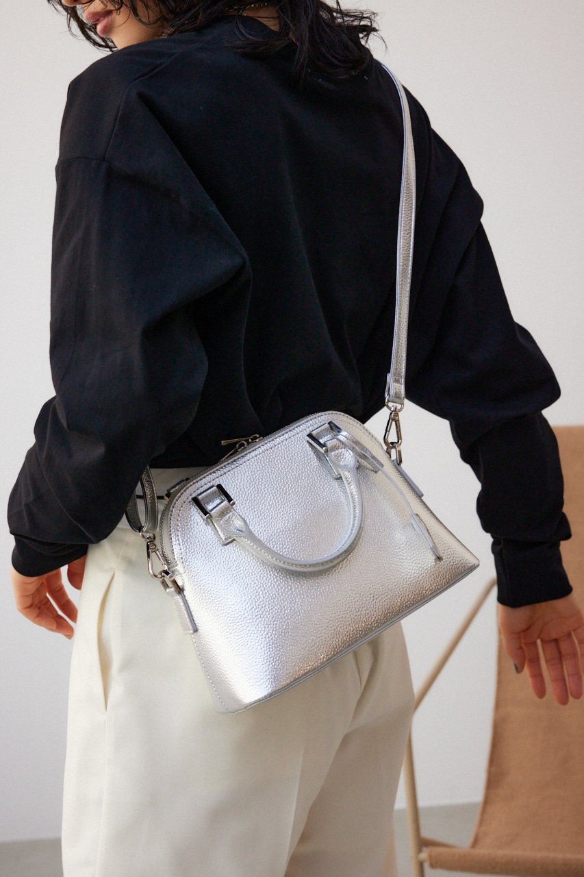 しぼ感のあるレザー調素材で高見えするハンドバッグ。