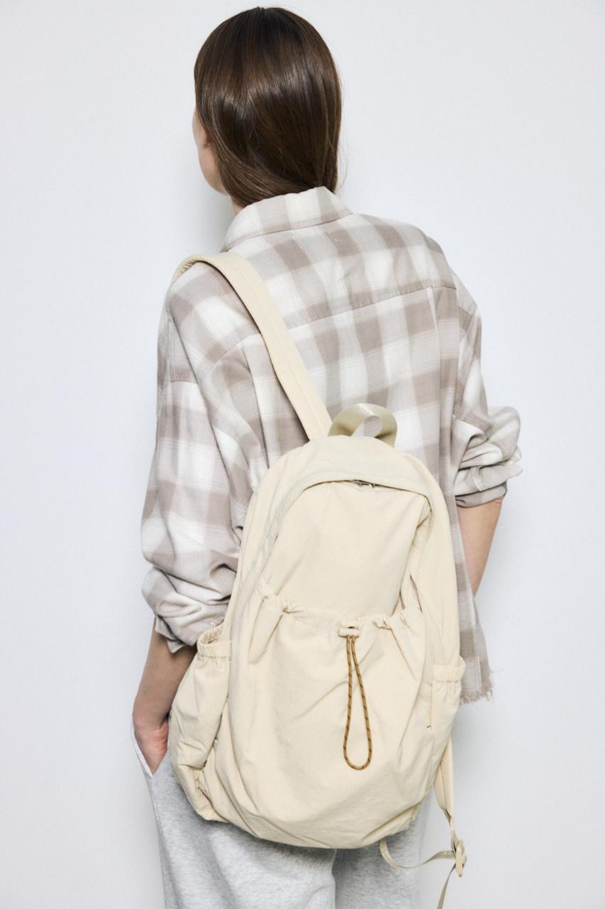 ギャザーデザインがアクセントになった、軽やかでこなれ感のあるデイリーバックパック。