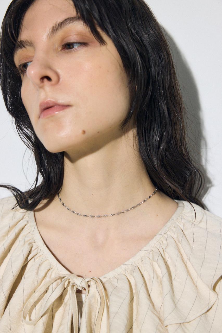 繊細なツイストチェーンを使用し、動くたびにさりげなくきらめくデザイン。