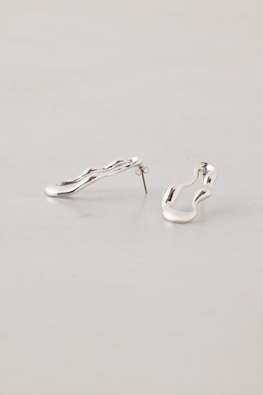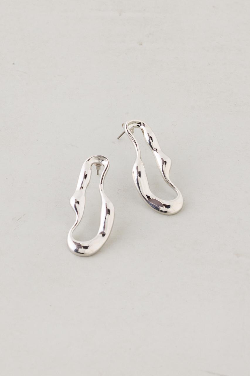 波打つようなウェイビーフォルムが印象的な、ニュアンス感のあるサークルピアス。