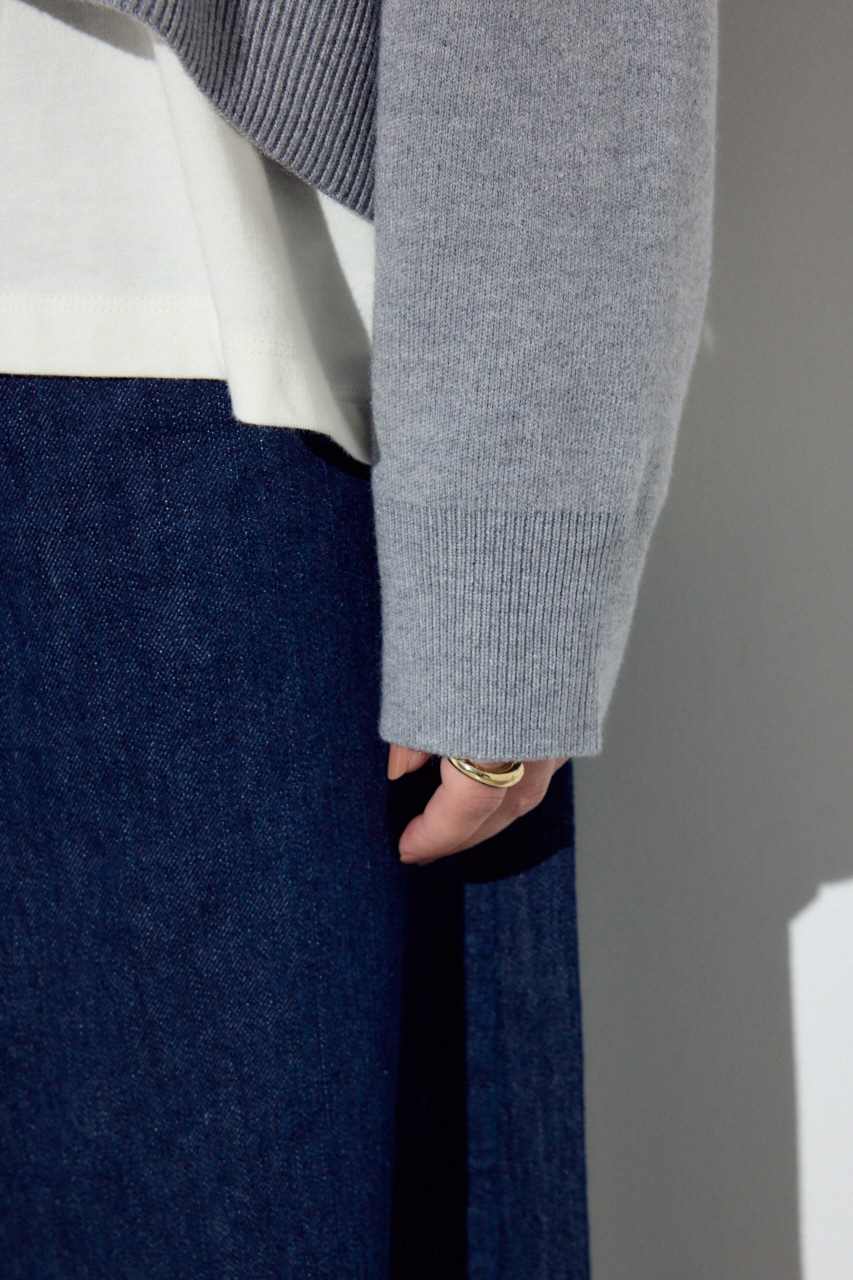 よく見ると、裾は前上がり後ろ下がりになるように編んでおり、ボトムとのバランスがとりやすいシルエットになっています。