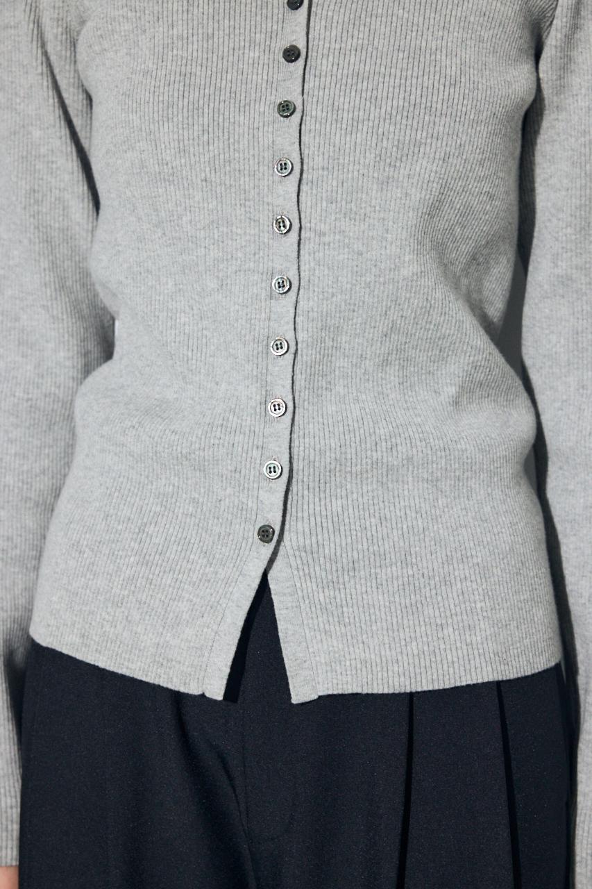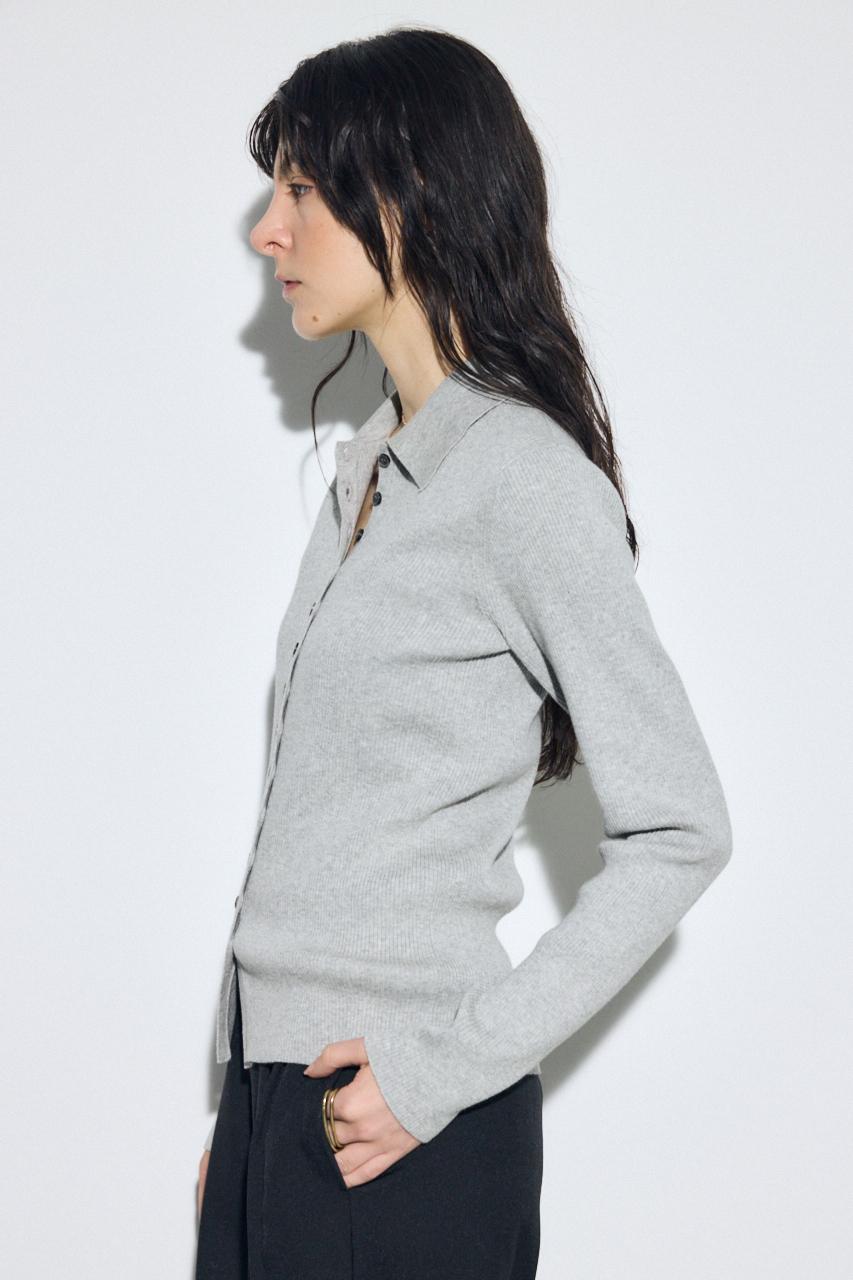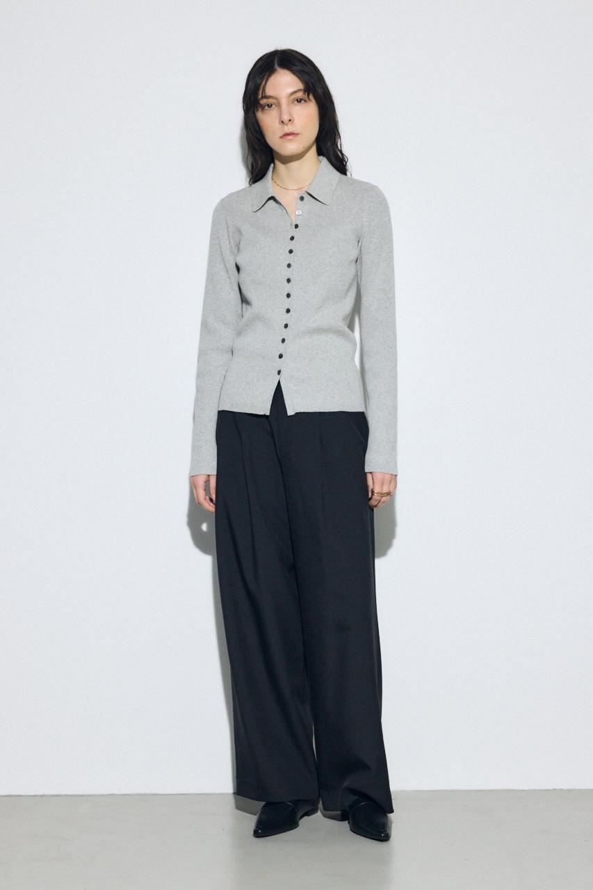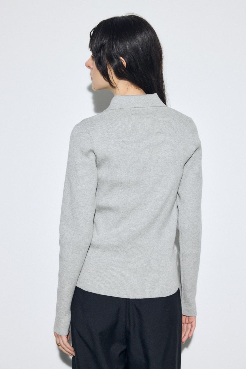 多ボタンが印象的な襟付きのリブニット。