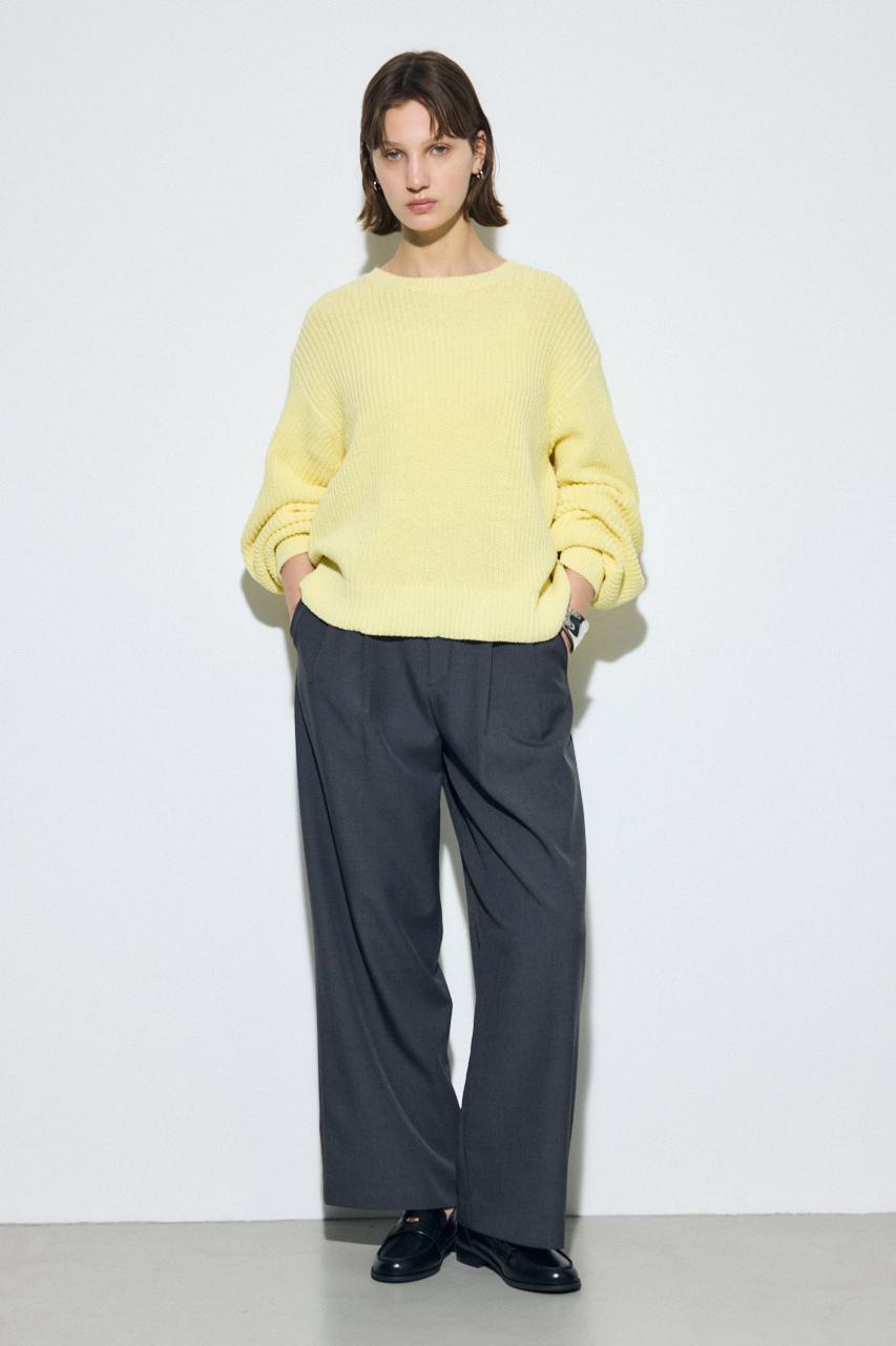 立体感のある畔編みが表情豊かな、春カラーが映えるニットトップス。