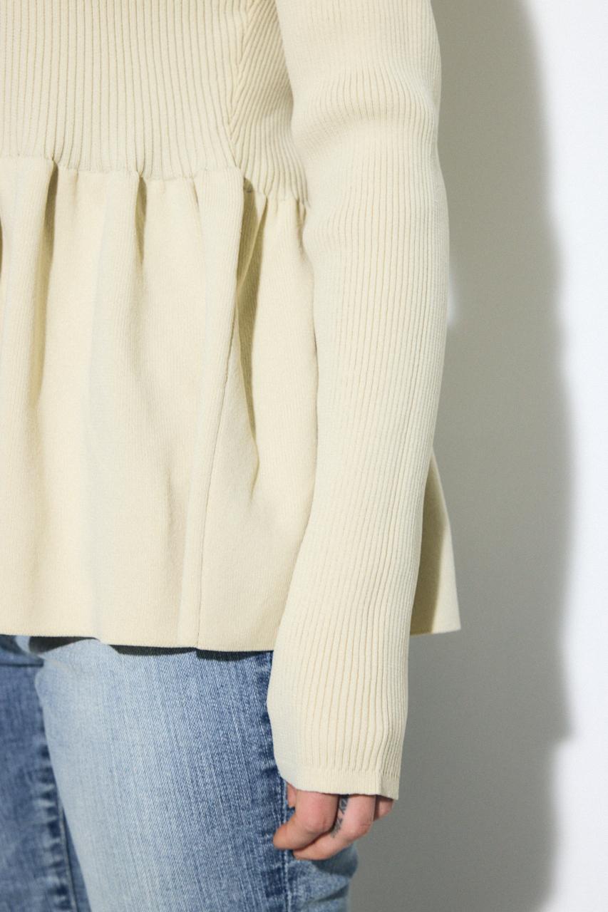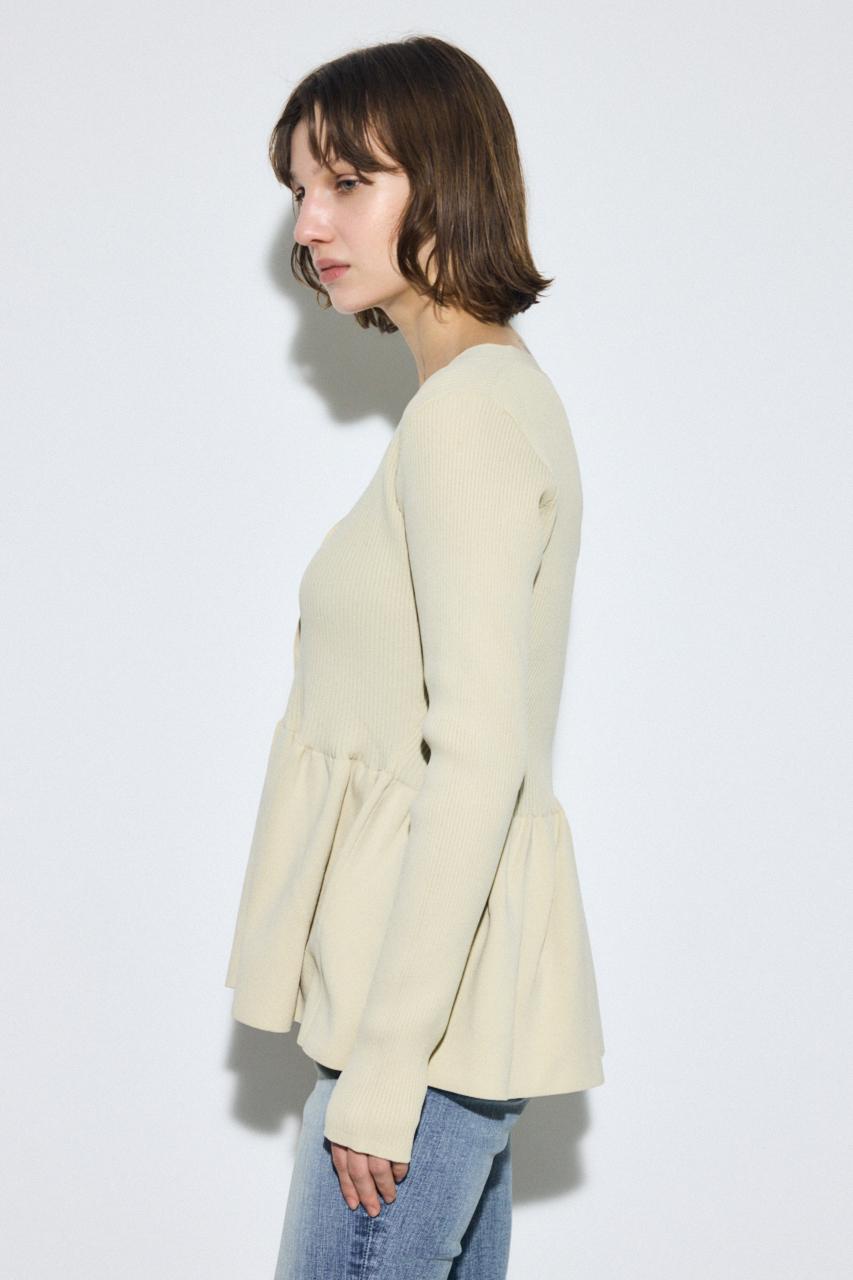程よく身体にフィットする上身頃と、ふんわりと広がるペプラム切り替えがメリハリのあるシルエットを演出。
