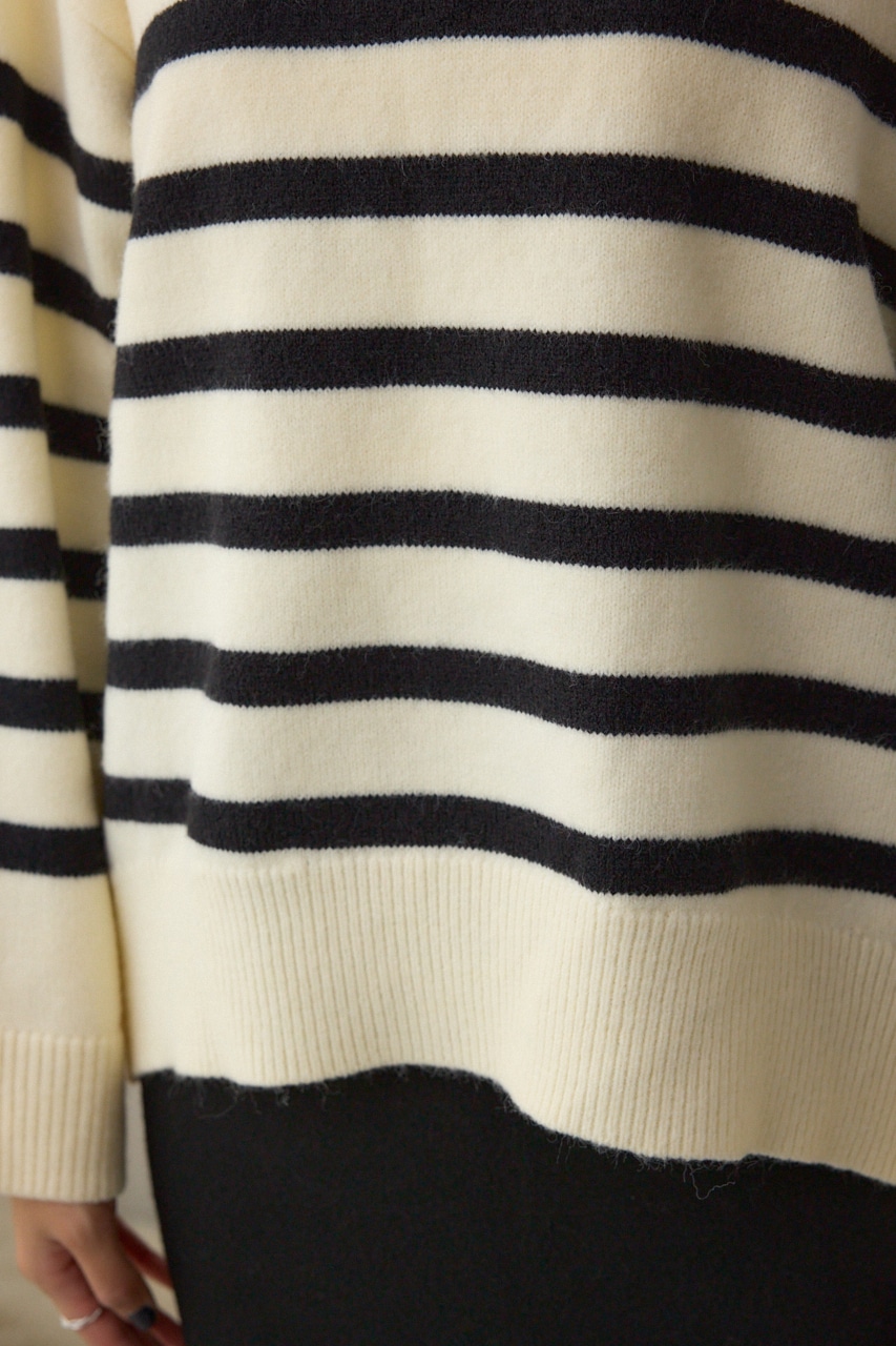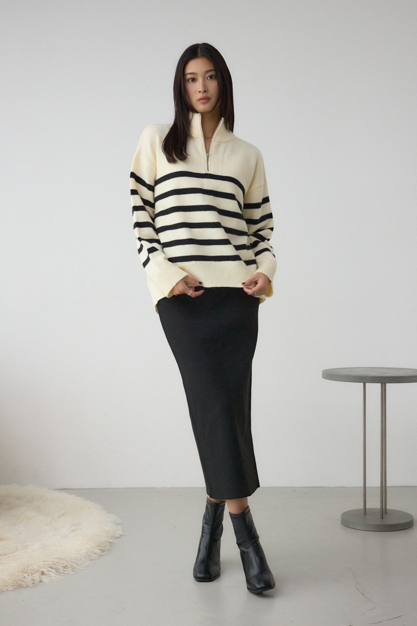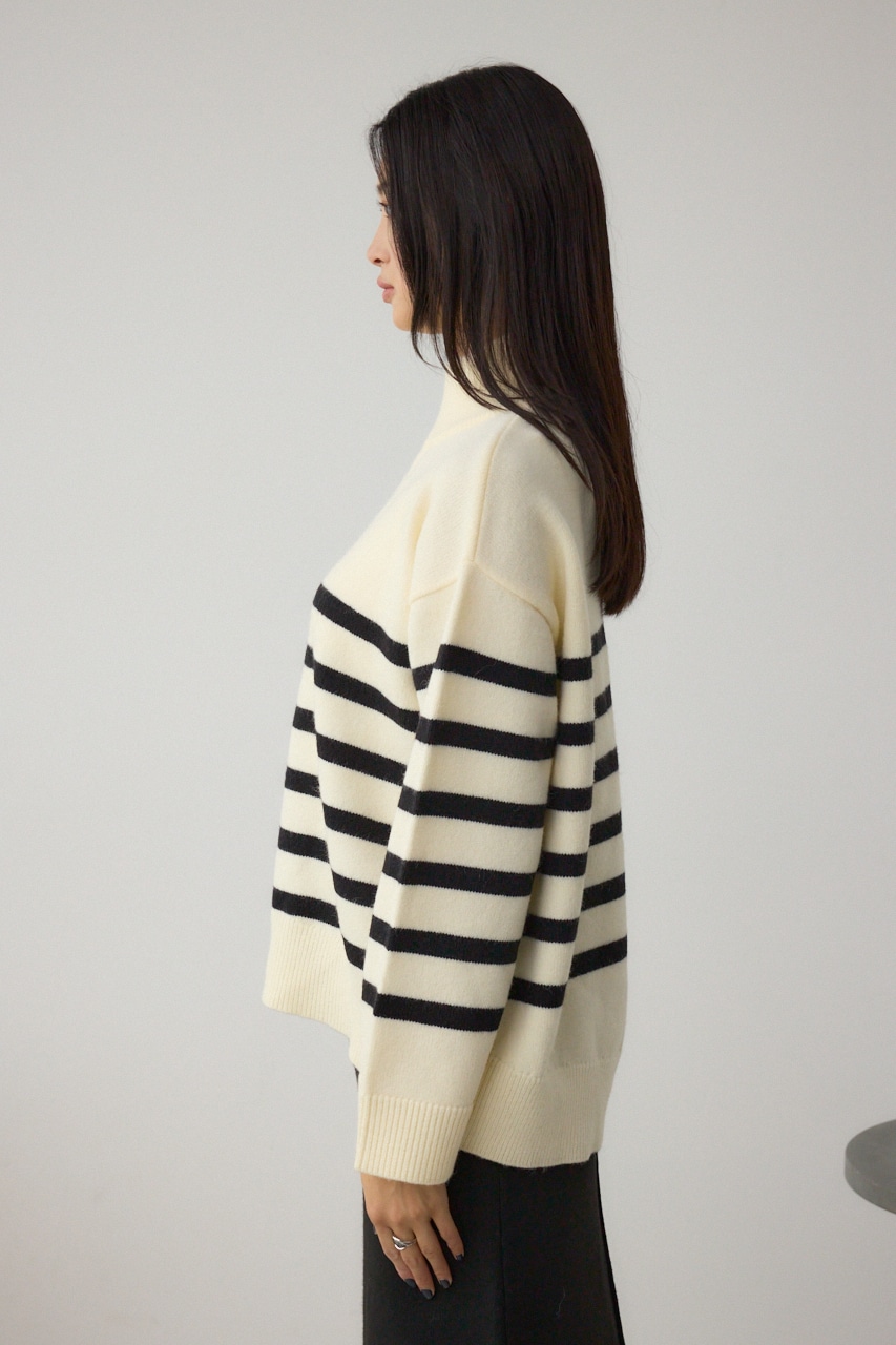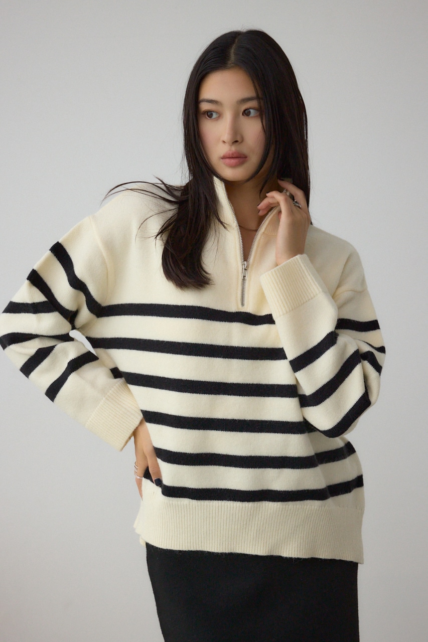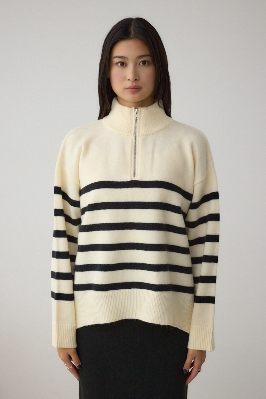 ハーフジップデザインが目をひく、抜け感のあるニットプルオーバー。