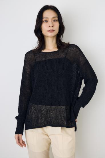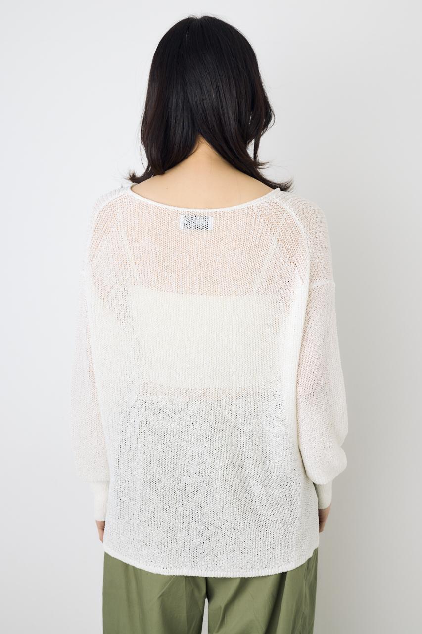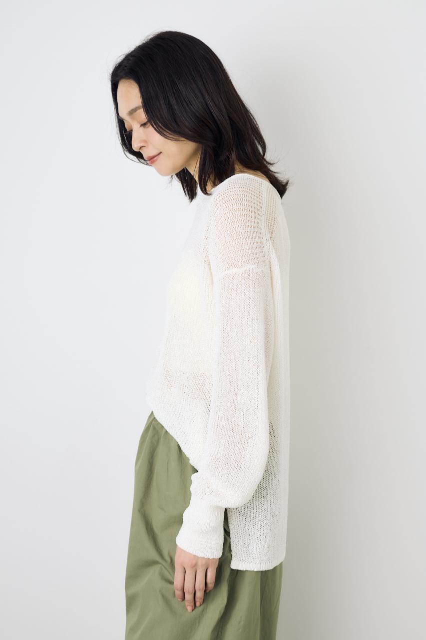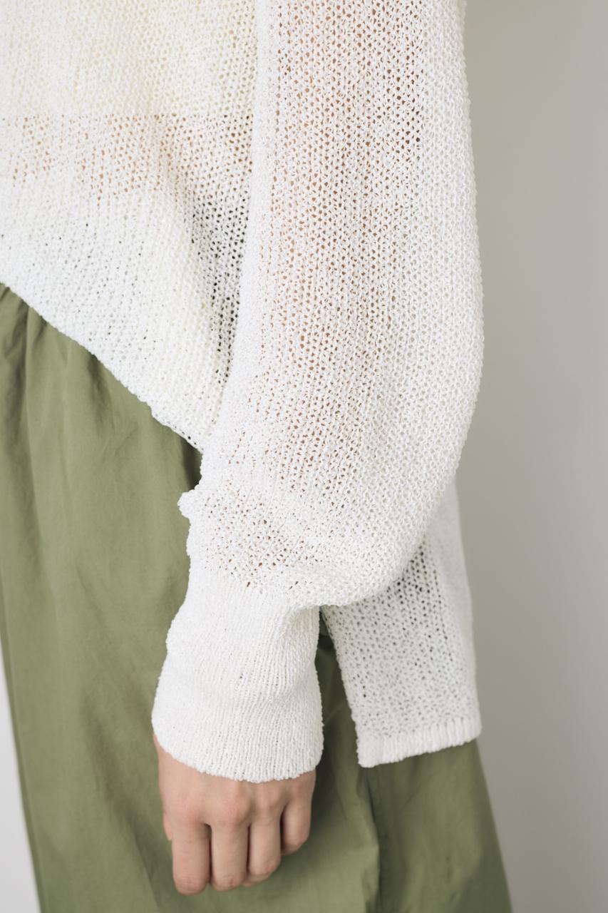 身体のラインを拾いすぎない立体的なフォルムは、この素材と編み地の組み合わせならではのシルエットです。