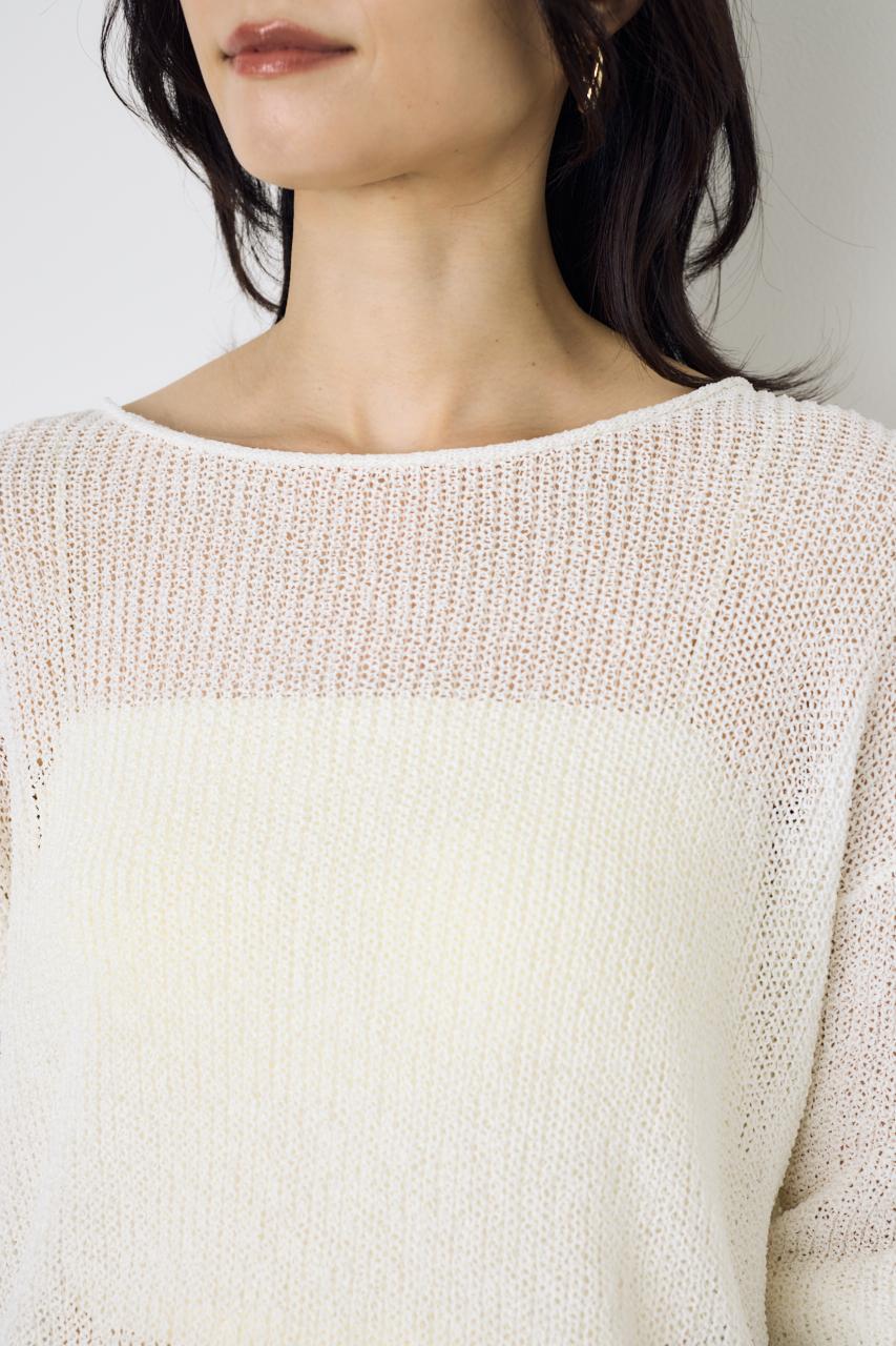 立体的な畔編みが目をひく、存在感のあるニットトップス。