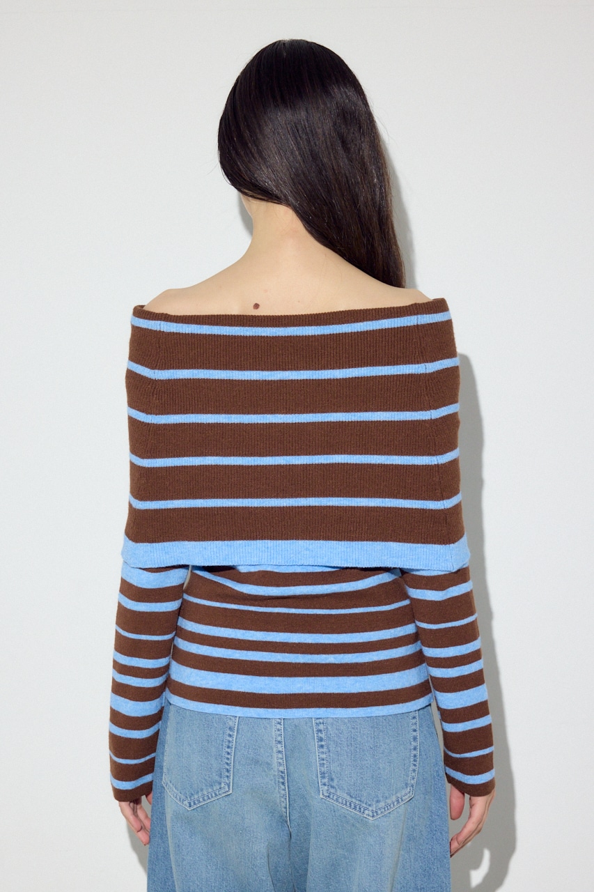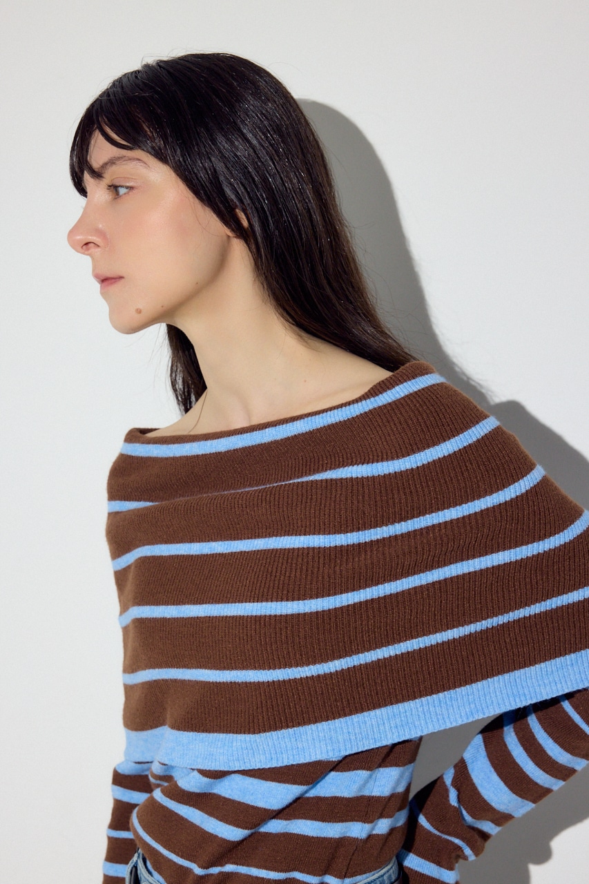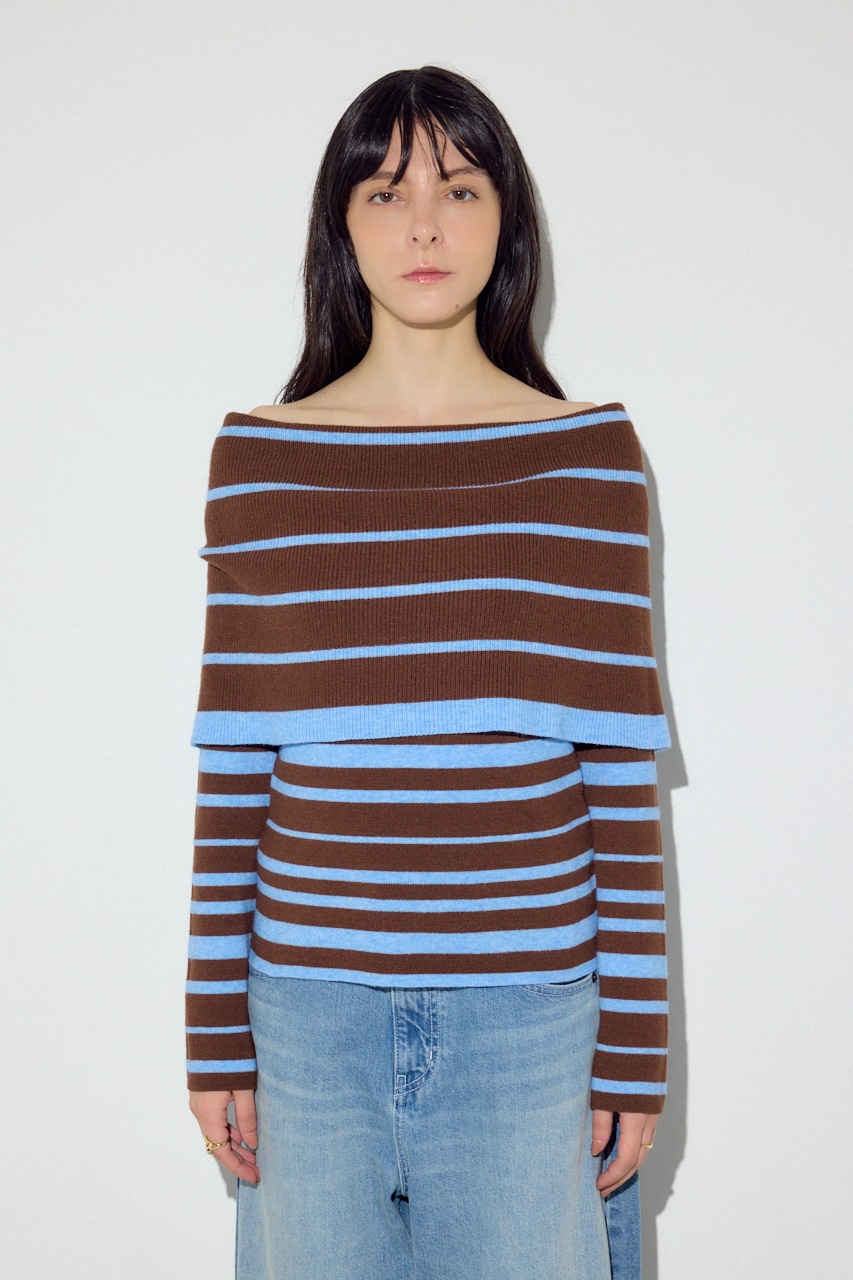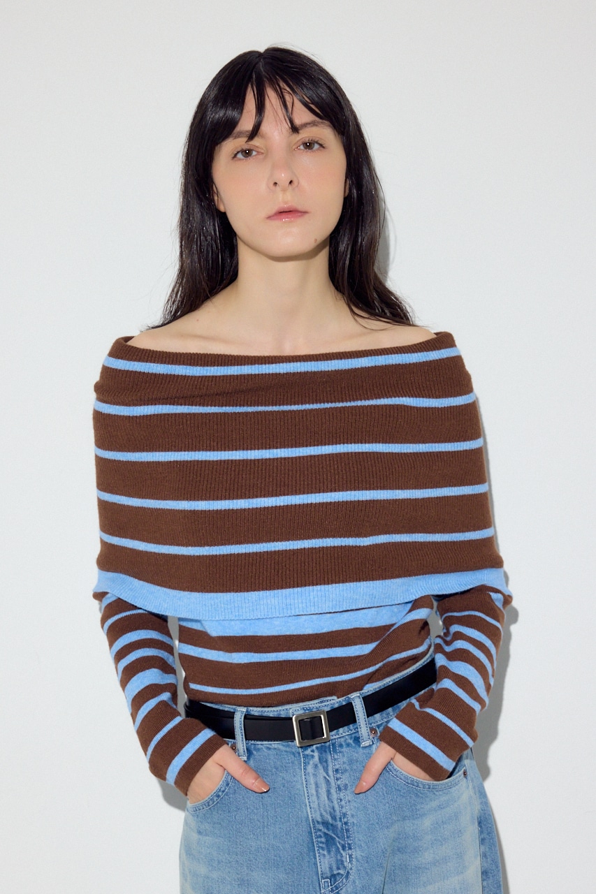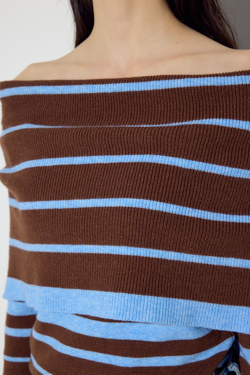 デコルテラインを美しく魅せるオフショルダーデザイン。