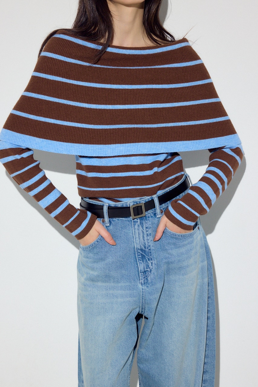 折り返し部分はボリューミーに、身頃はすっきりとさせ、メリハリのある女性らしいシルエットを演出します。