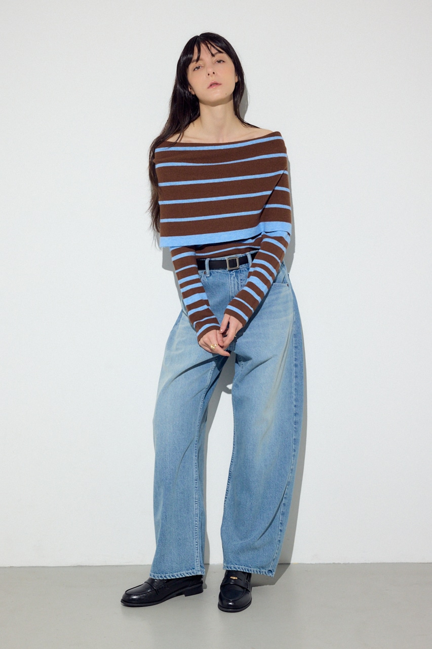 ハイウエストのワイドパンツやフレアスカートにインすれば、トレンド感のあるスタイルに。