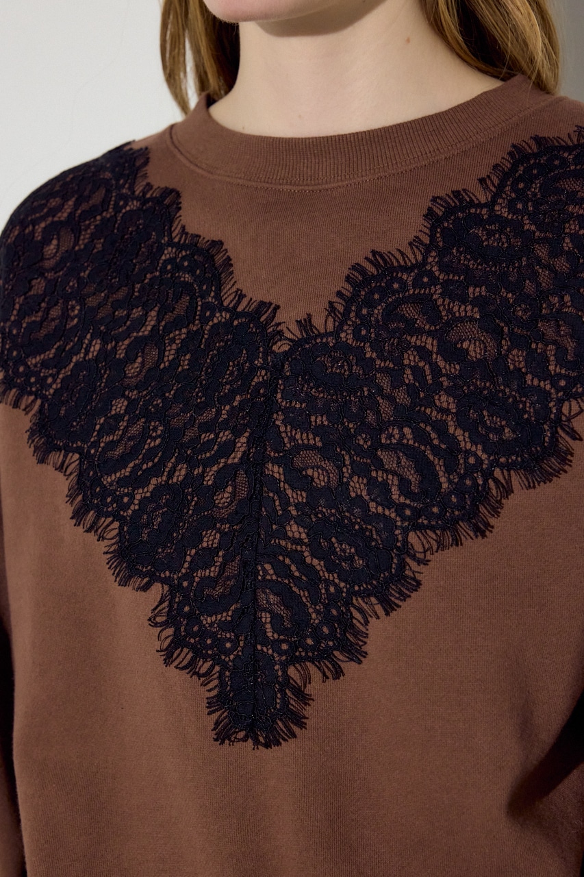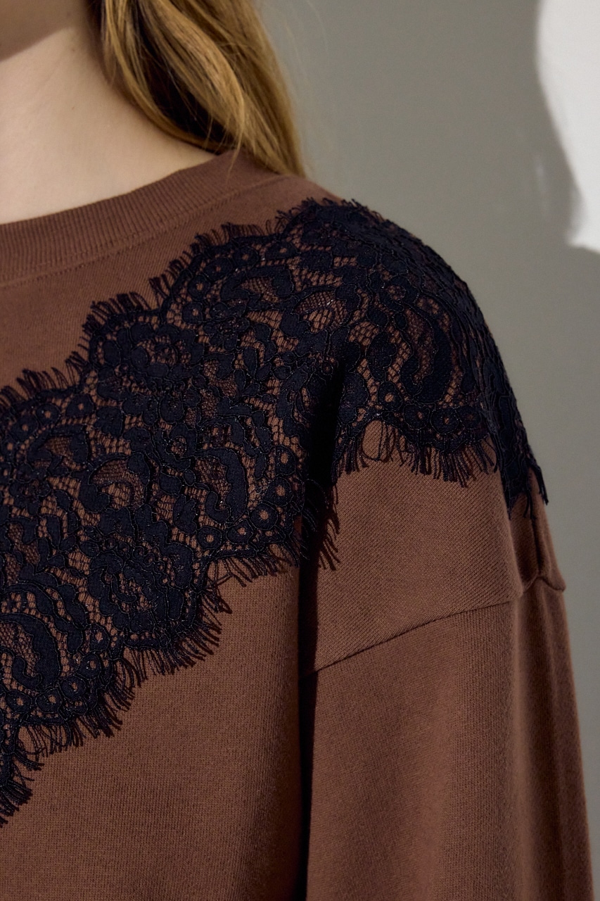 レースの透け感が繊細で、柄の凹凸がコントラストとして映えるデザインです。