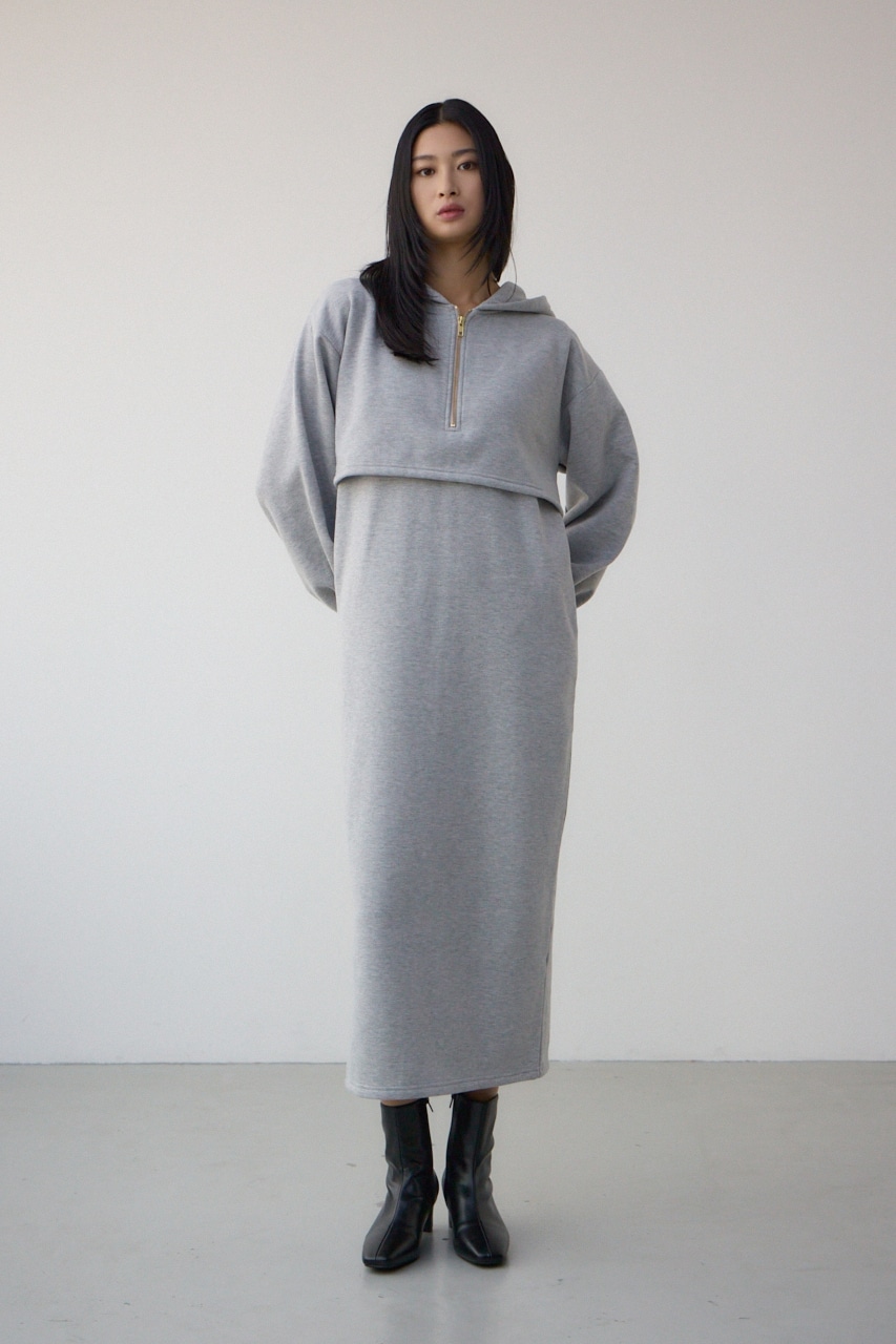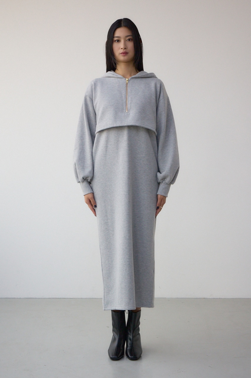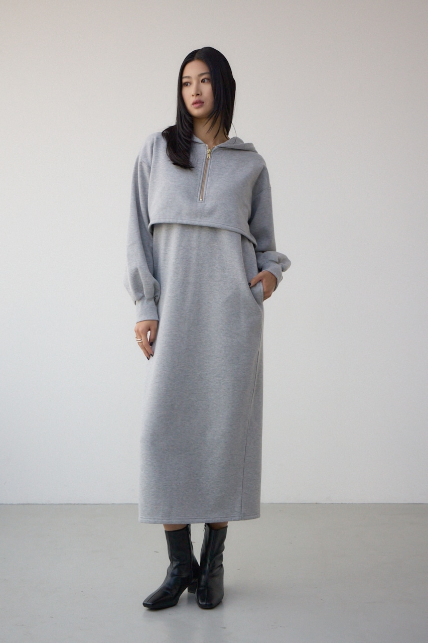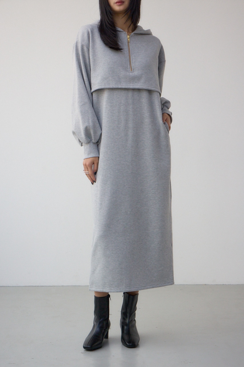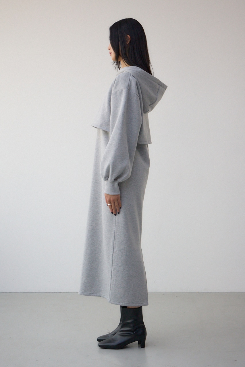 レイヤード風裏起毛フーディーワンピース