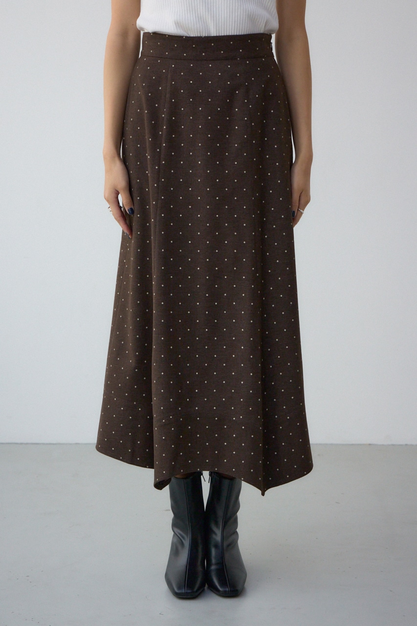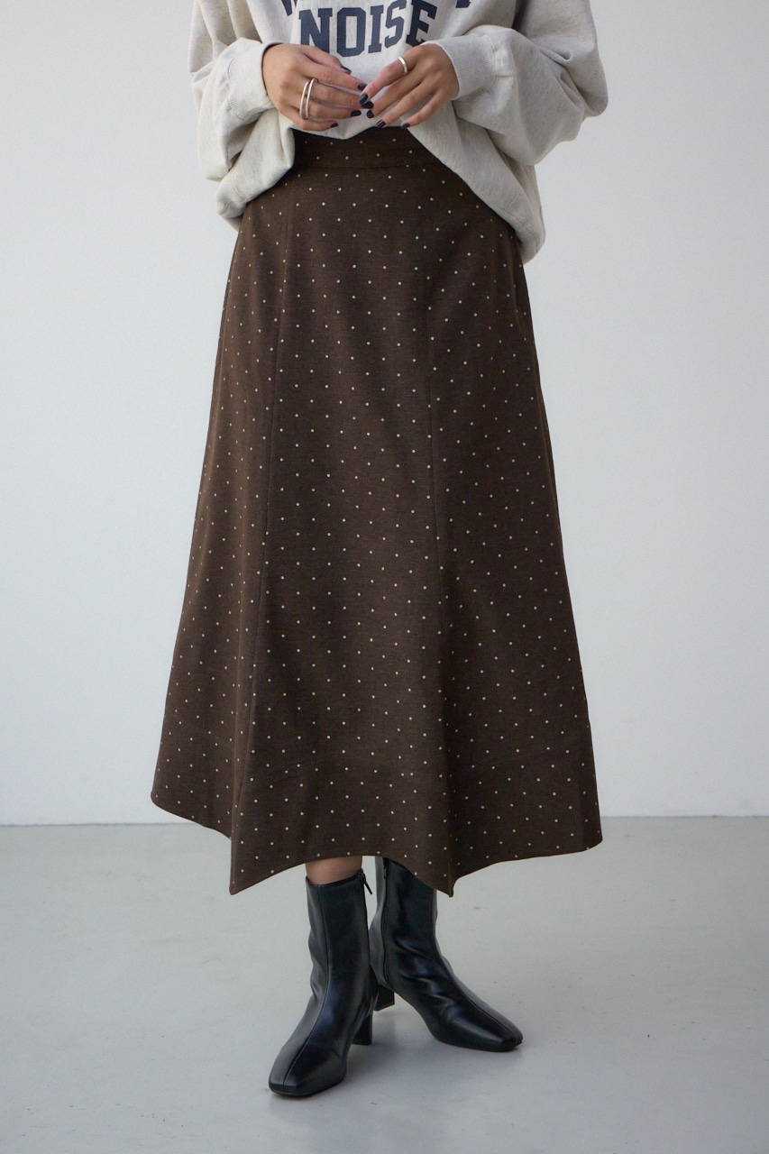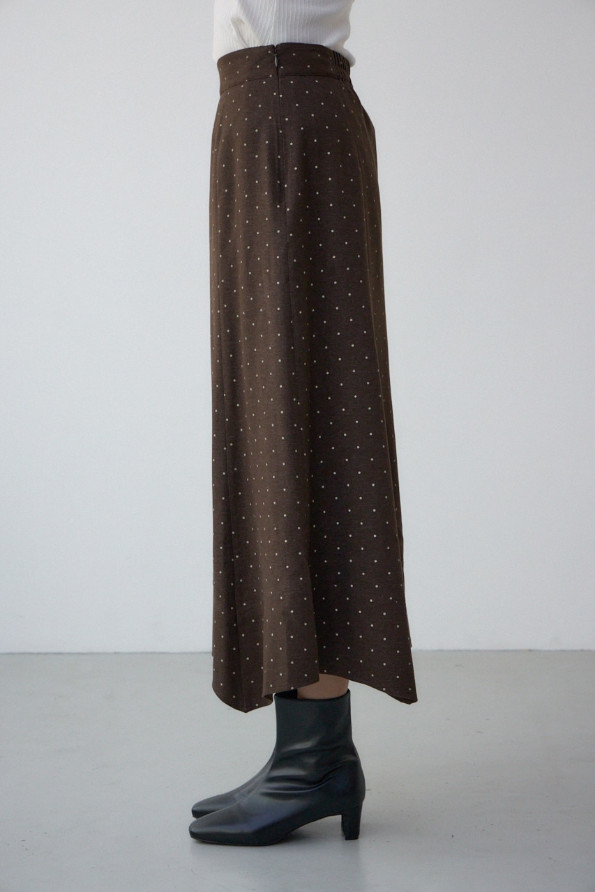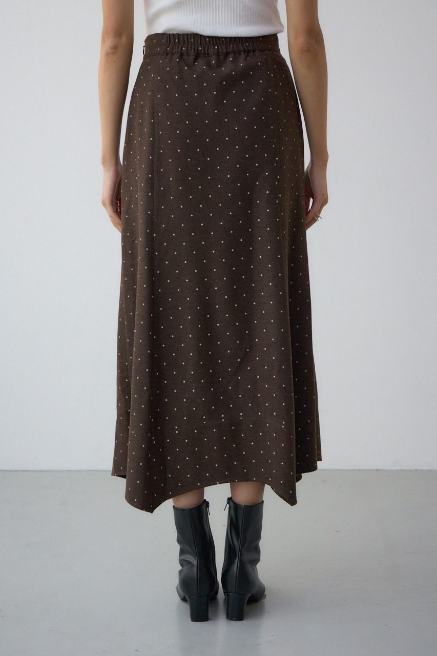 細かなドット×揺れるハンカチーフヘムで、歩くほどに表情が出る上品なスカート。