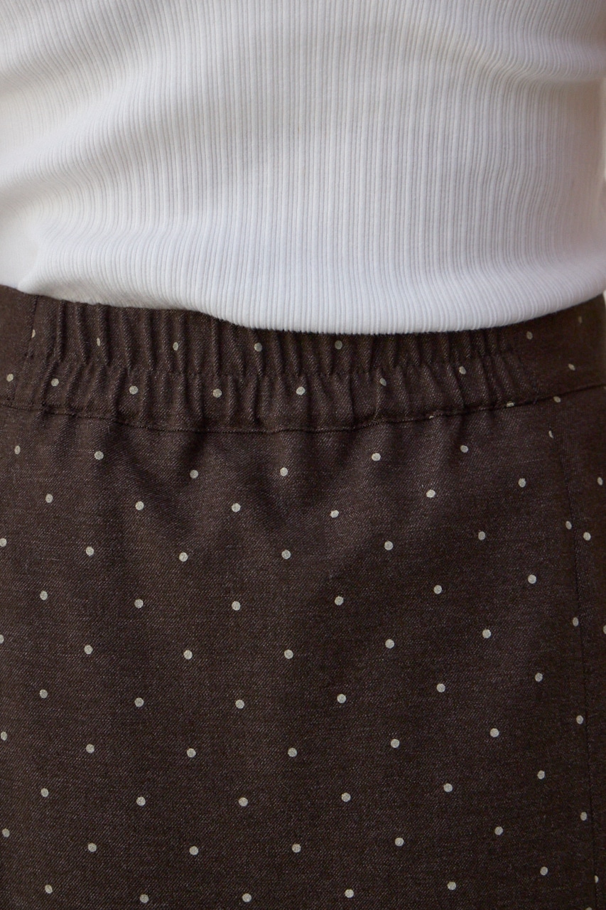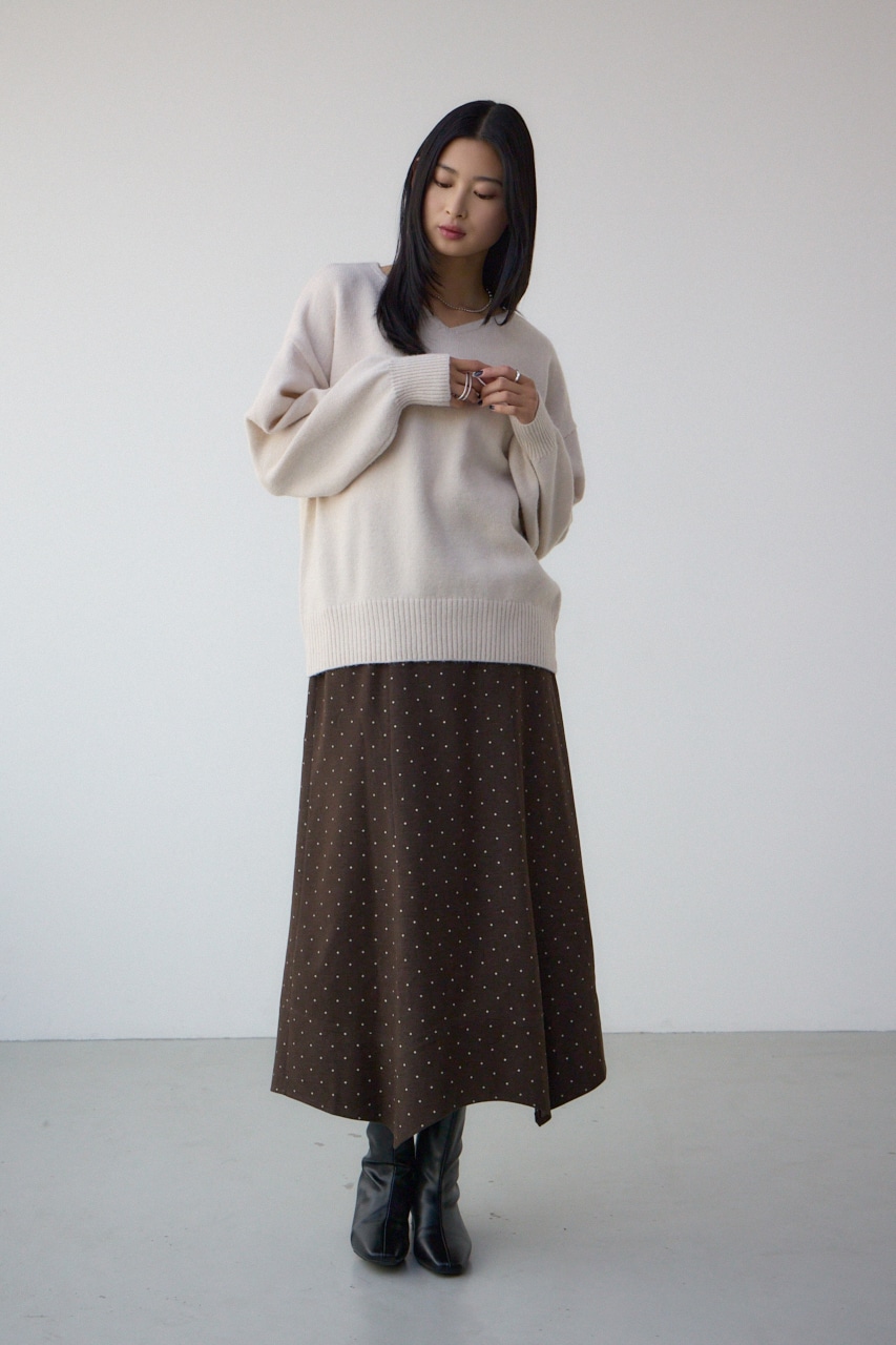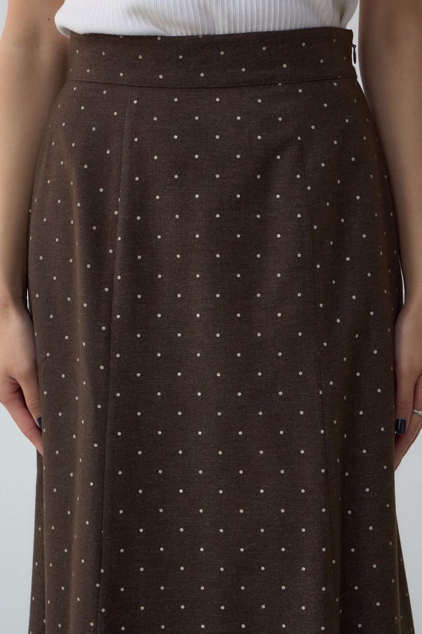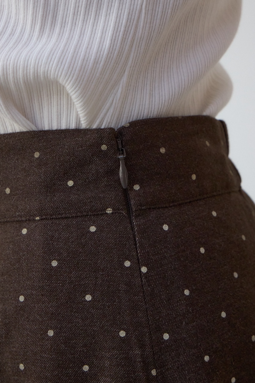 細かなドット×揺れるハンカチーフヘムで、歩くほどに表情が出る上品なスカート。