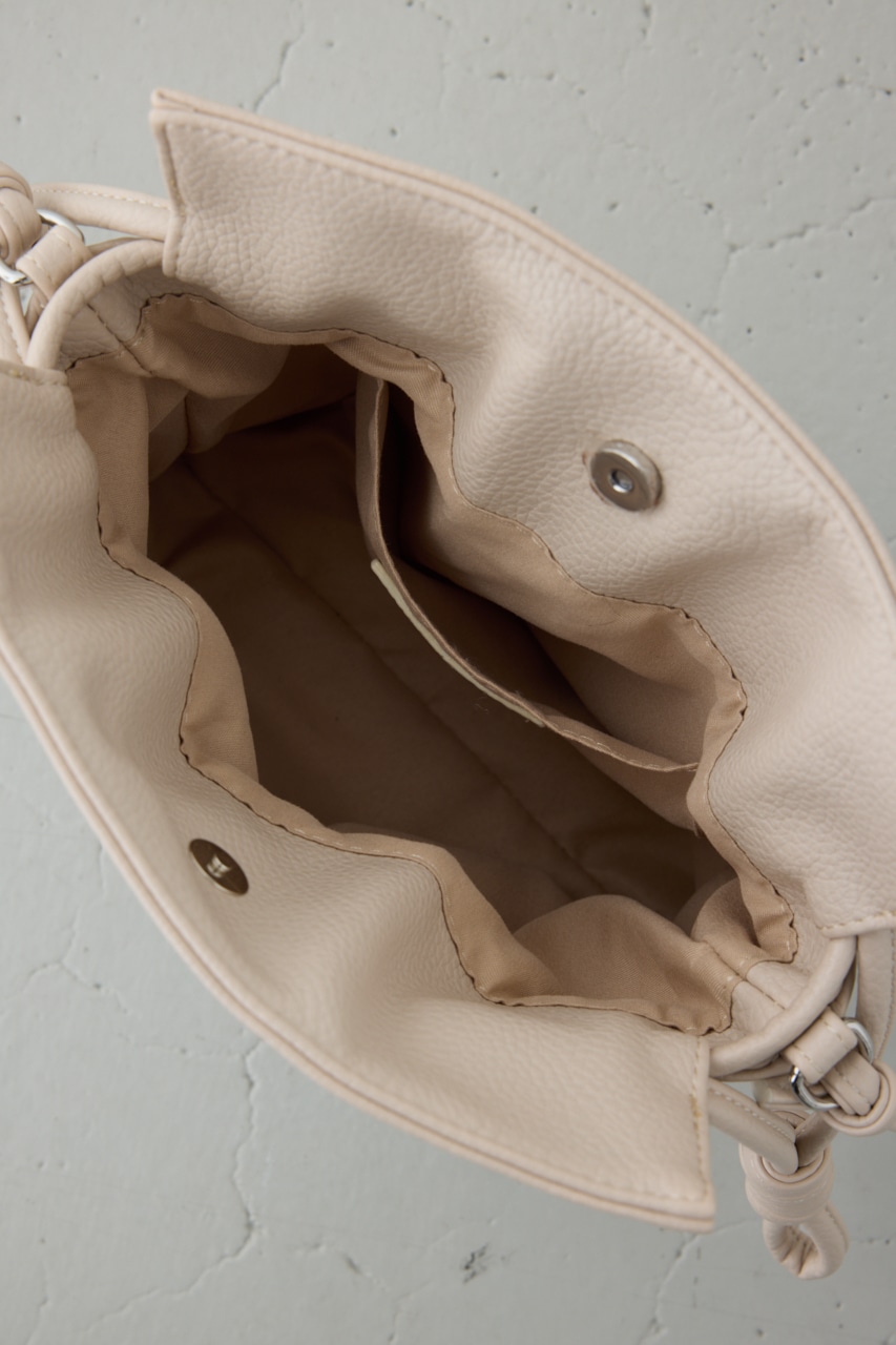 小ぶりながらもスタッズが光る、コーディネートのアクセントになる巾着ショルダーバッグ。
