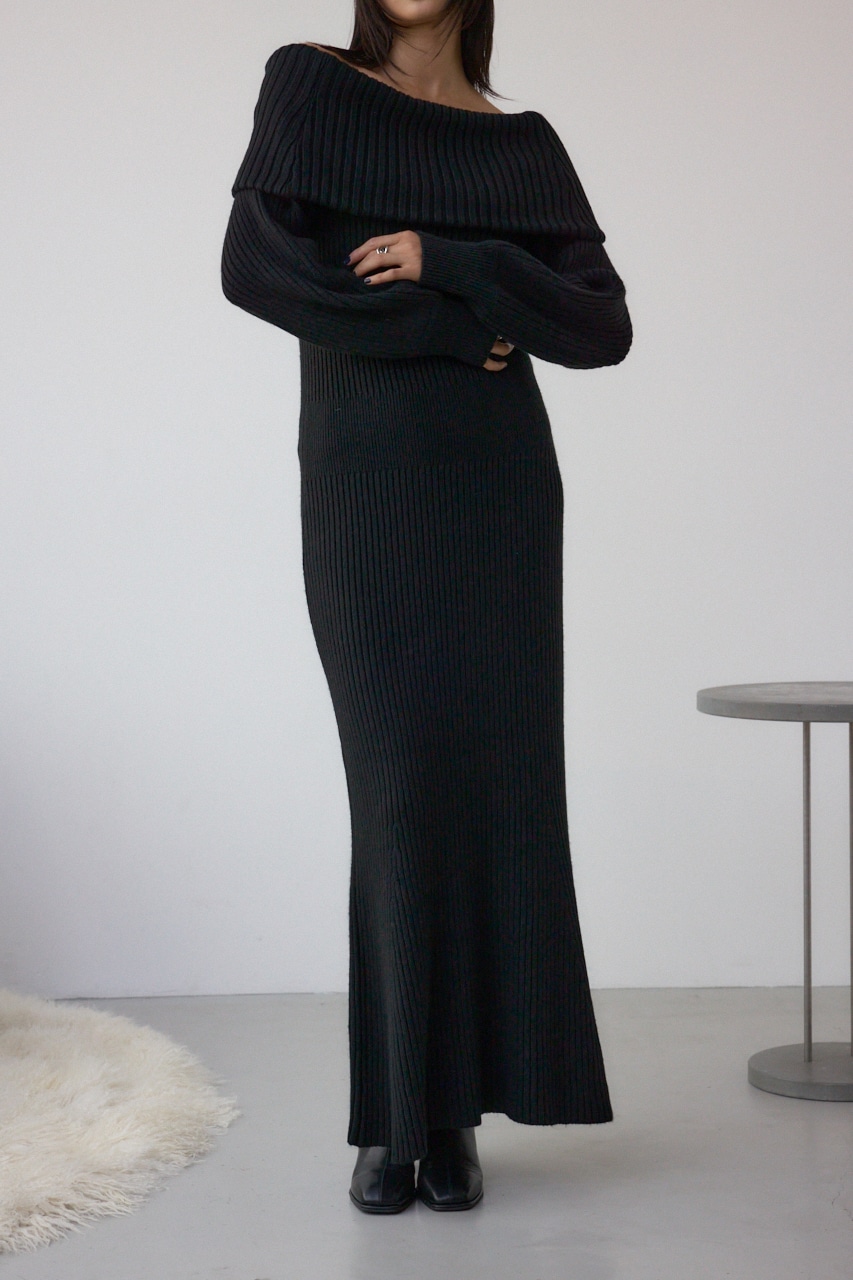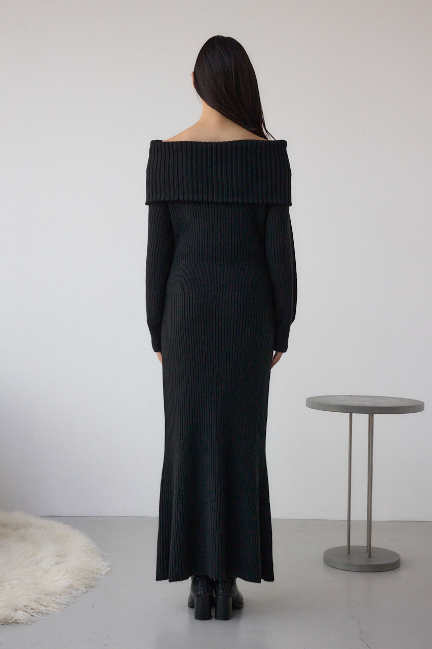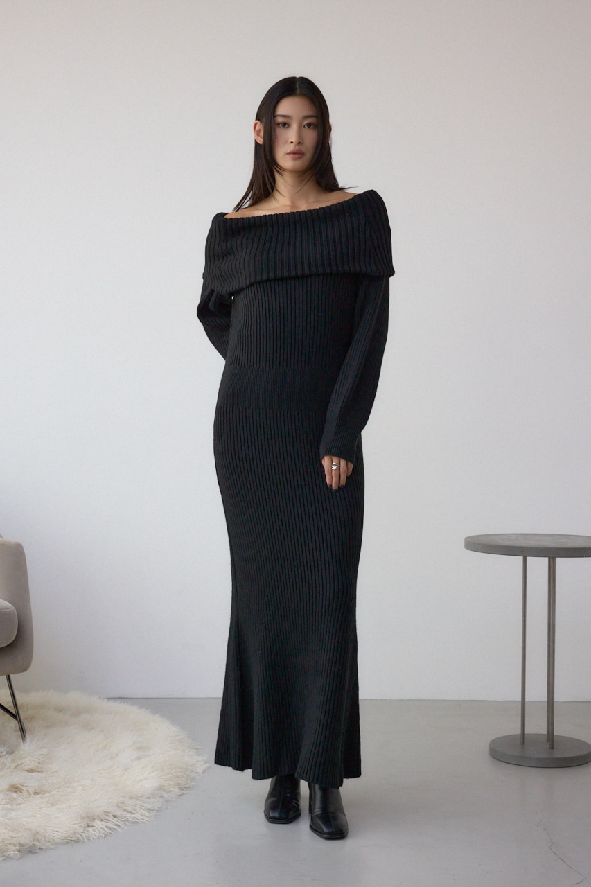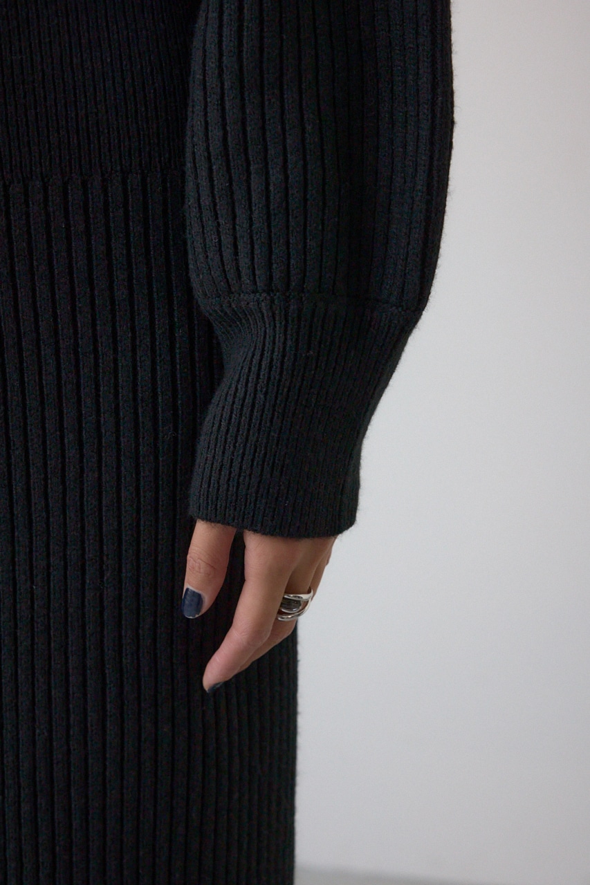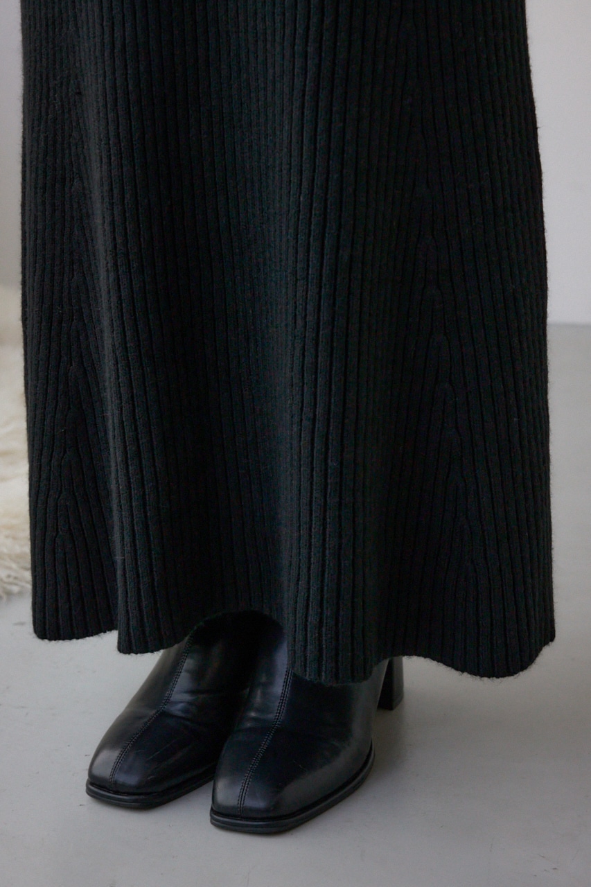 リブが縦ラインを強調し、身体のラインに沿いながらもエレガントな雰囲気を演出します。