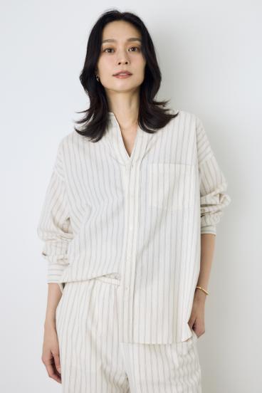 フレンチリネン混ならではのナチュラルな風合いに、細かなストライプ柄をプラスしました。